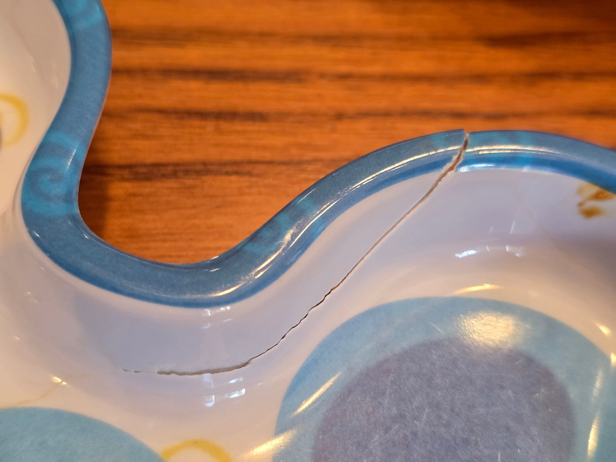 AS-IS. Blue's Clues plate has a crack as shown. Other pieces in good used condition. Normal wear throughout.