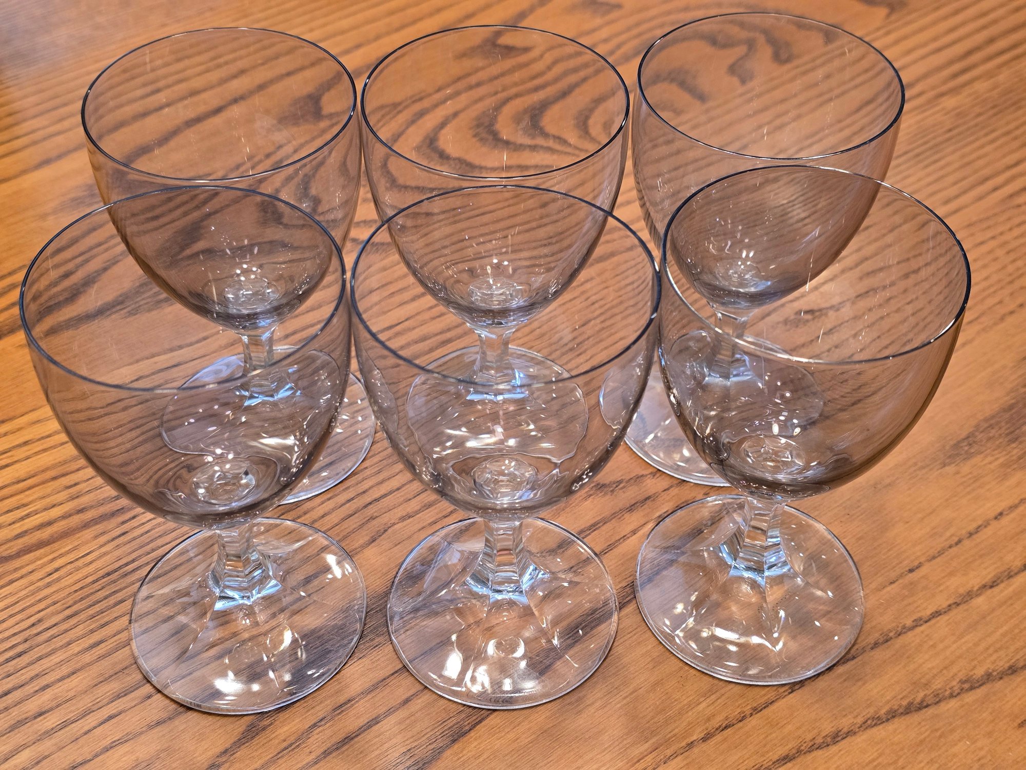 Notes: Set of 8 classic light smoky grey cordial glasses. No brand markings visible.