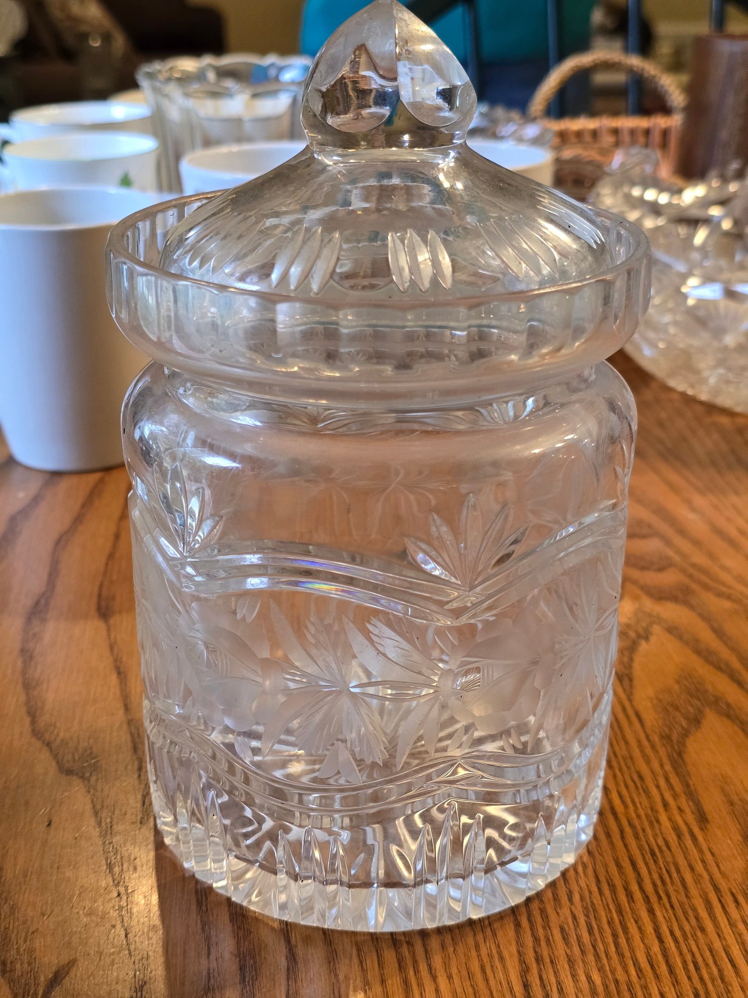 Vintage Etched Cut Glass Apothecary Jar