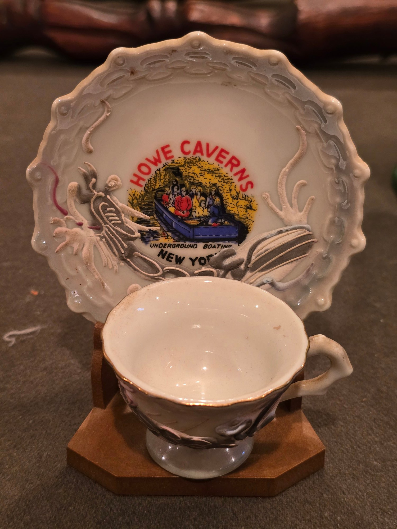 Vintage Howe Caverns New York Souvenir Miniature Cup And Saucer