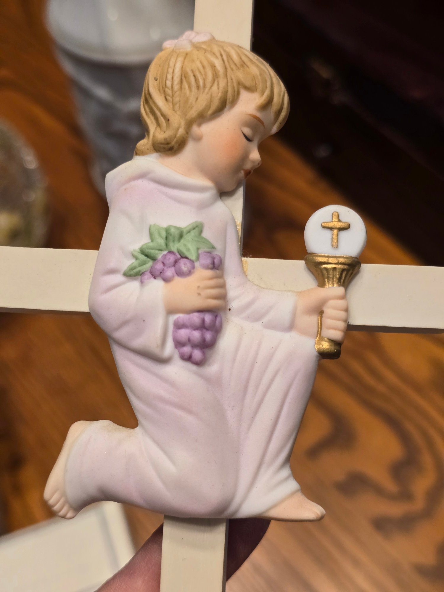 Vintage Roman Inc Taiwan First Communion Wall Cross Boy With Chalice Grapes