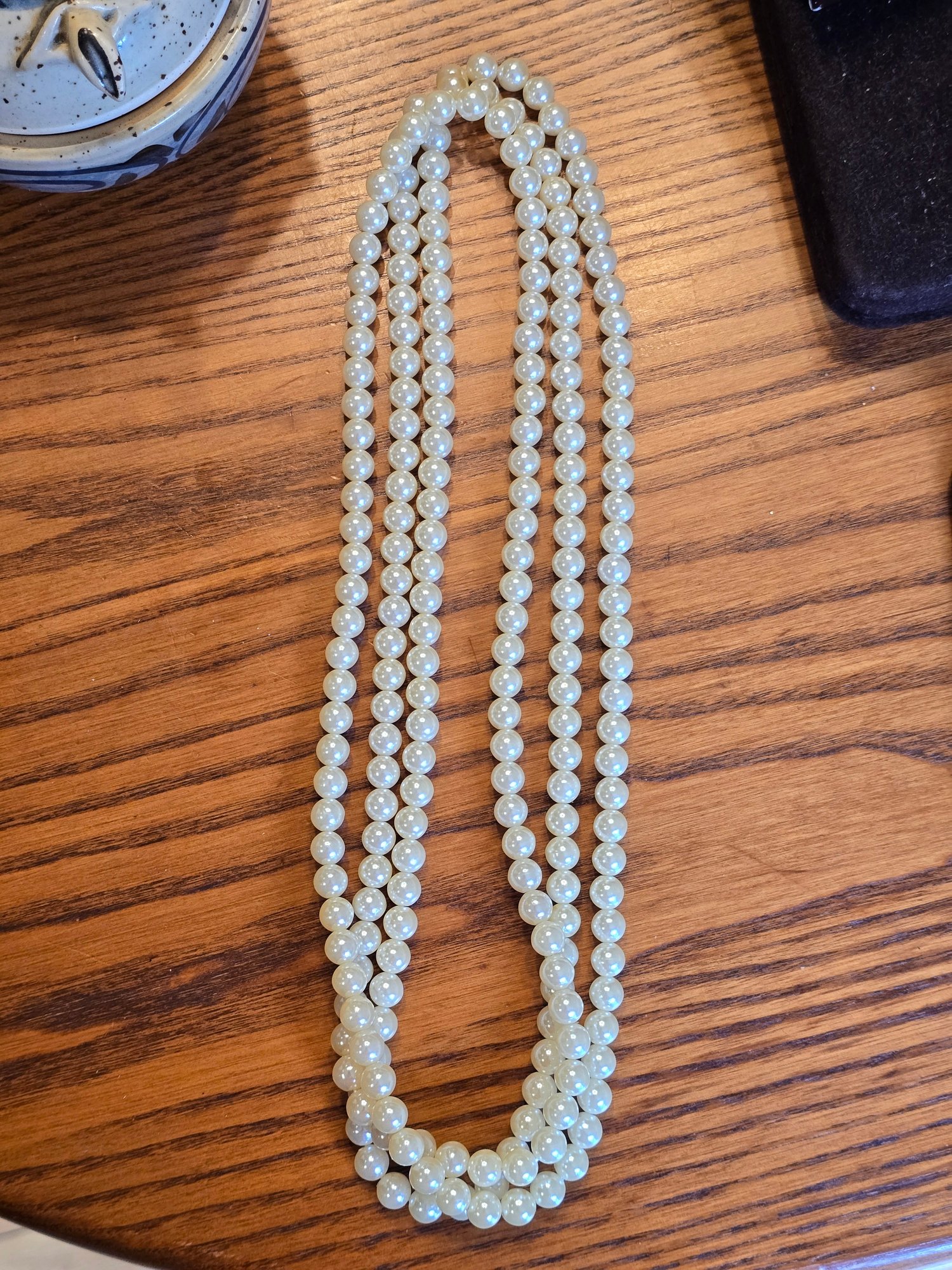 Long continuous strand simulated pearls, no clasp — wear doubled or as single long strand. Cream/white, approx. 34". Versatile styling.