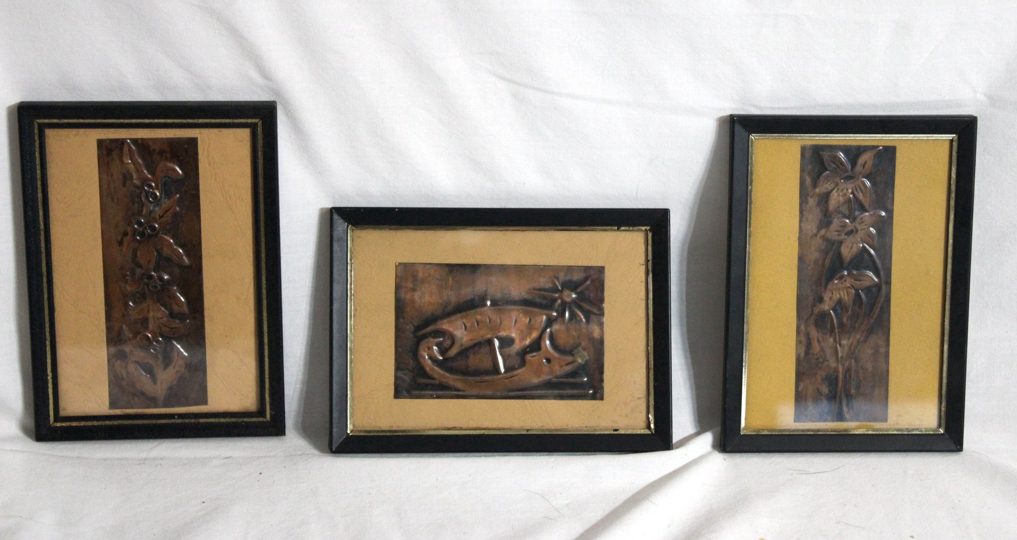3 Copper Relief Wall Art Plaques. (N-6)
