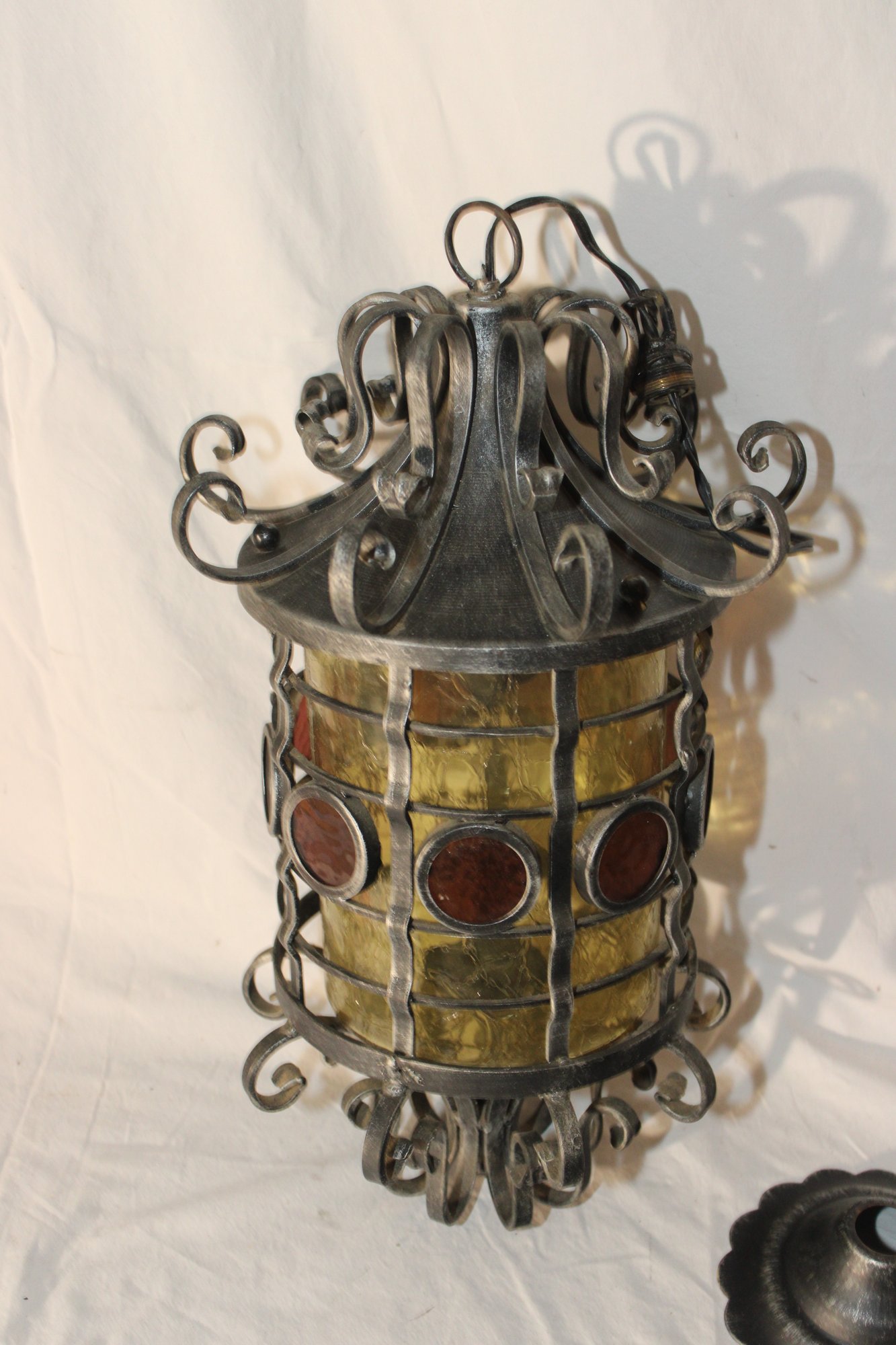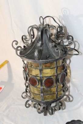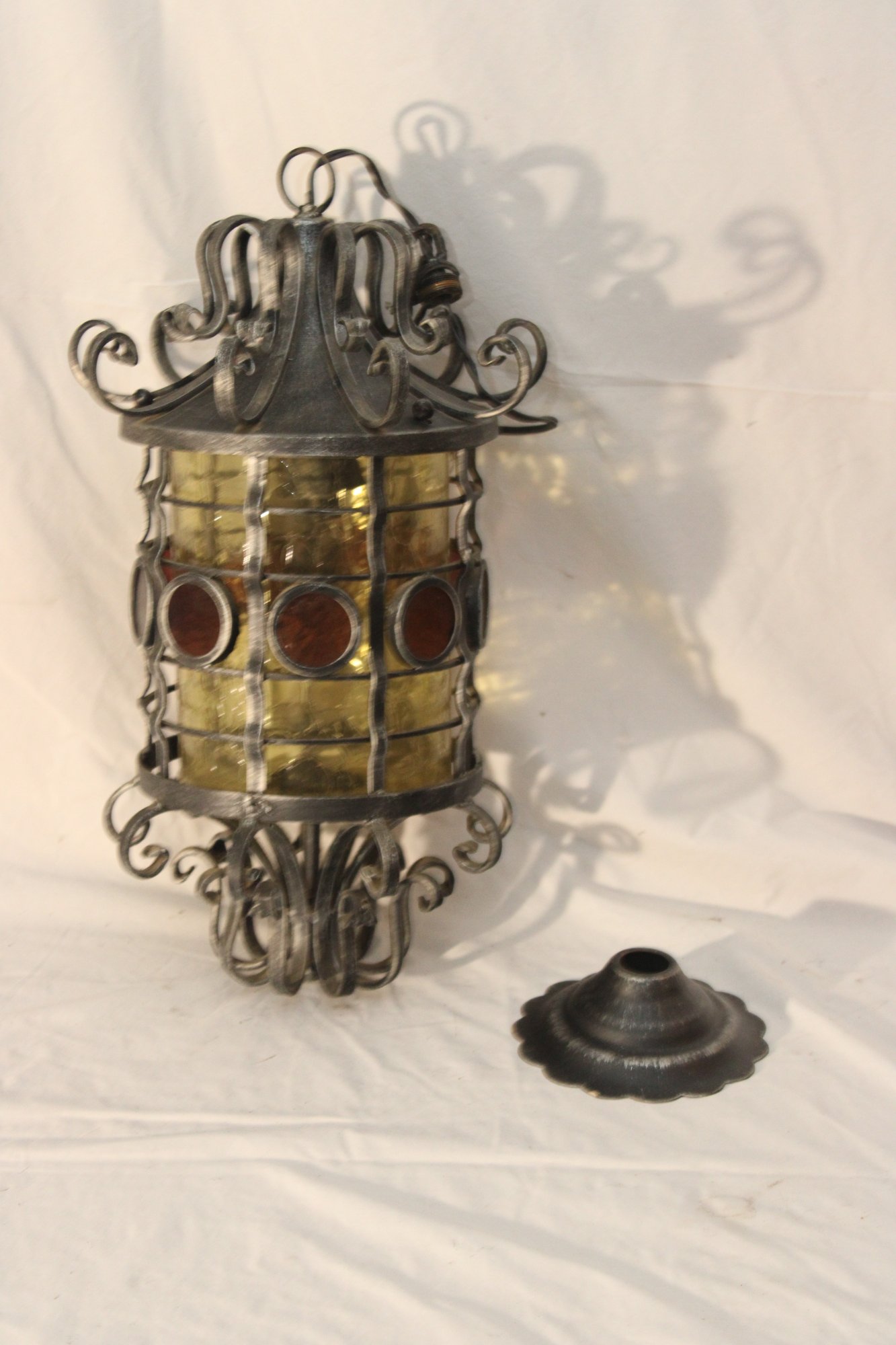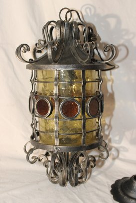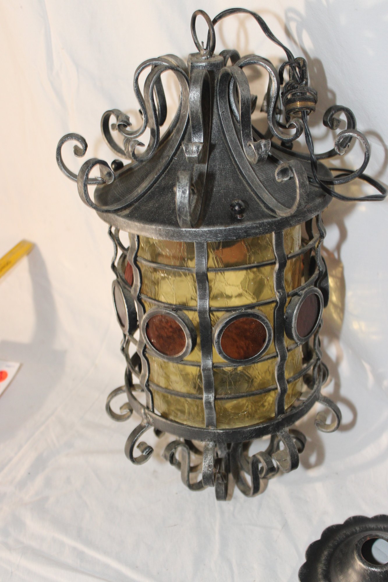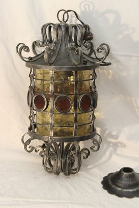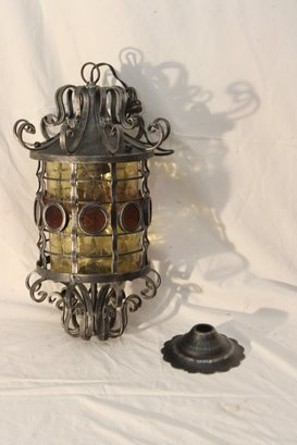 Antique Vintage Cast Metal Industrial Victorian Gothic Hanging Lamp
