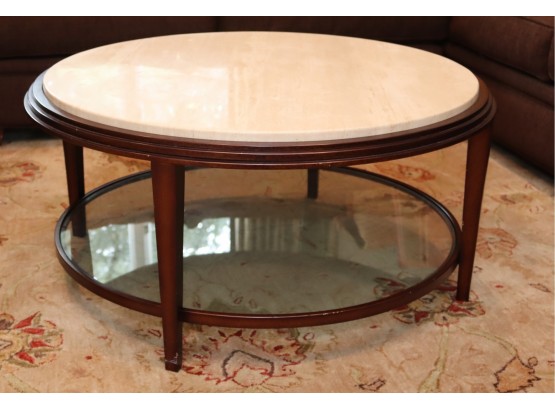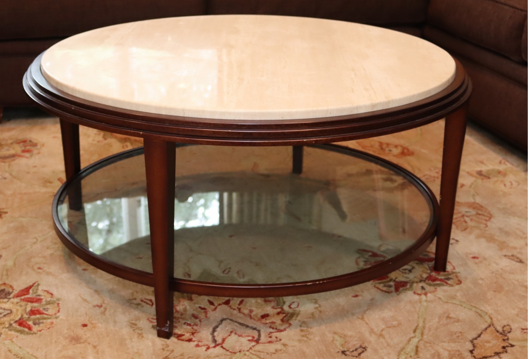 Artistica Round Coffee Table Granite Top Glass Bottom Shelf . It measures 36" x 18" high