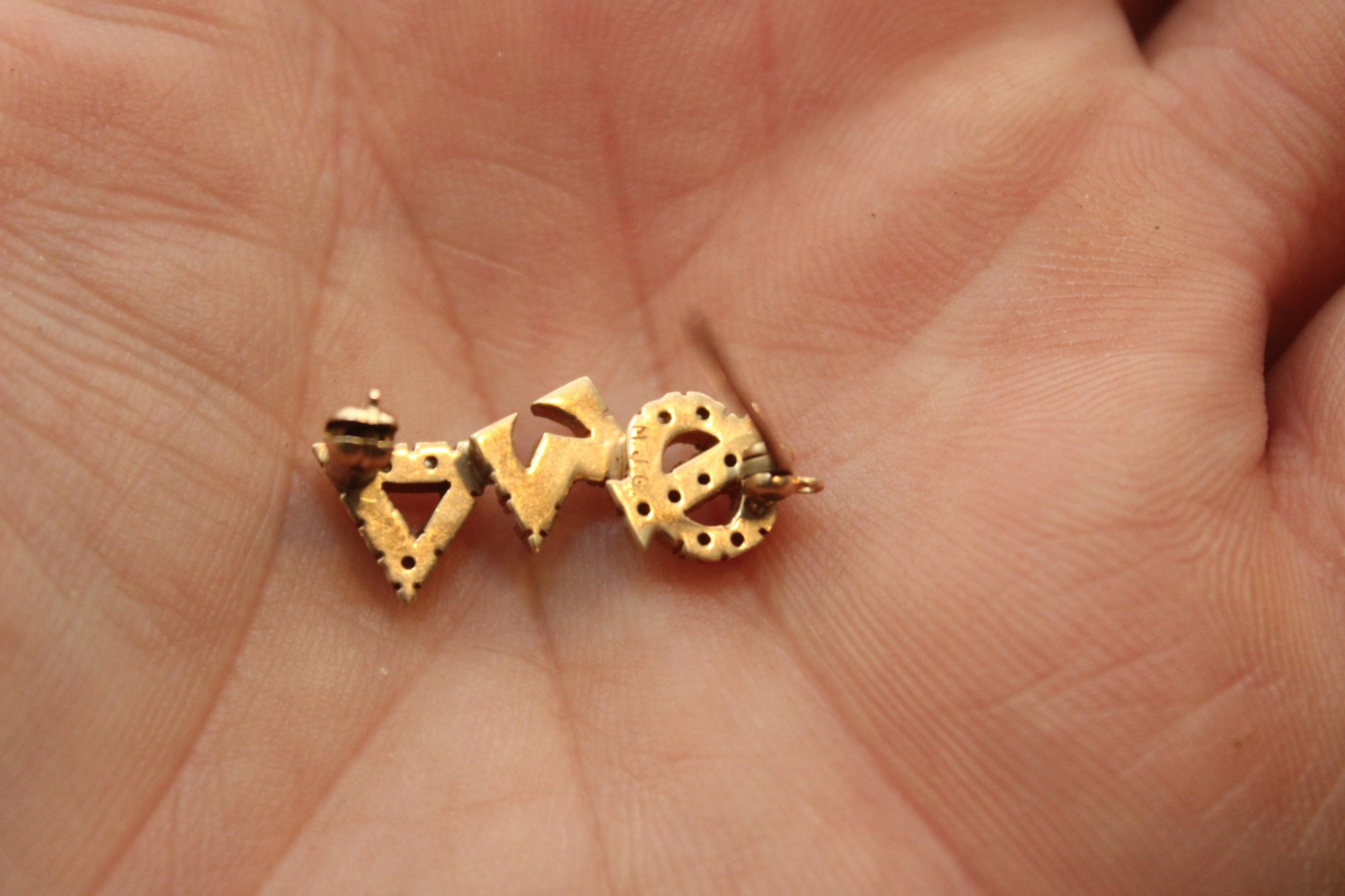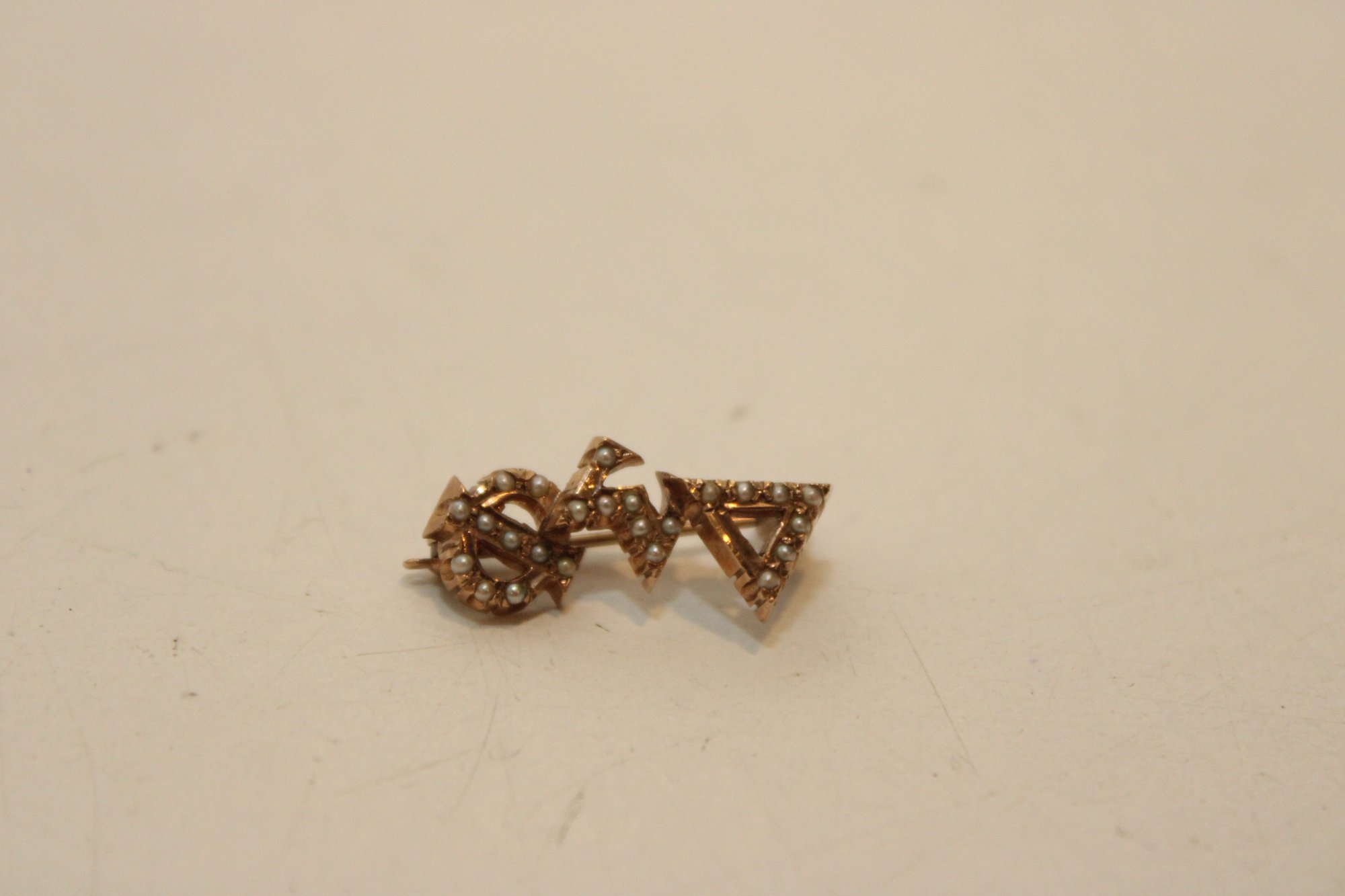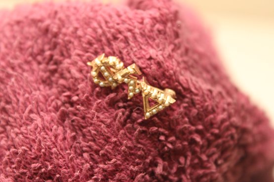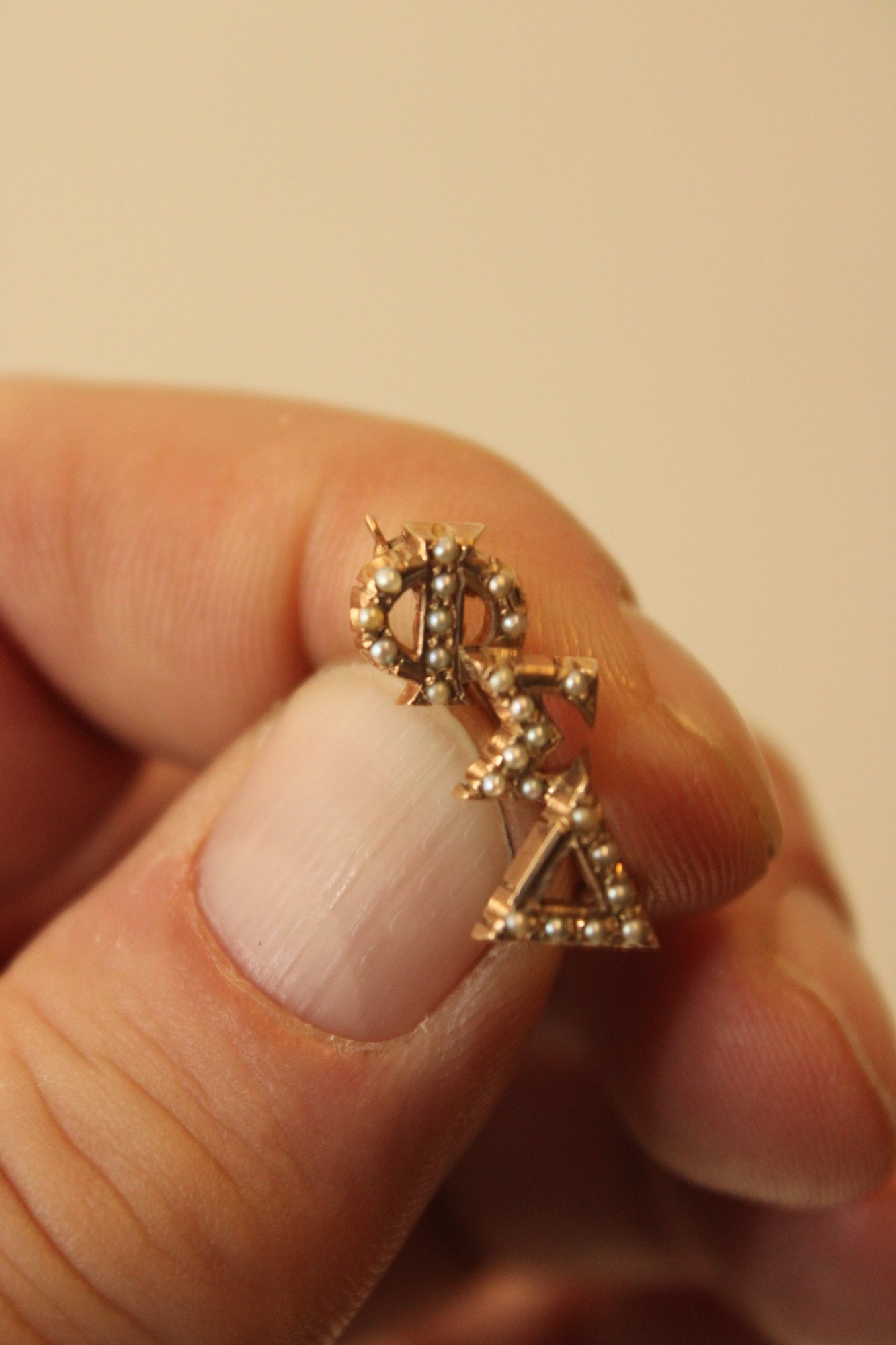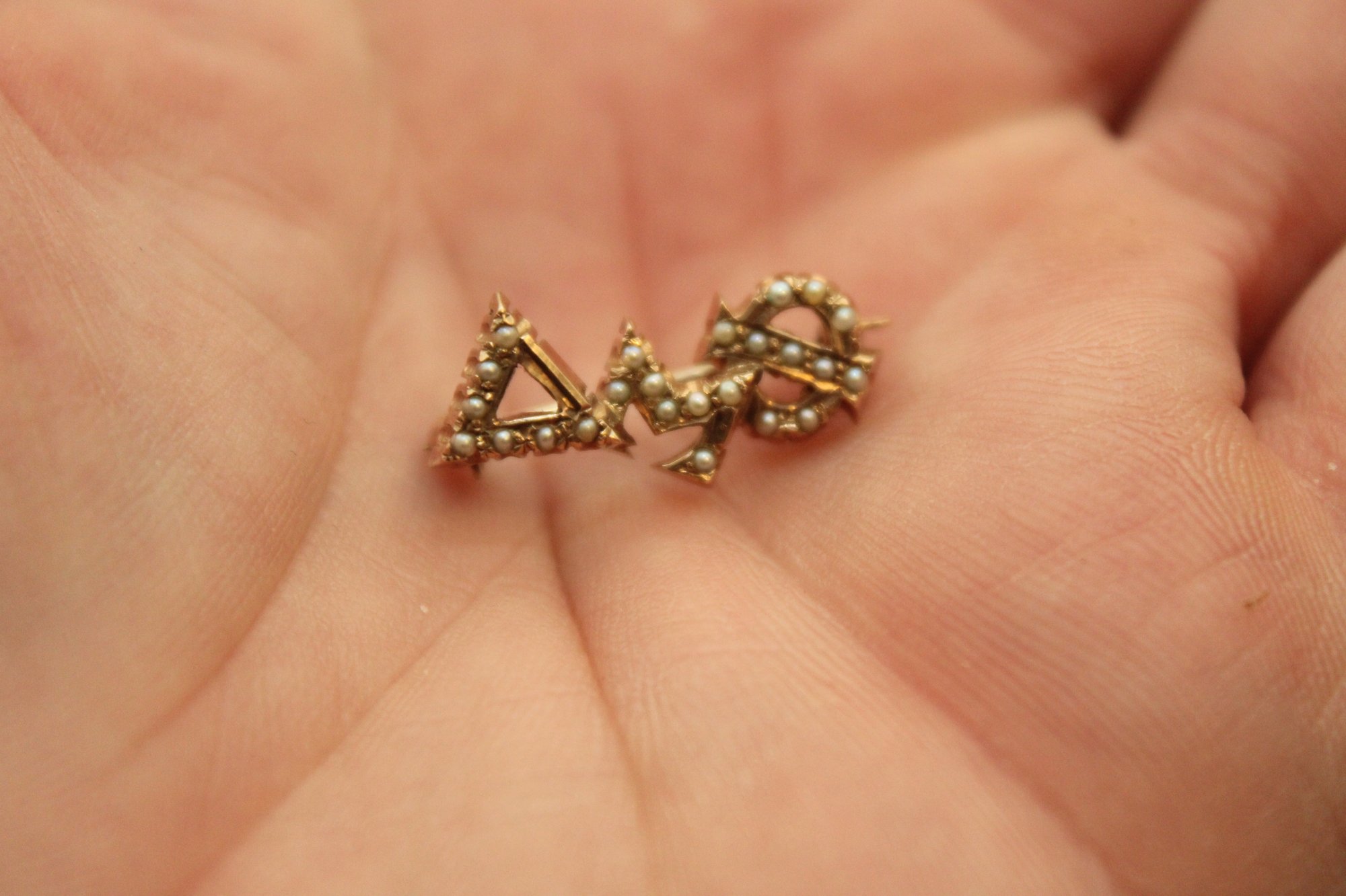 Phi Sigma Delta Fraternity Pin 10K Gold, Seed Pearls