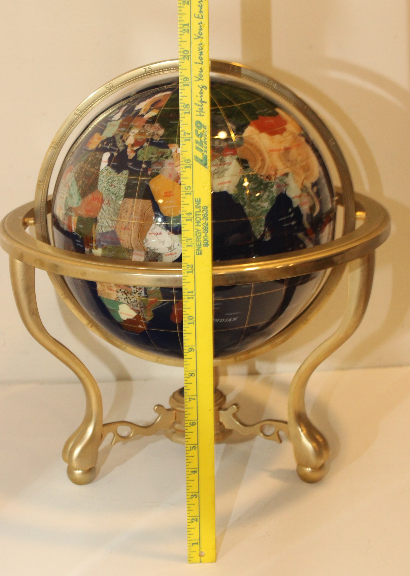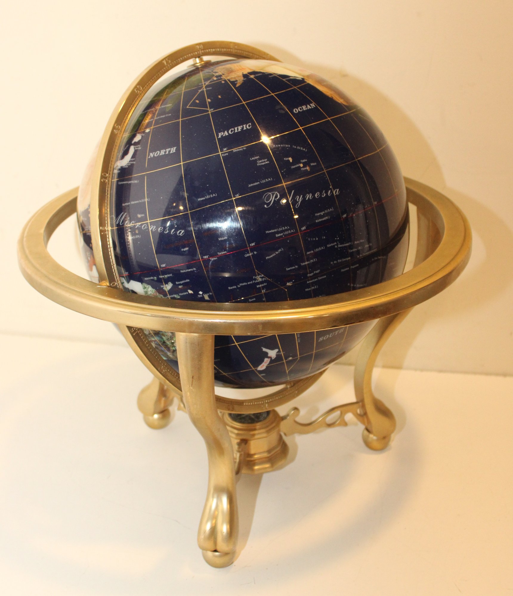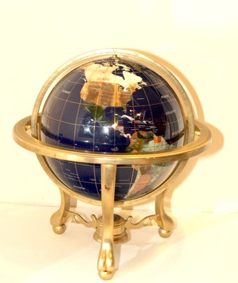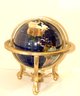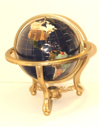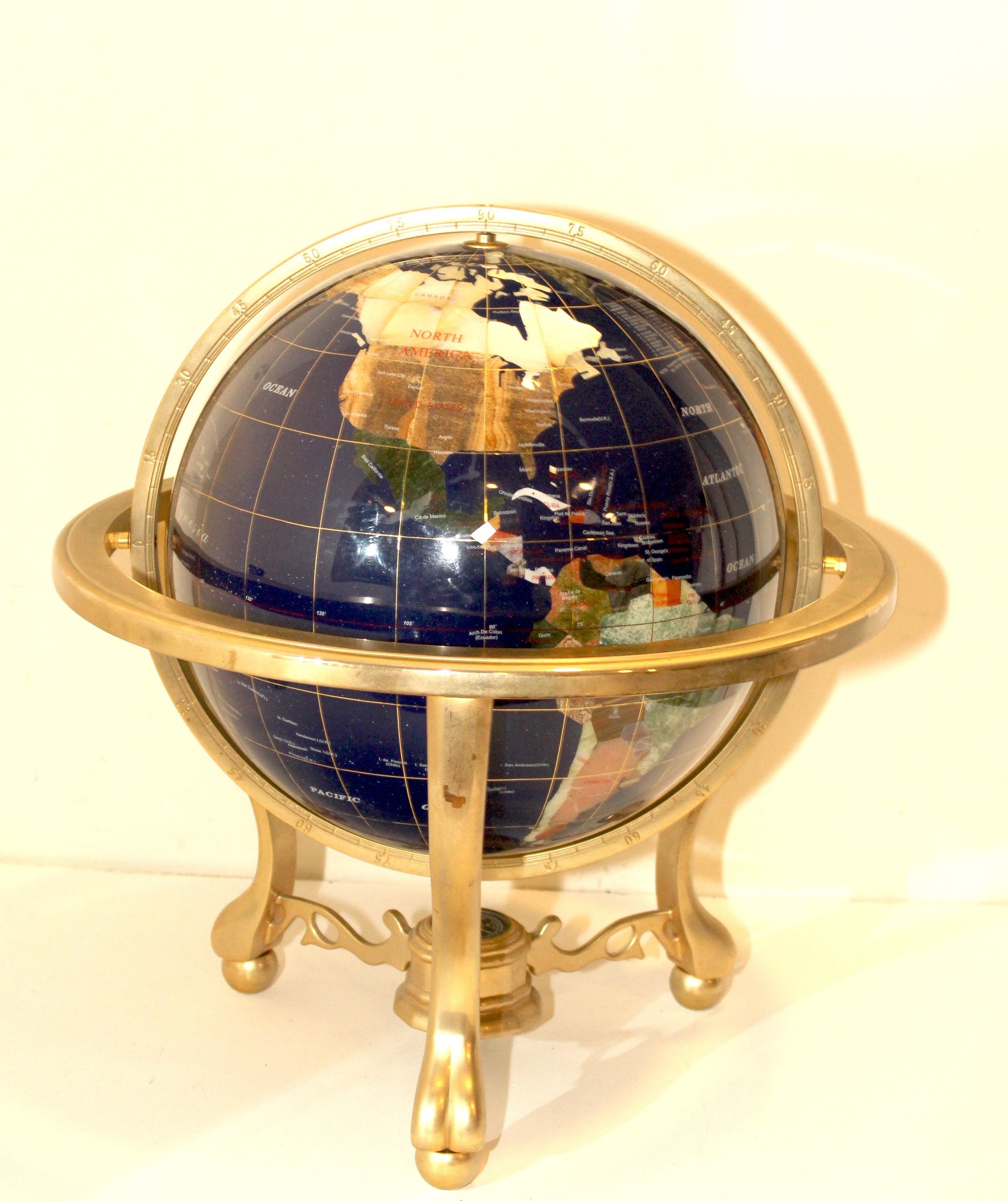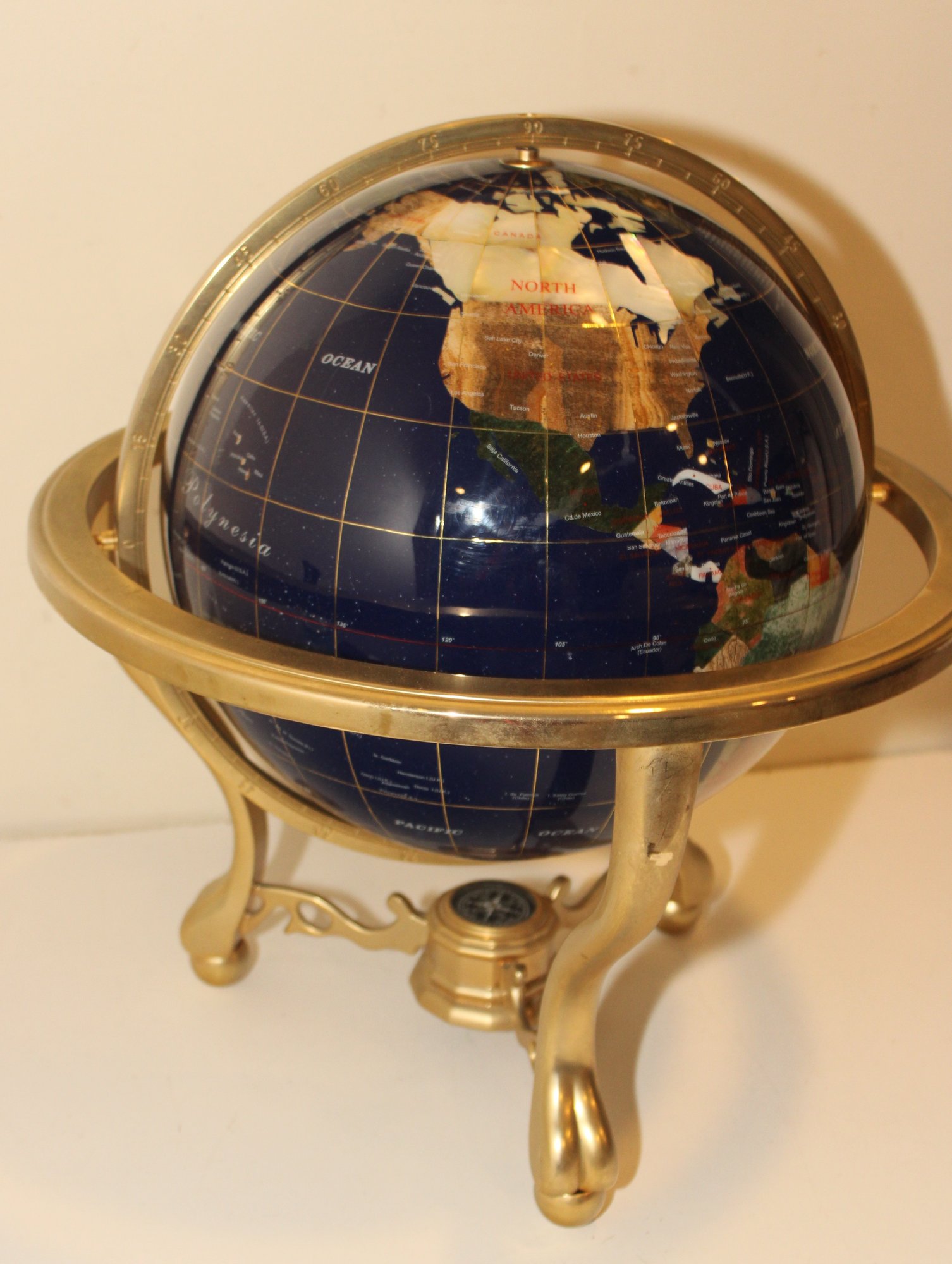 Lapis Ocean Gemstone World Globe W/ Compass Brass Stand