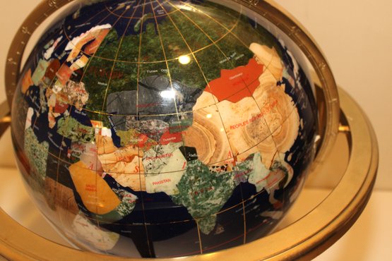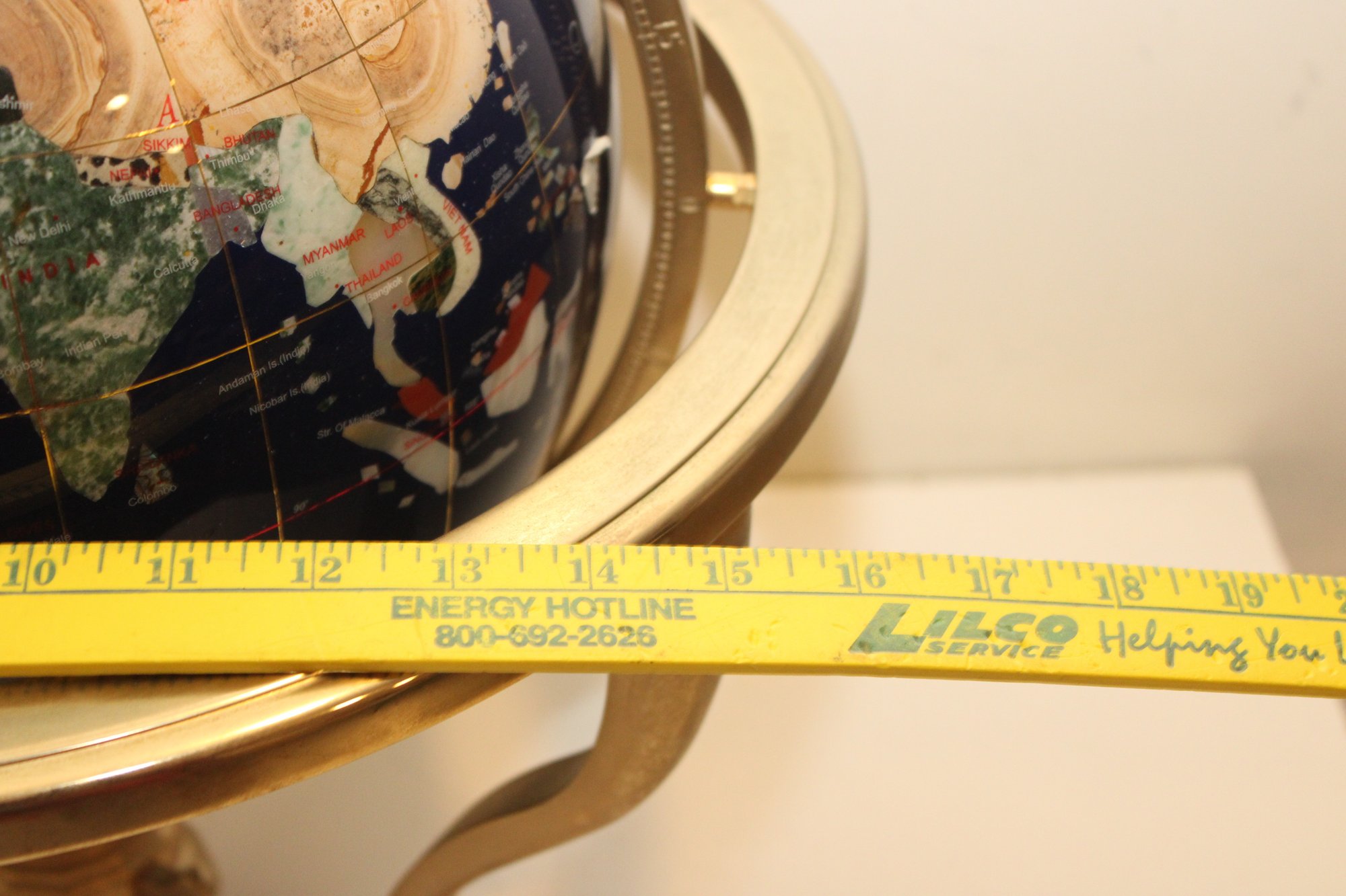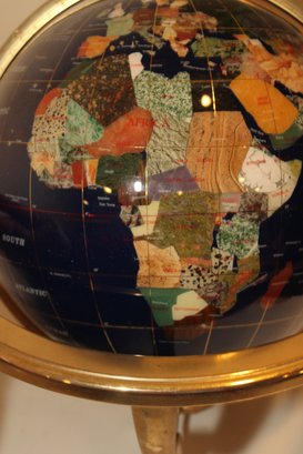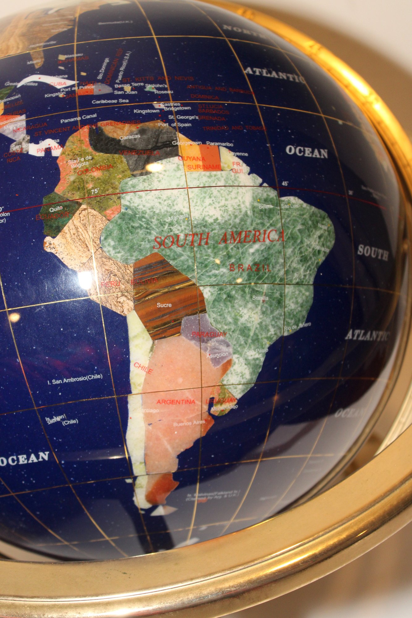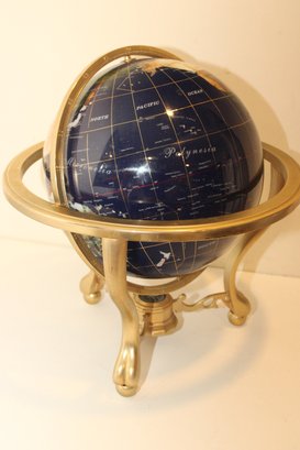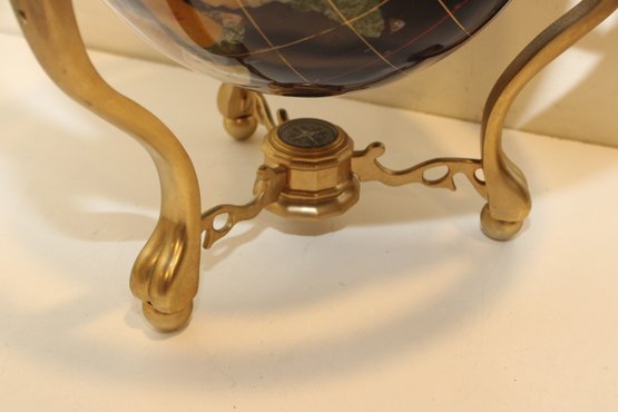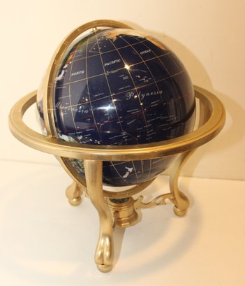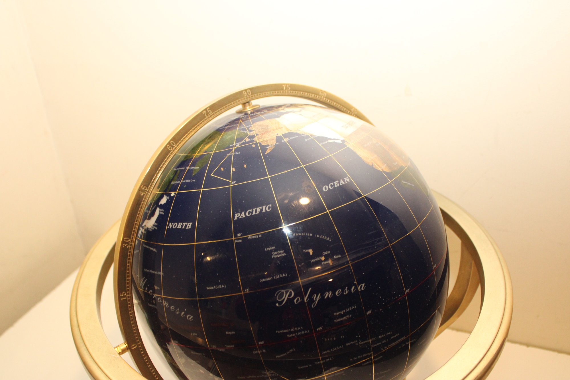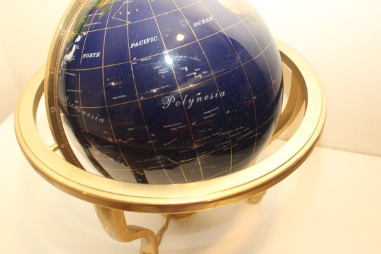 Lapis Ocean Gemstone World Globe W/ Compass Brass Stand