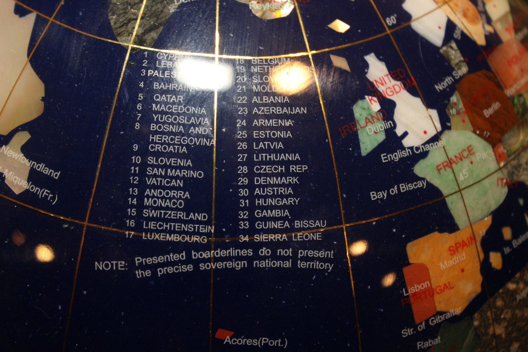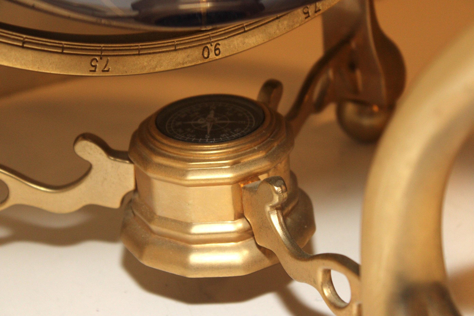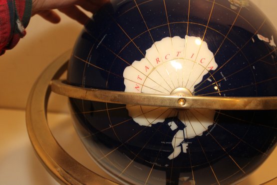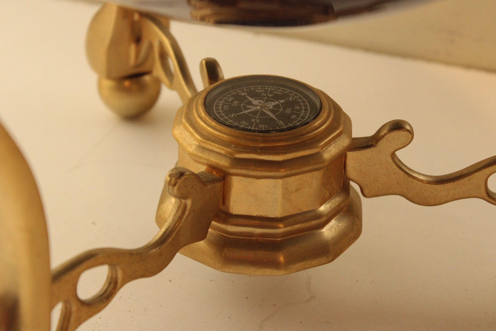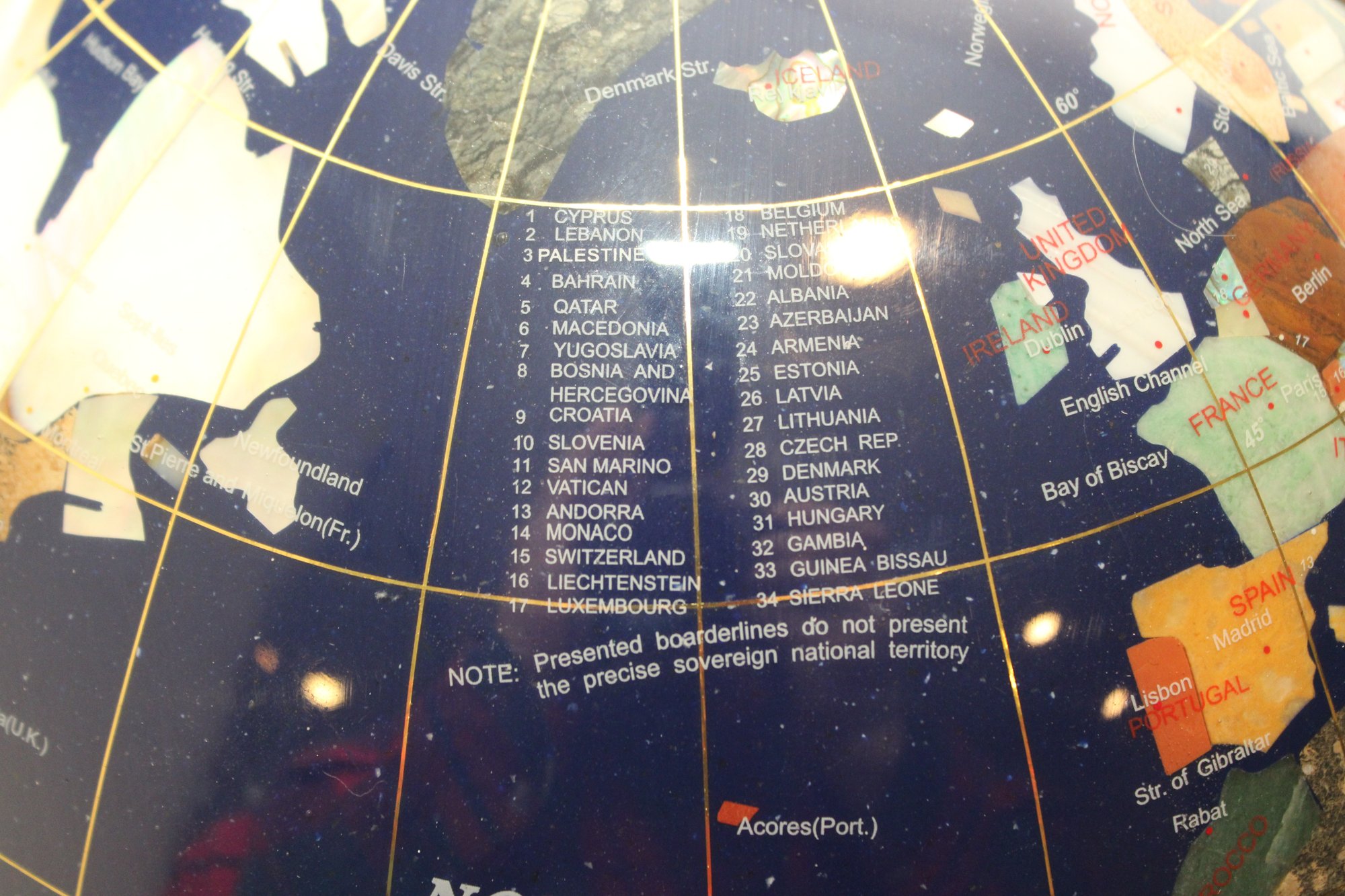 Lapis Ocean Gemstone World Globe W/ Compass Brass Stand