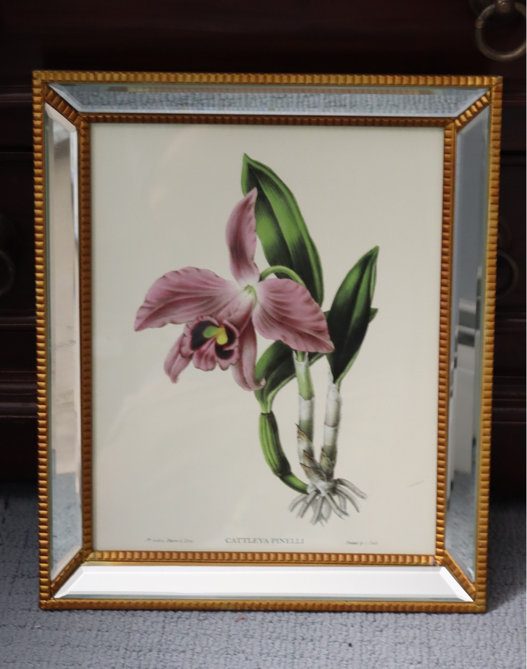 MIRROR & Gold Framed Two's Company Floral Botanical Print CATTLEYA PINELLI.
