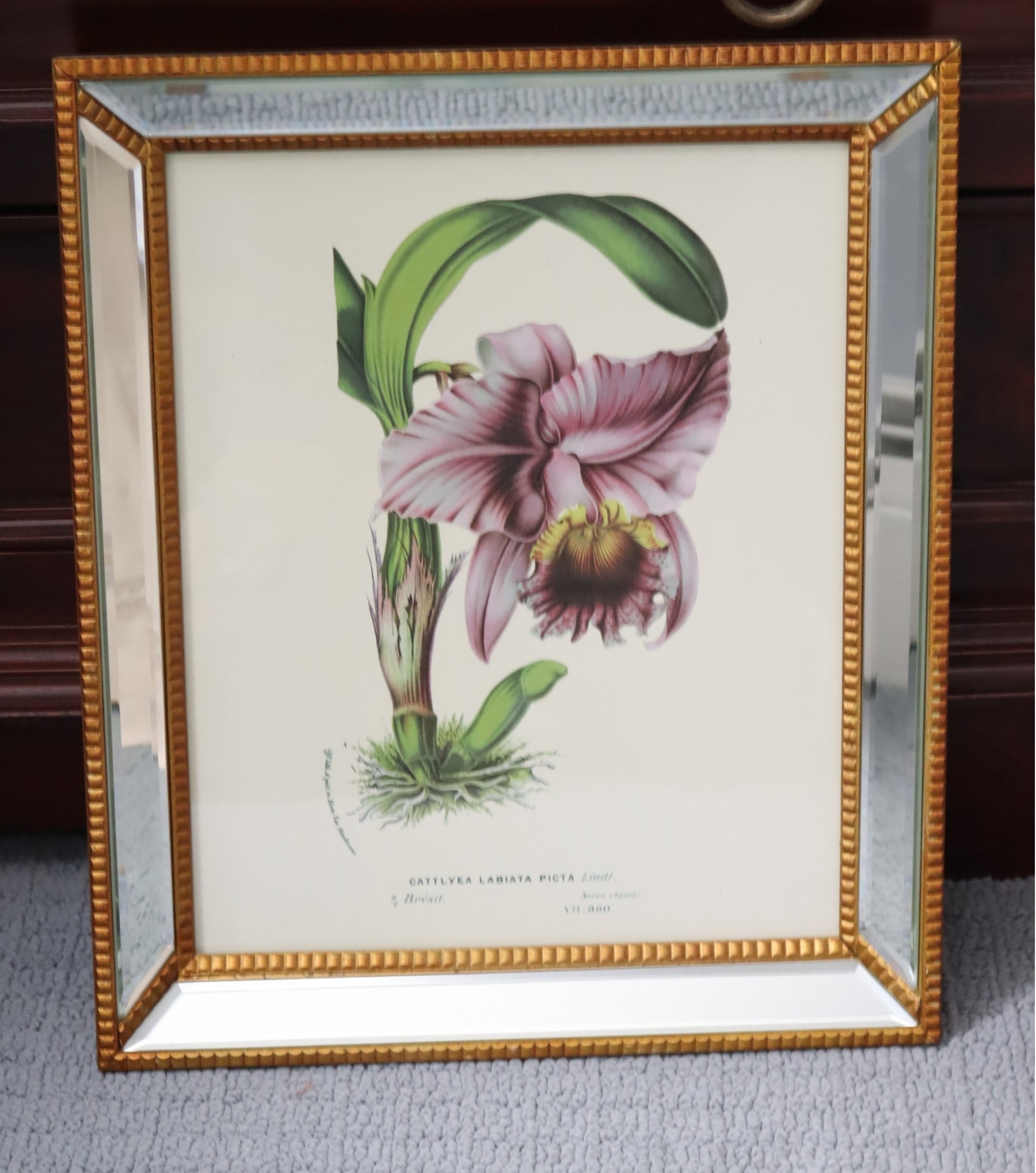 MIRROR & Gold Framed Two's Company Floral Botanical Print CATTLYEA LABIATA PICTA
