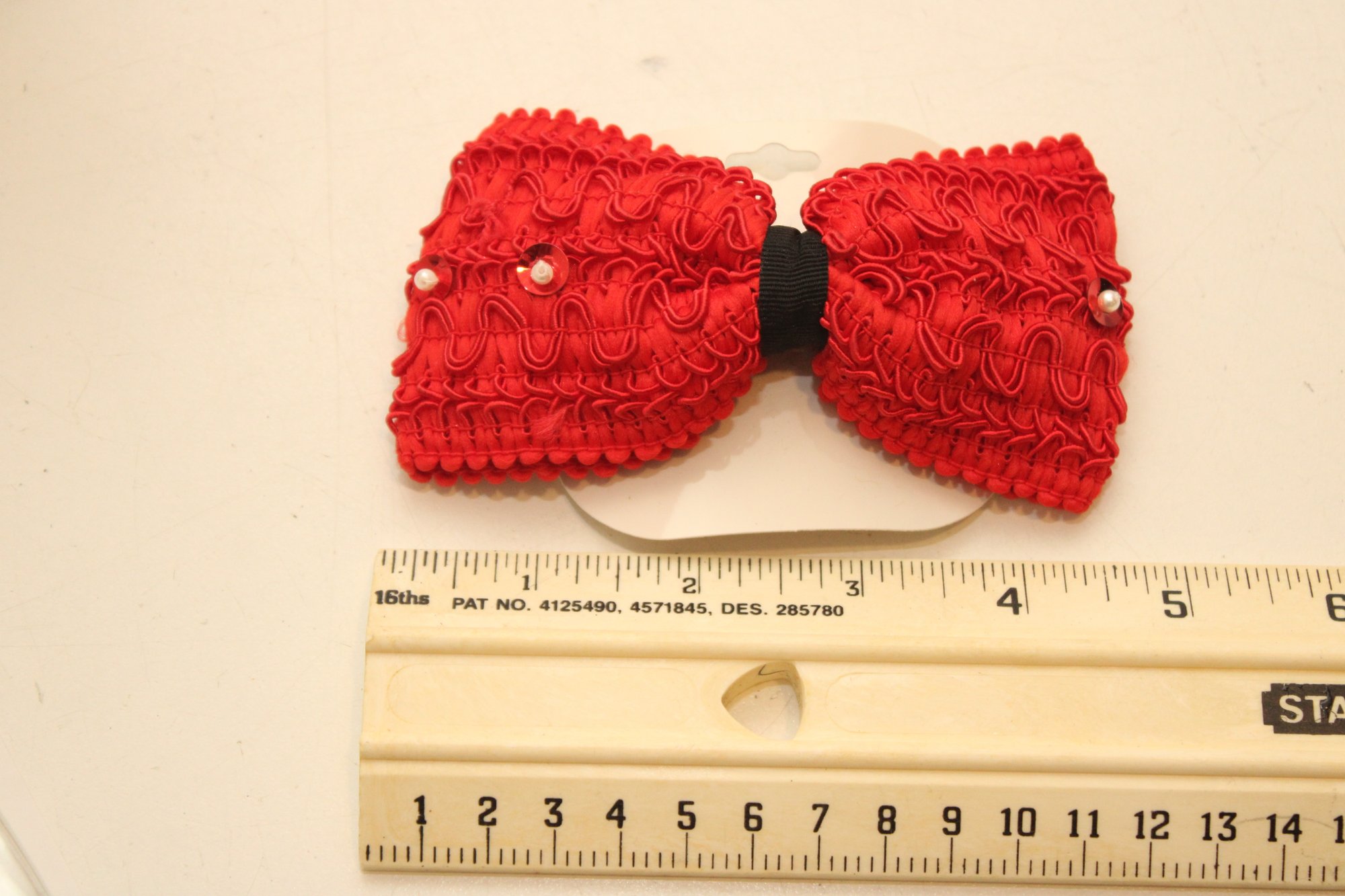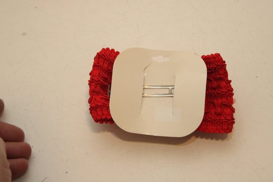 Red Bow Barrette W/ Pearls