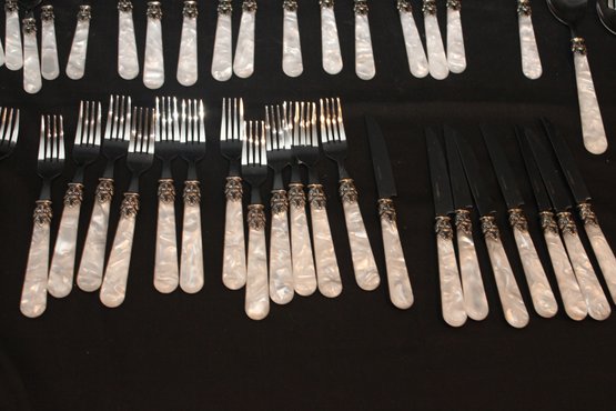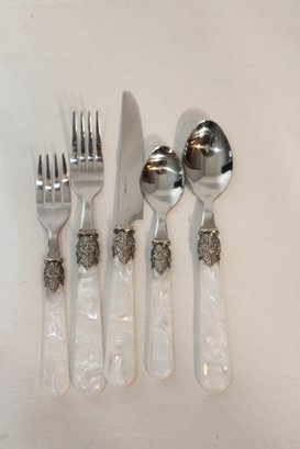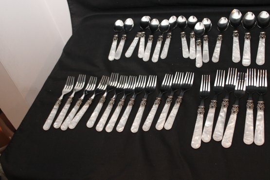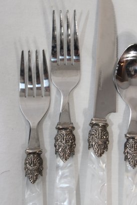 Silverware Set Plastic Pearlized Handles (S-4)
