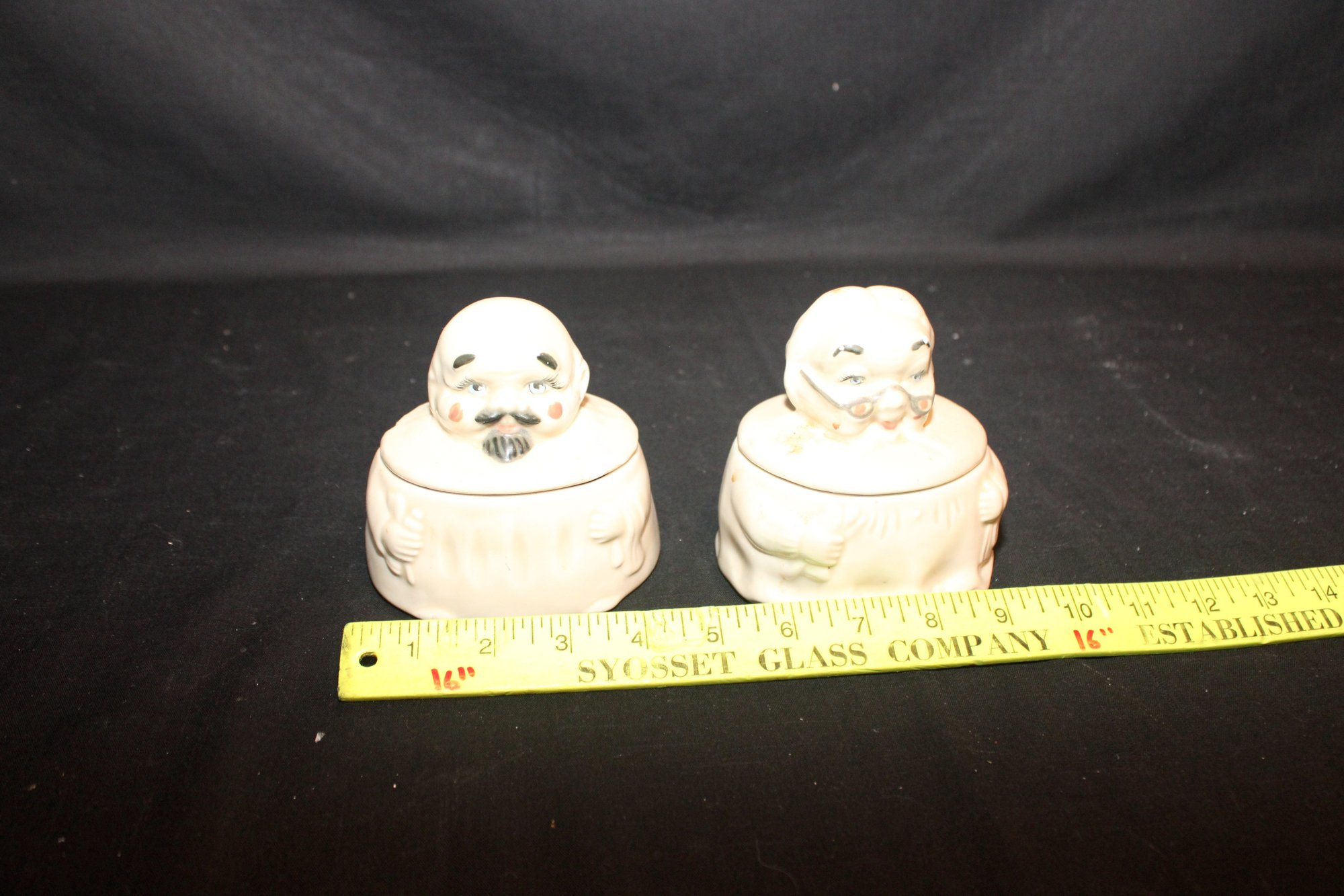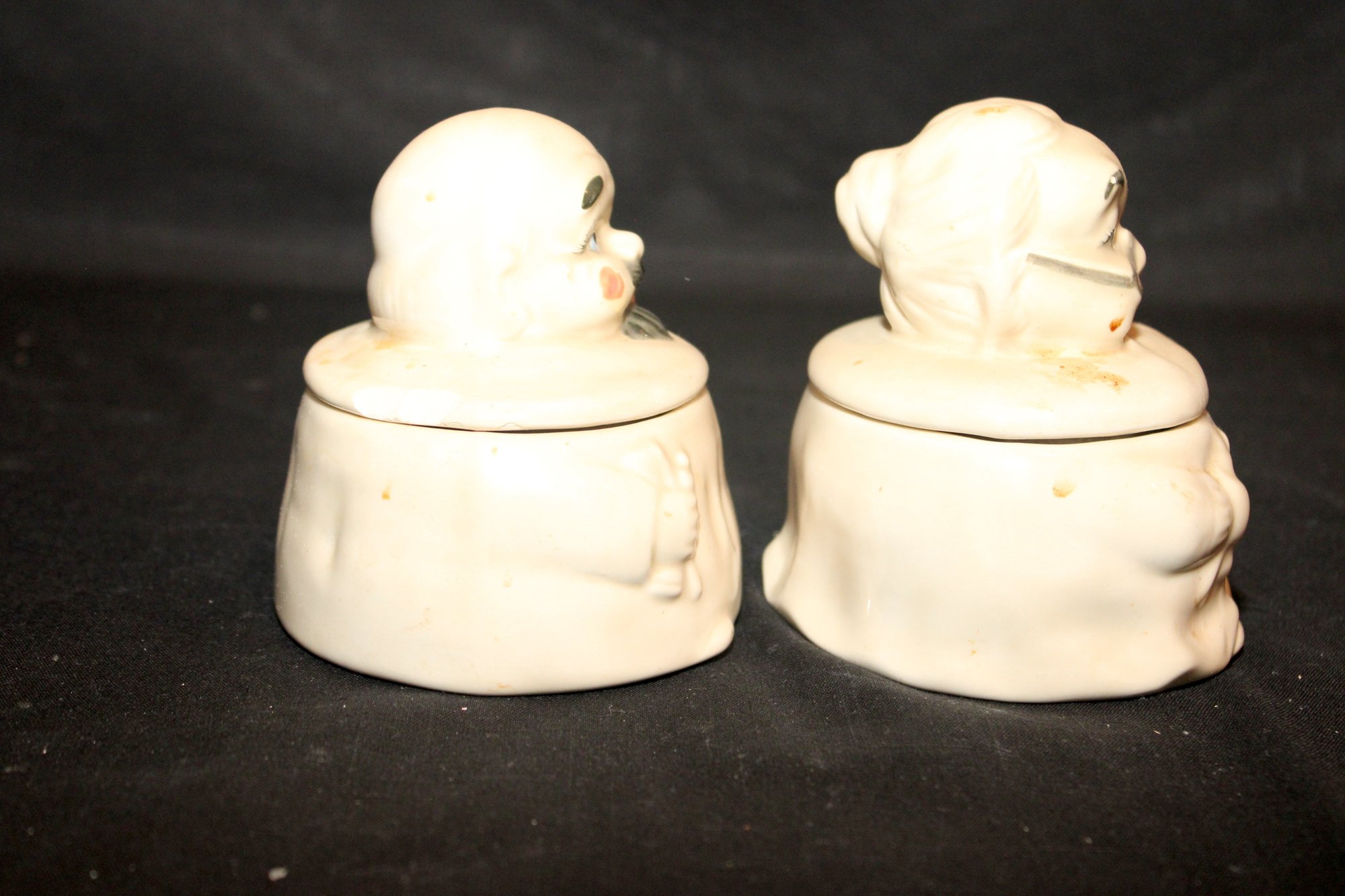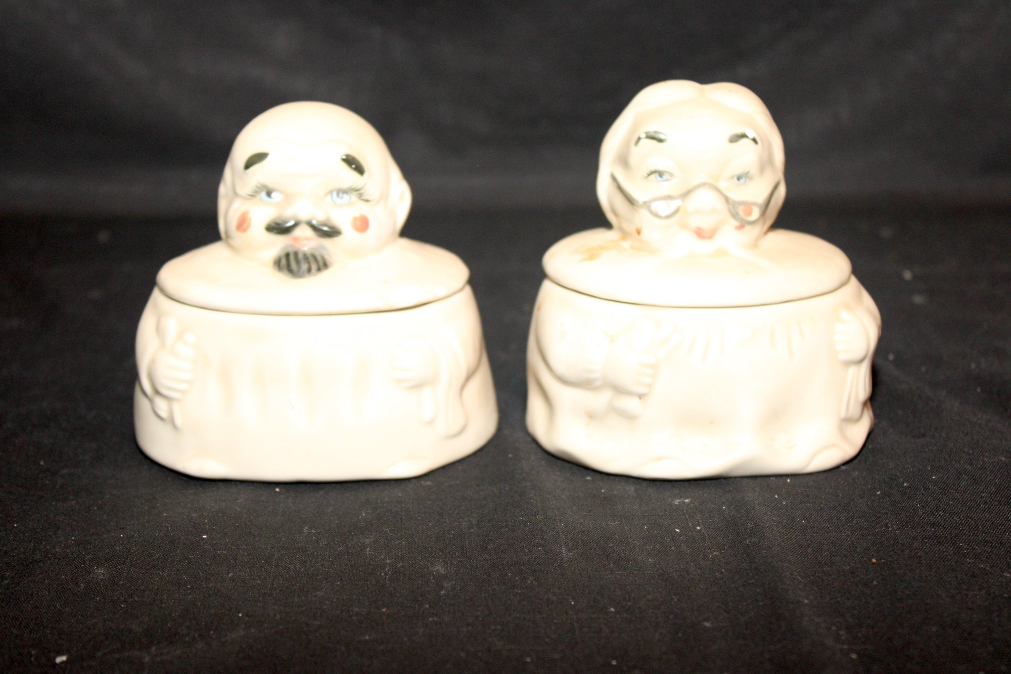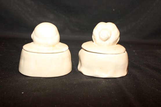 Vintage Ceramic "His" And "Hers" Chopper Hopper Denture Holders