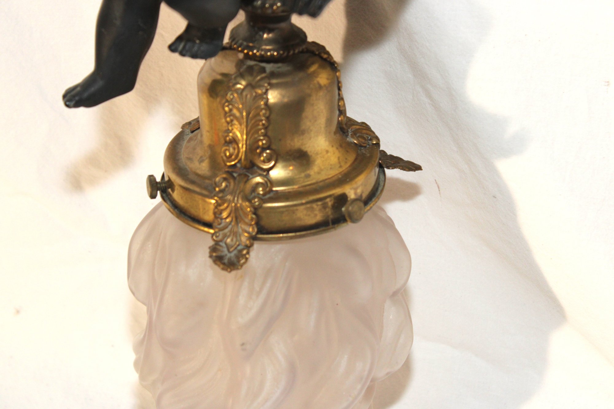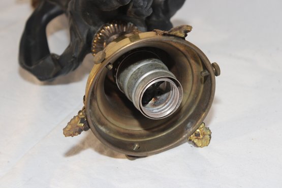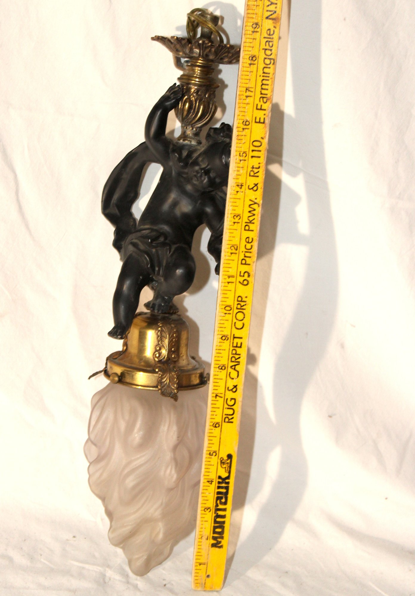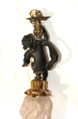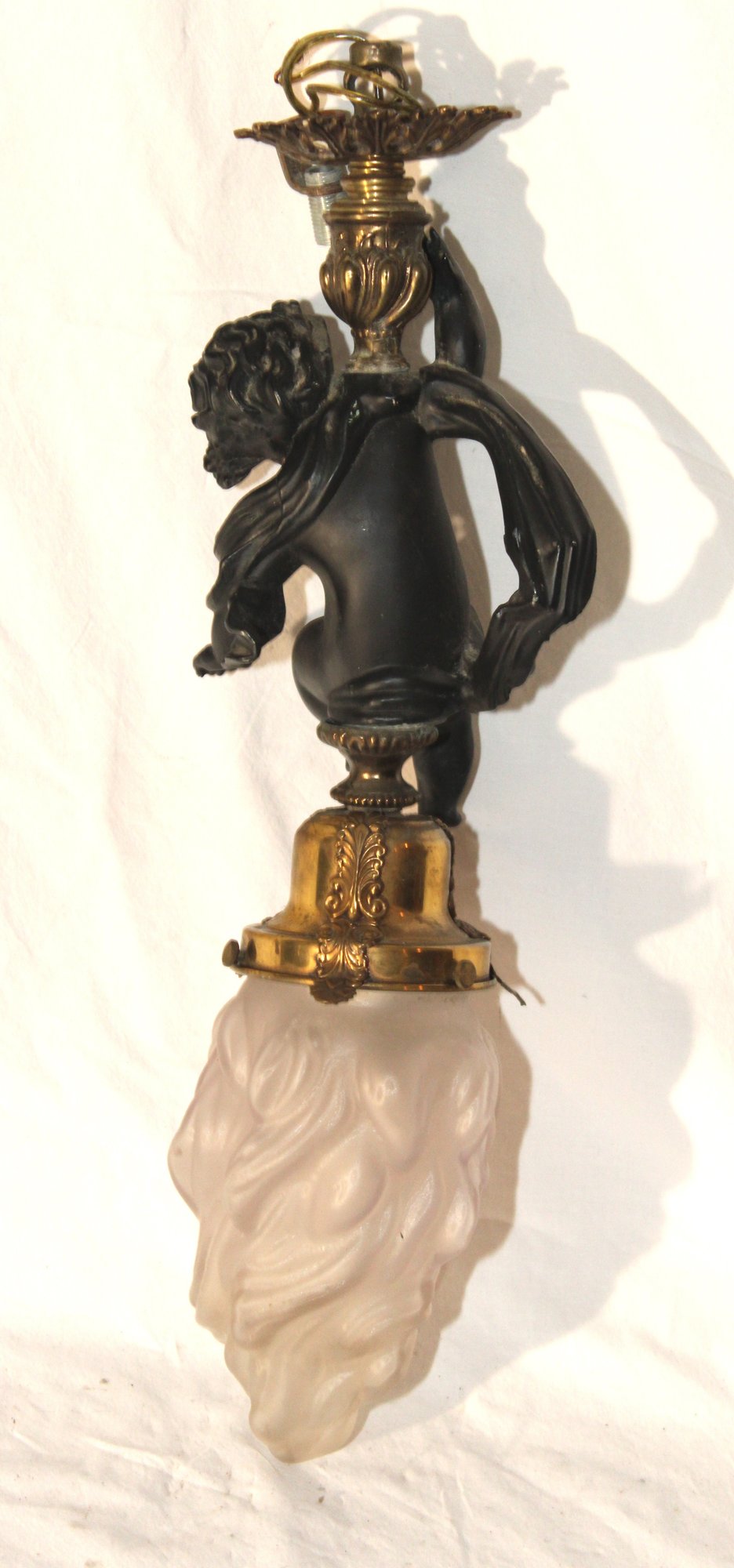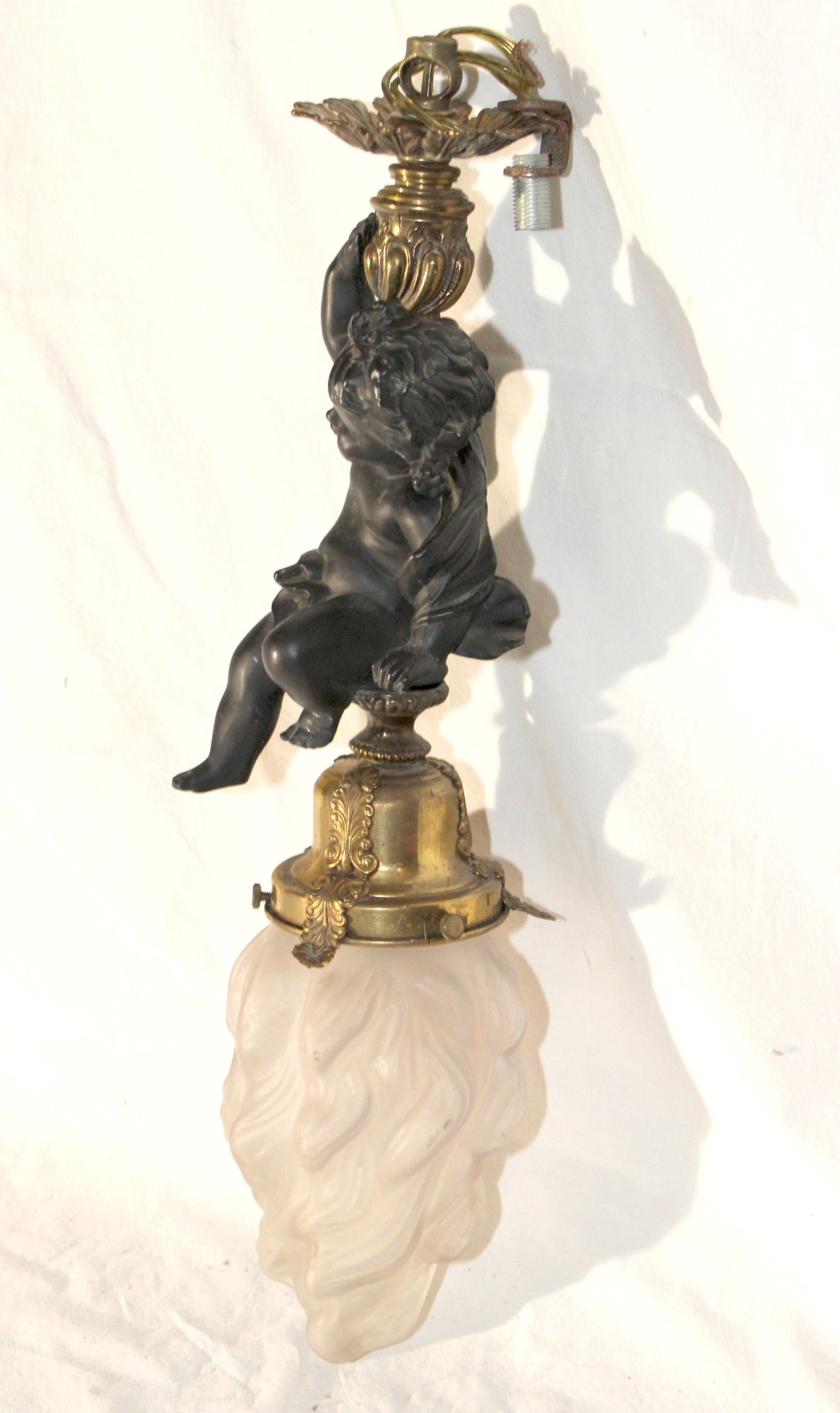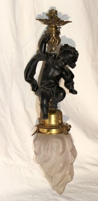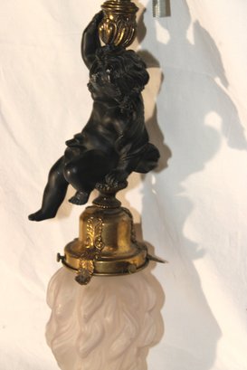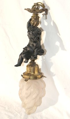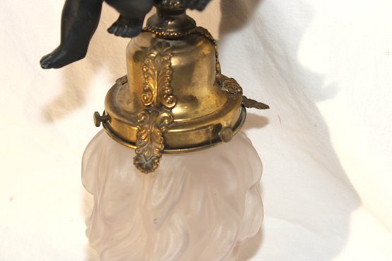 Vintage Cherub Hanging Ceiling Light W/ Glass Torch Shade (B-50)
