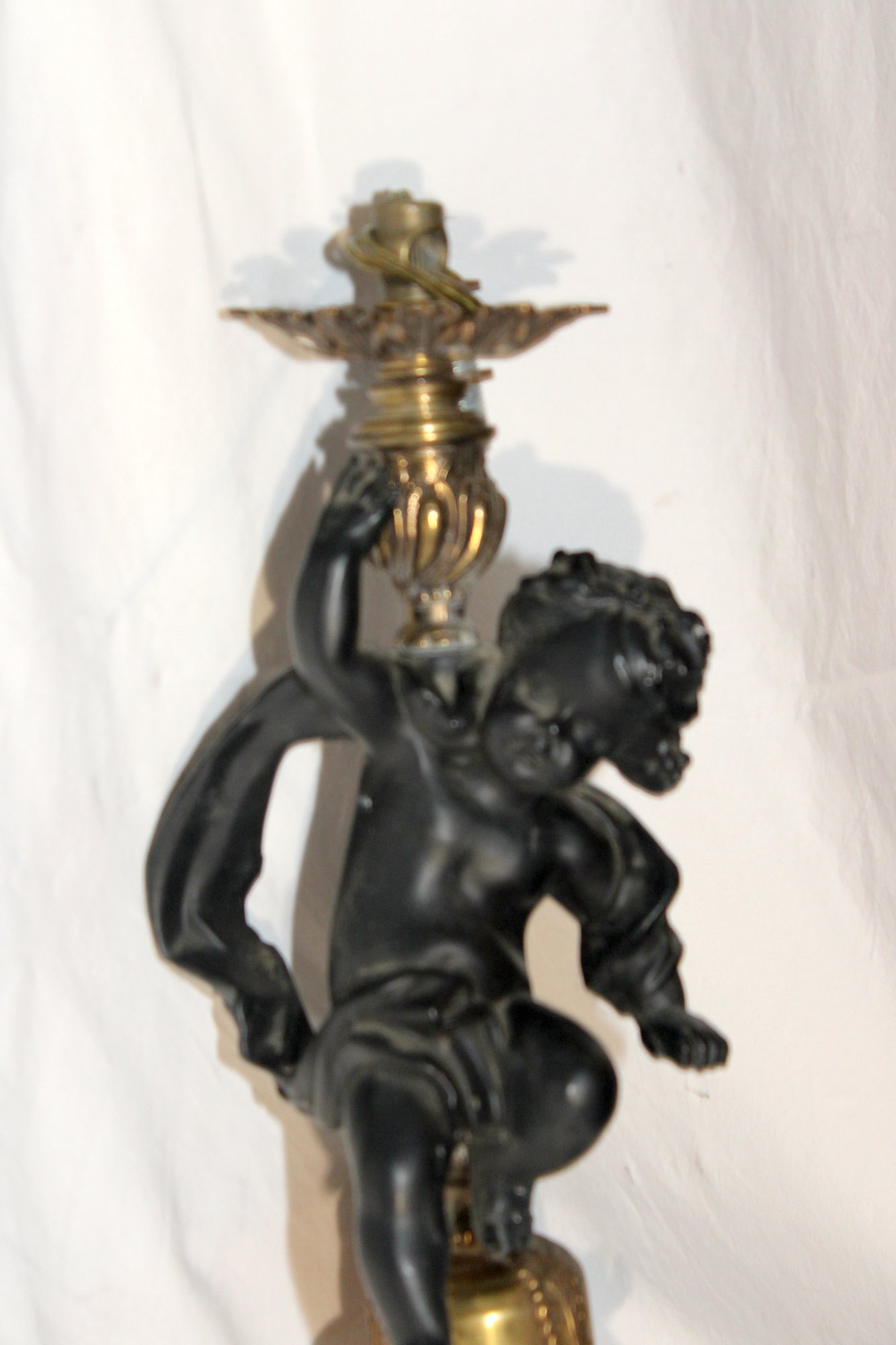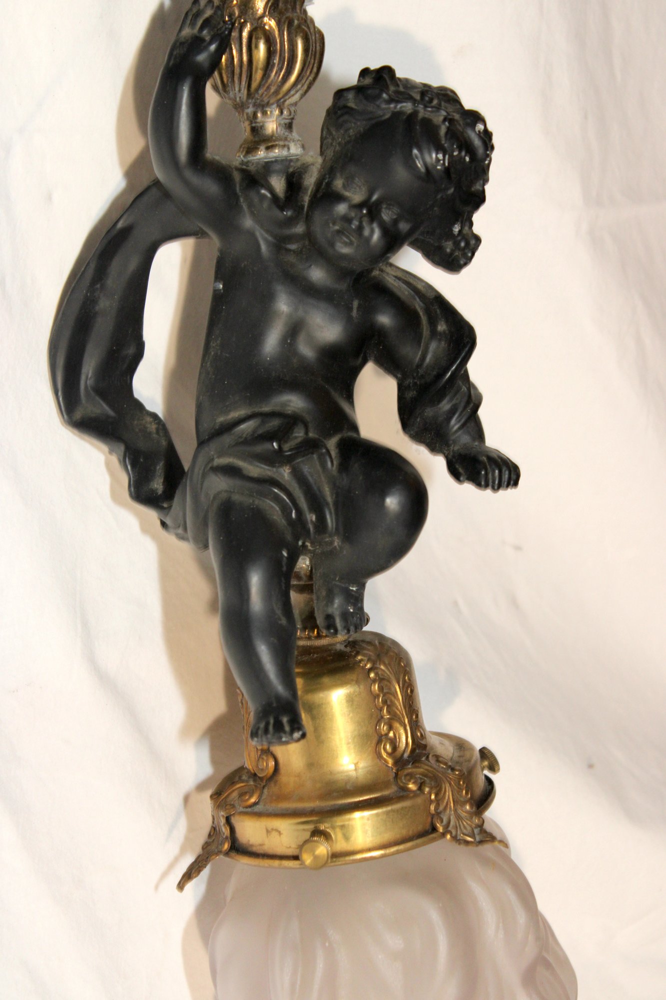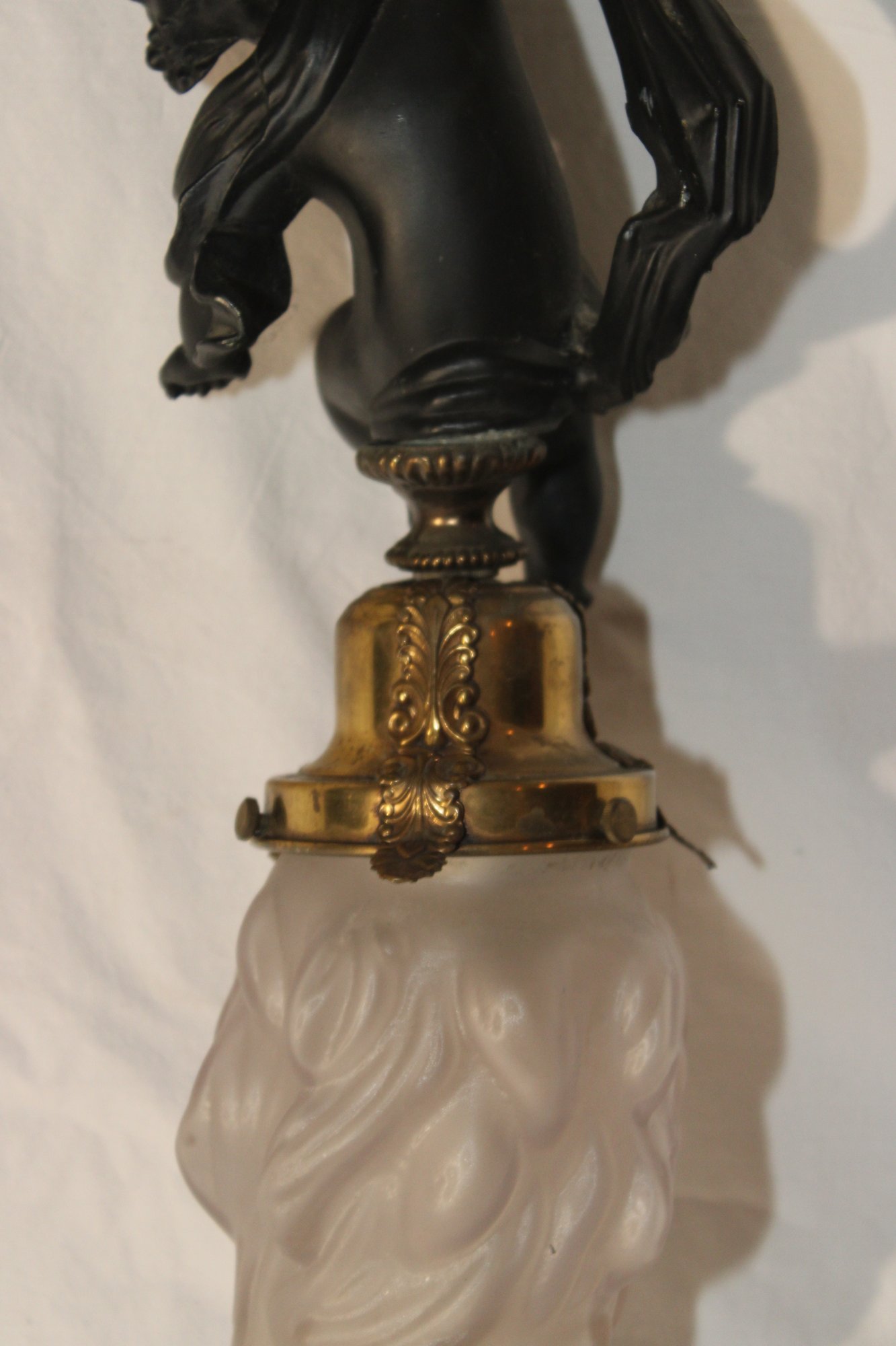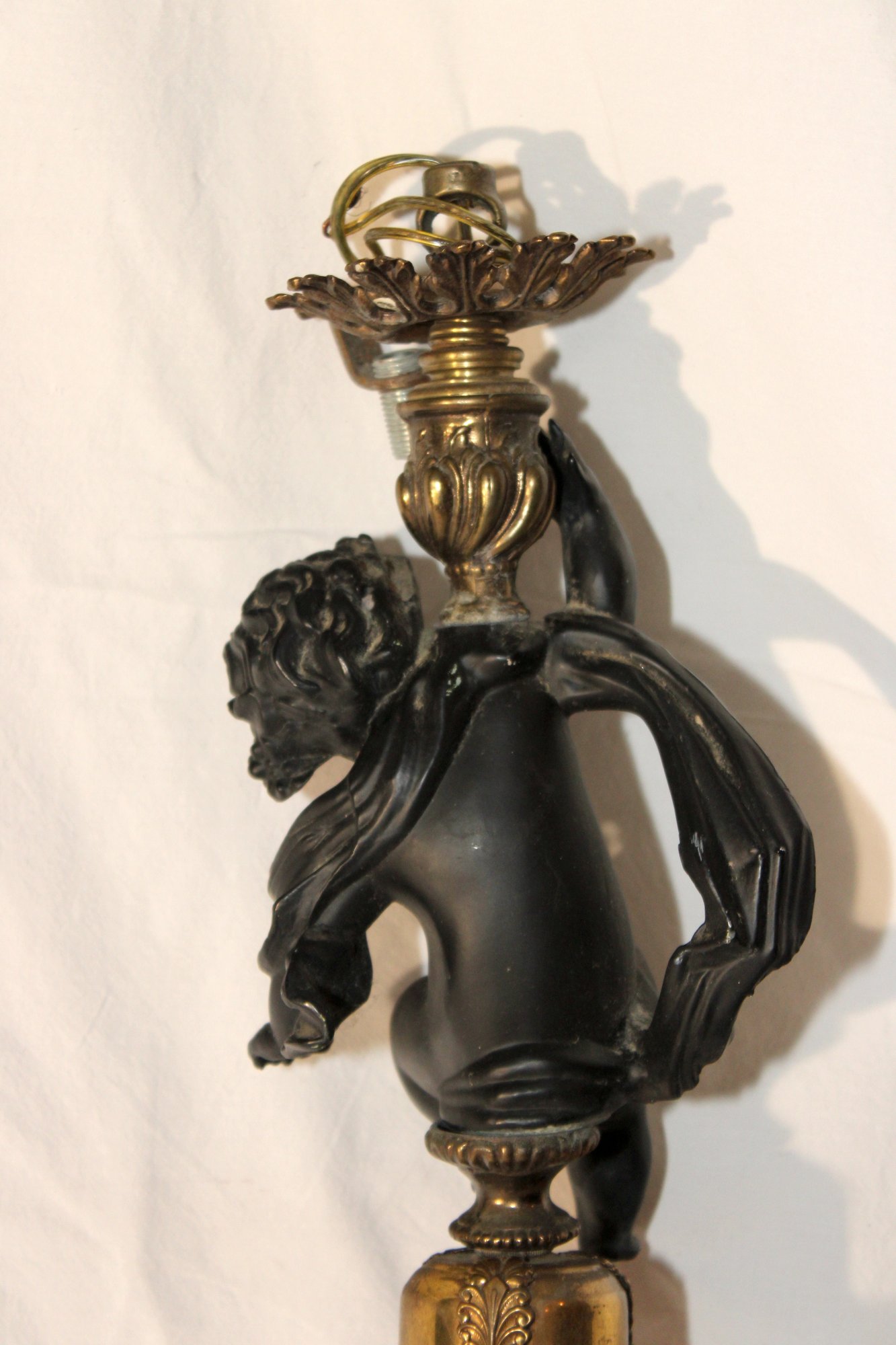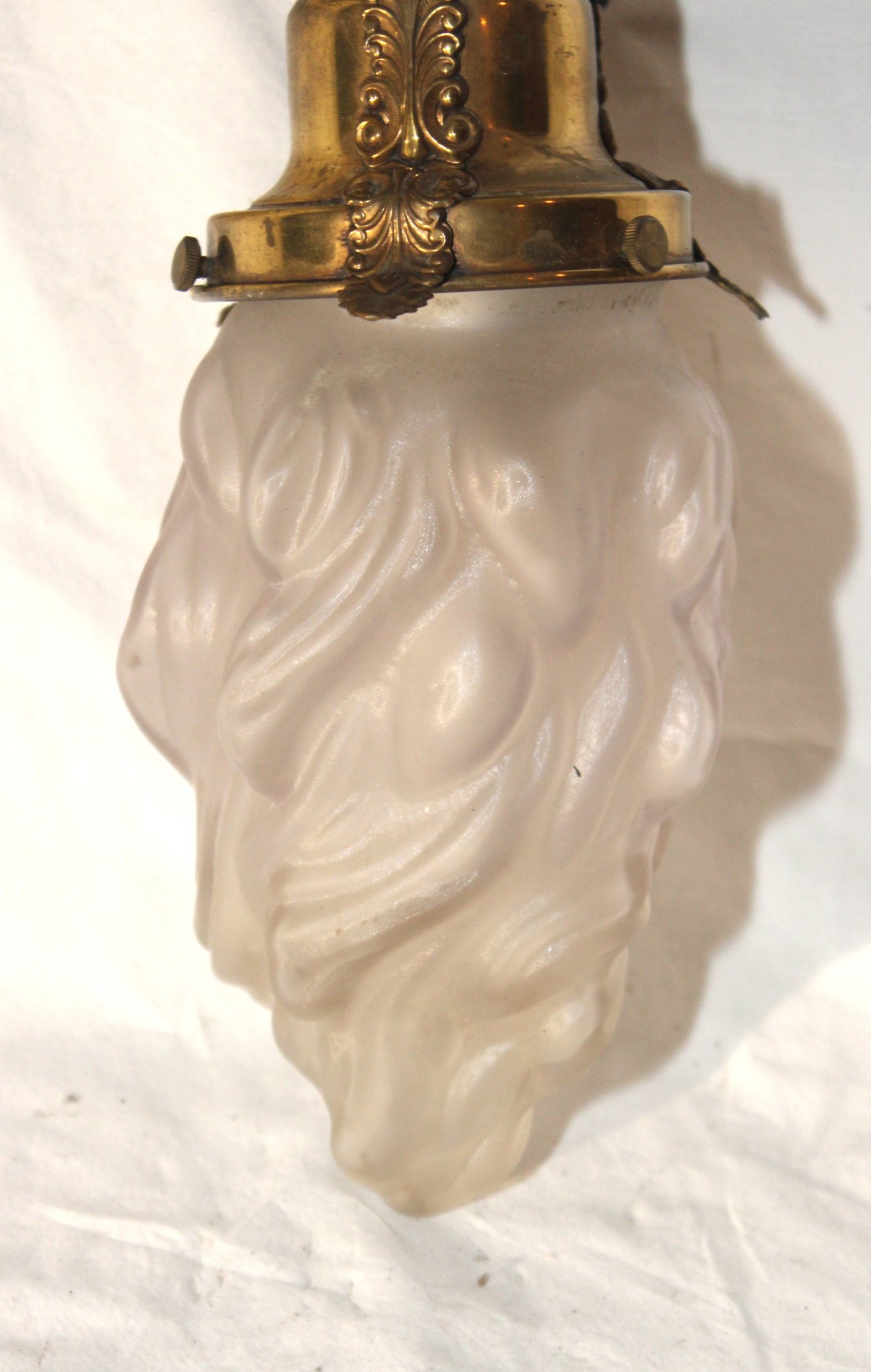 Vintage Cherub Hanging Ceiling Light W/ Glass Torch Shade (B-50)