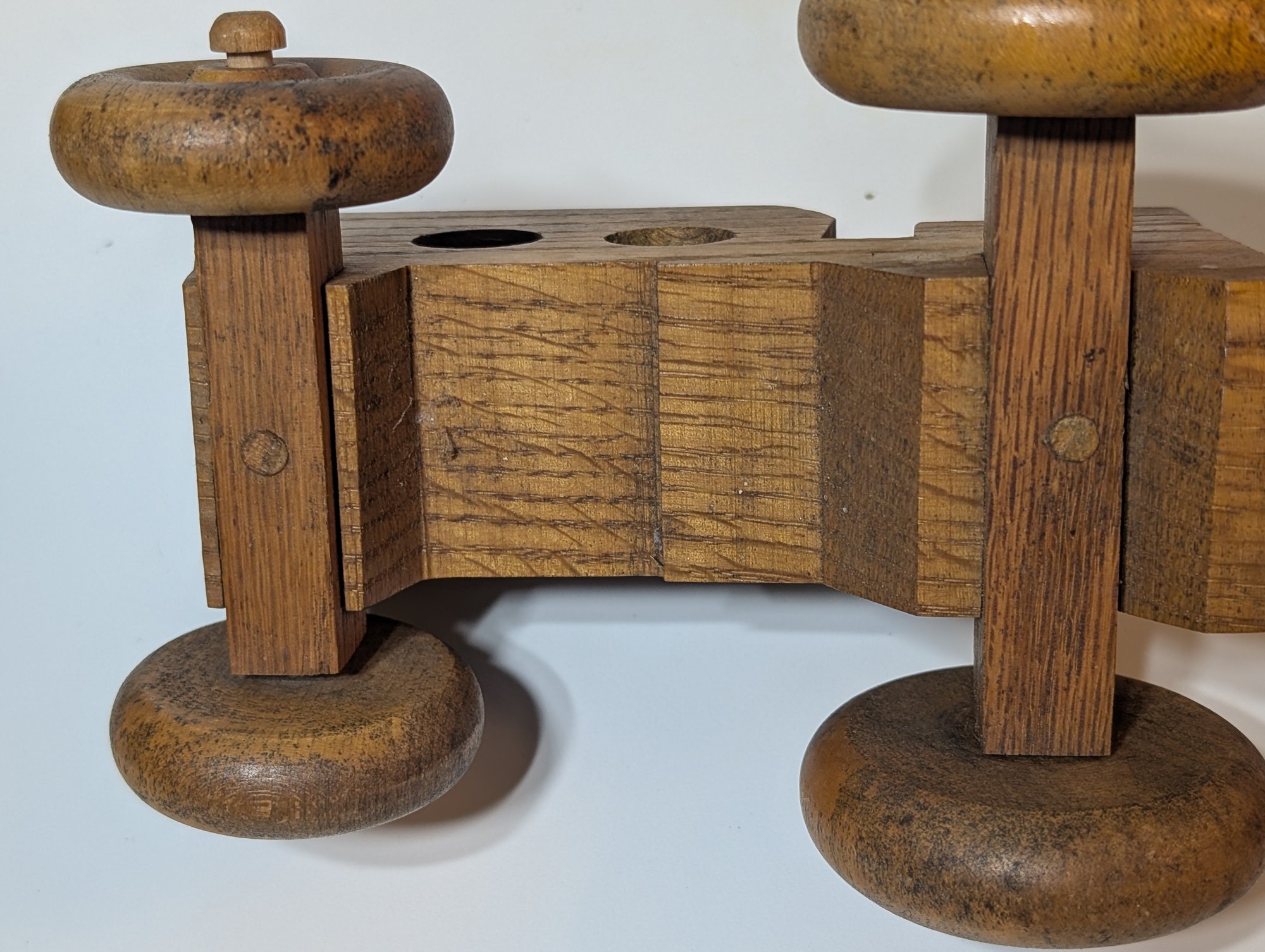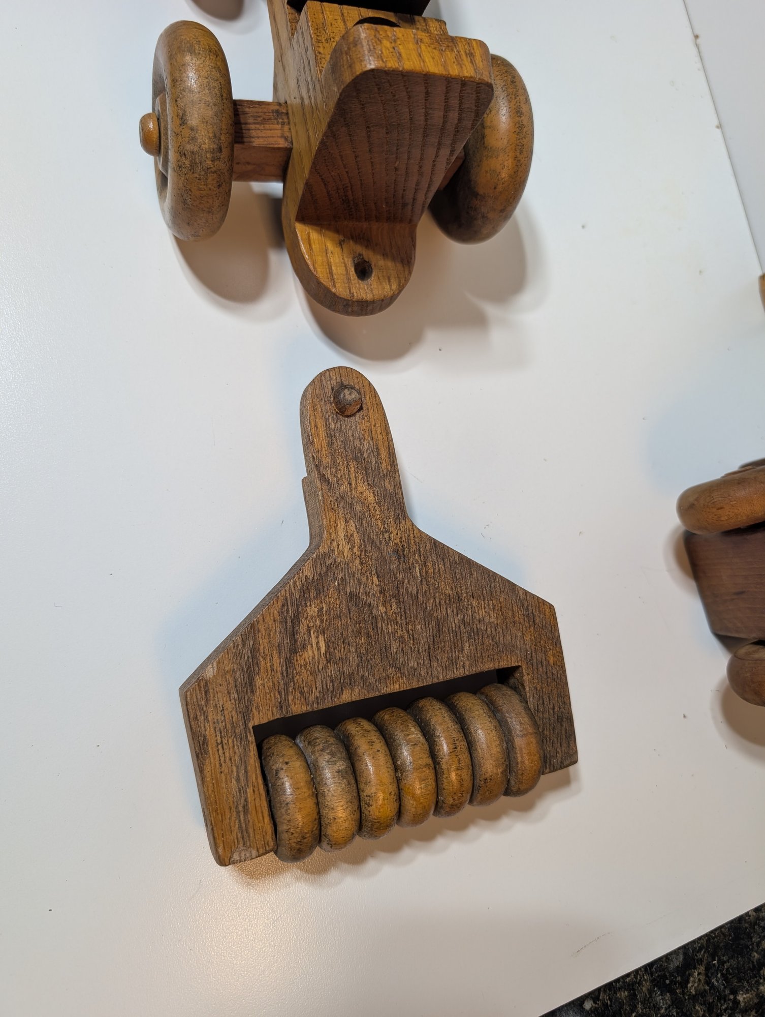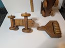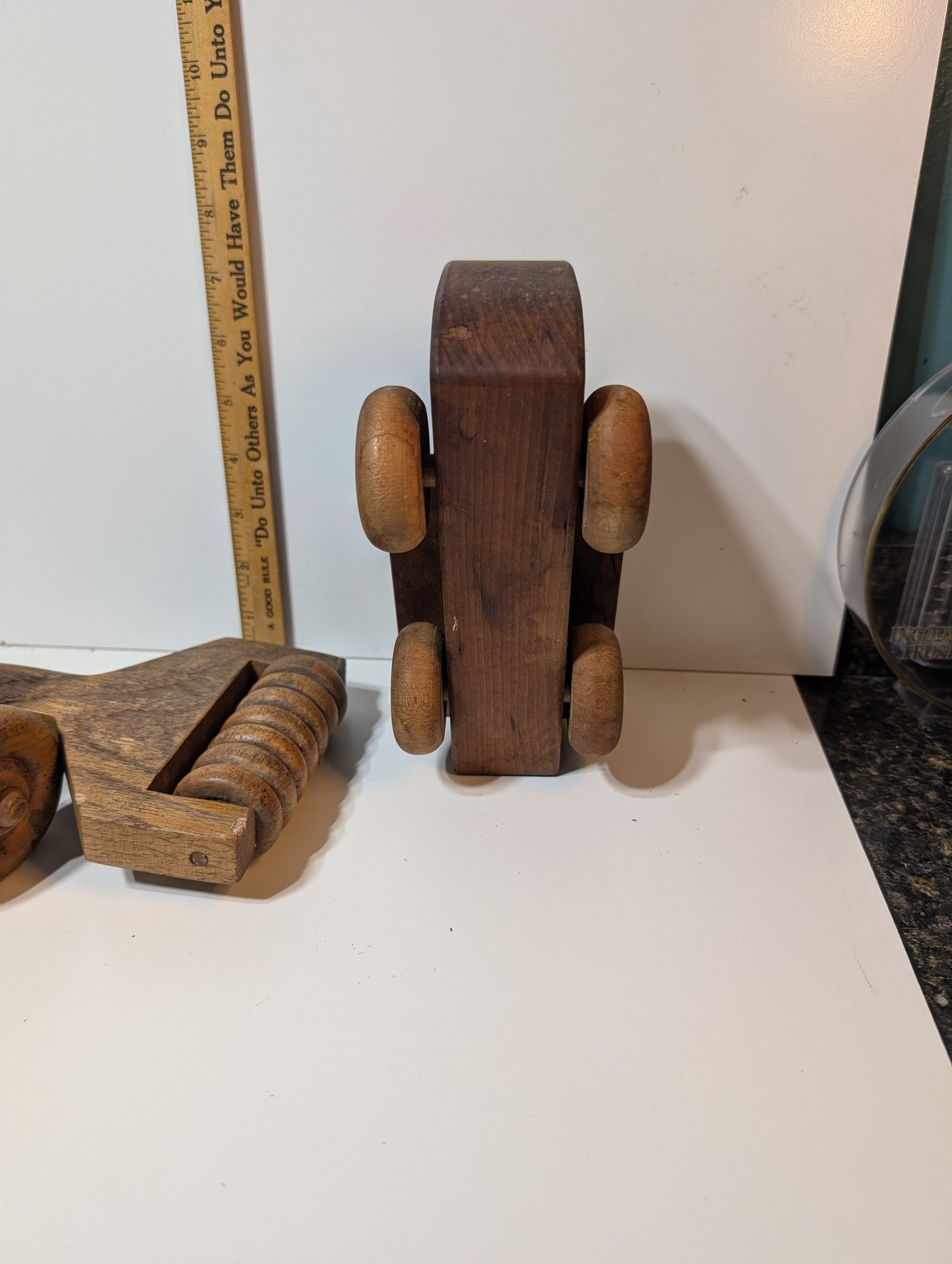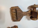 Handcrafted Vintage Folk Art Wooden Tractor With Roller And Flatbed Truck Set