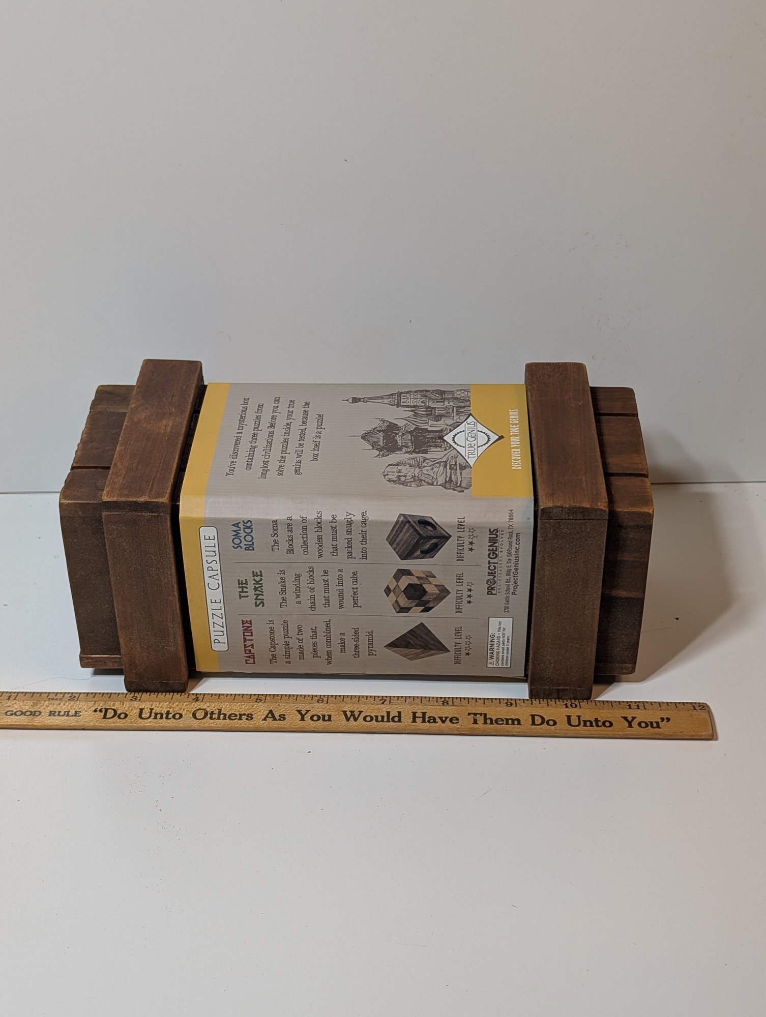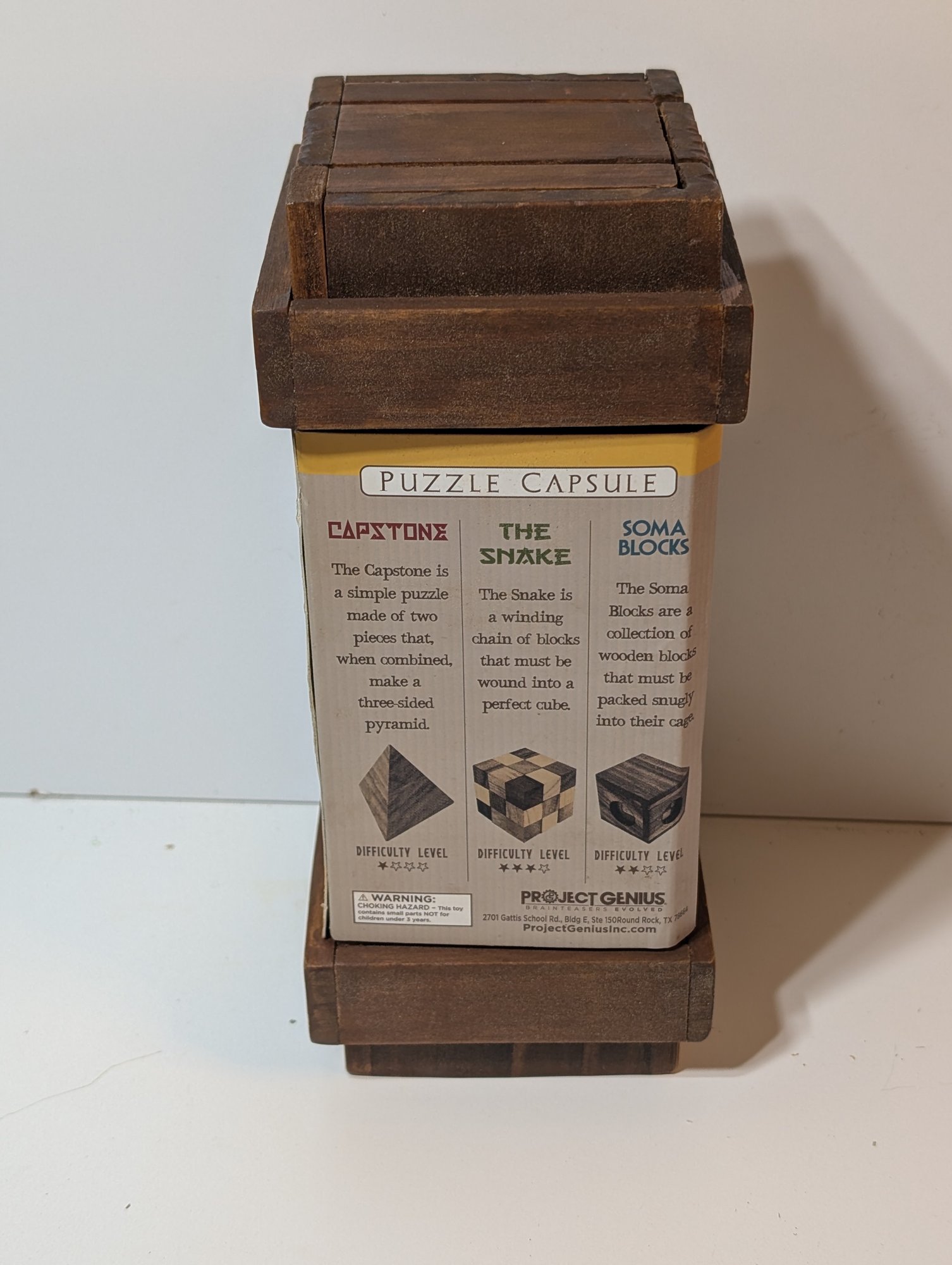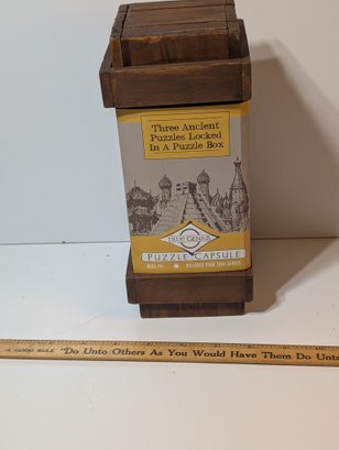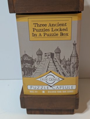 True Genius "Puzzle Capsule" Wooden Brainteaser Set With Three Ancient Puzzles