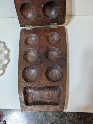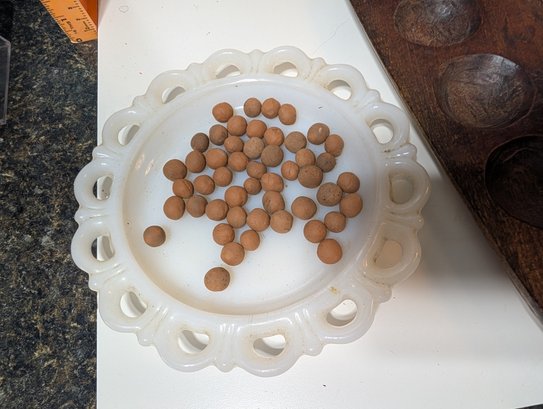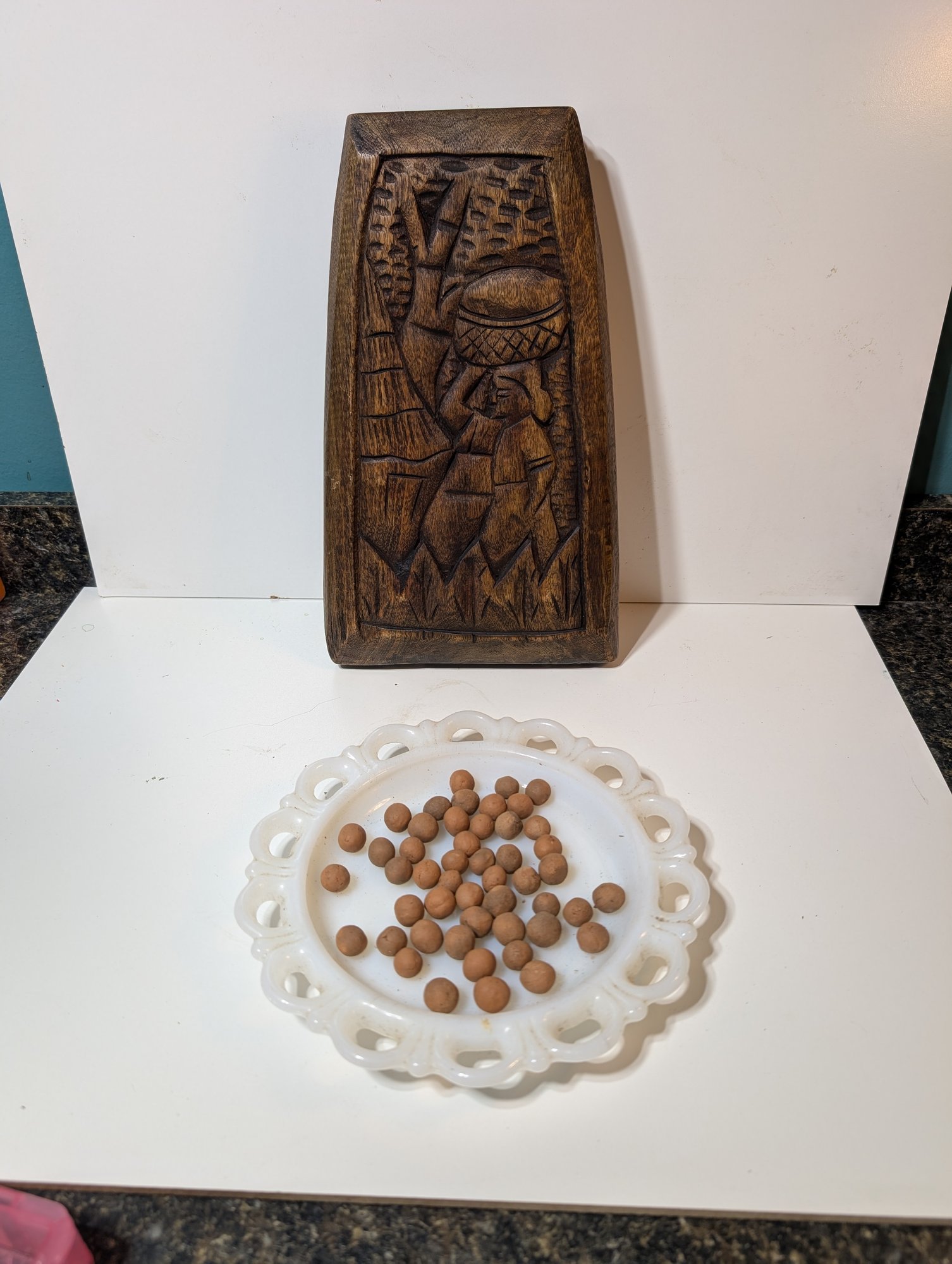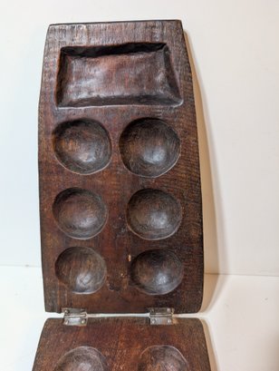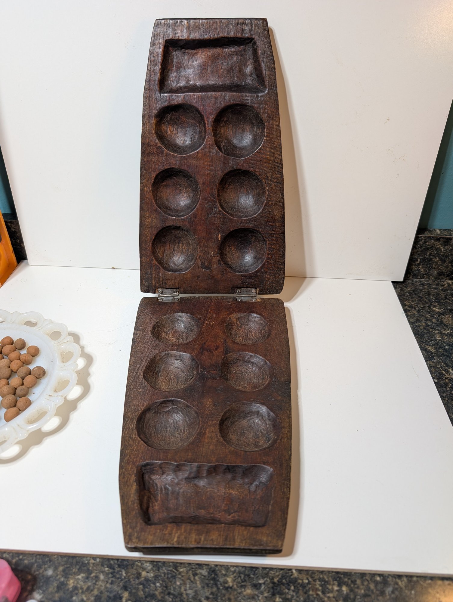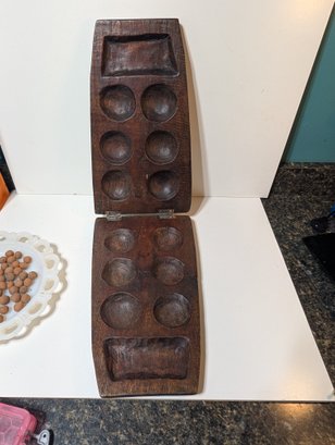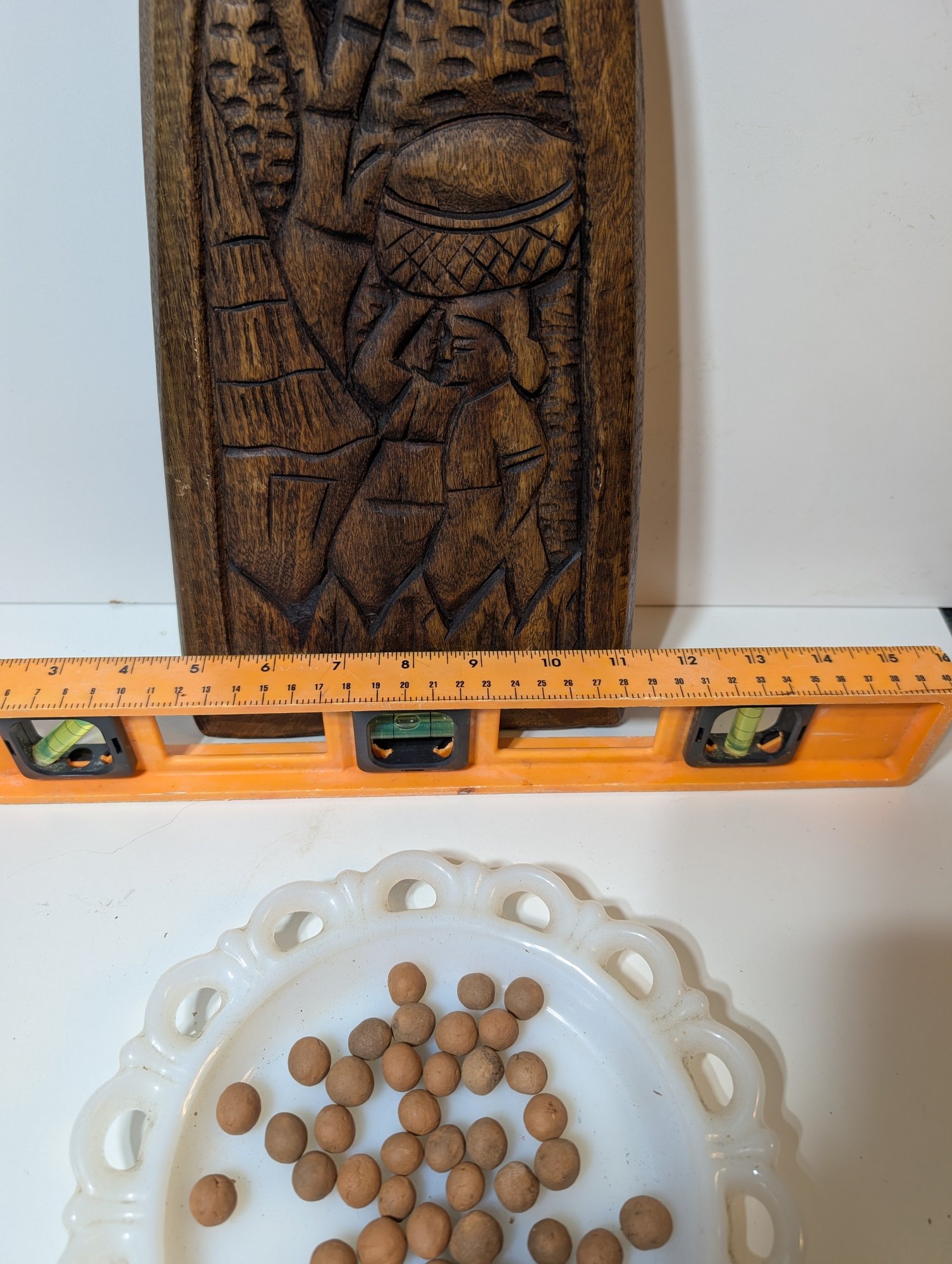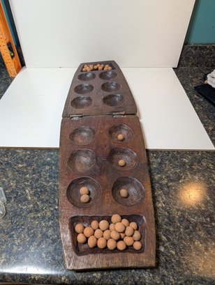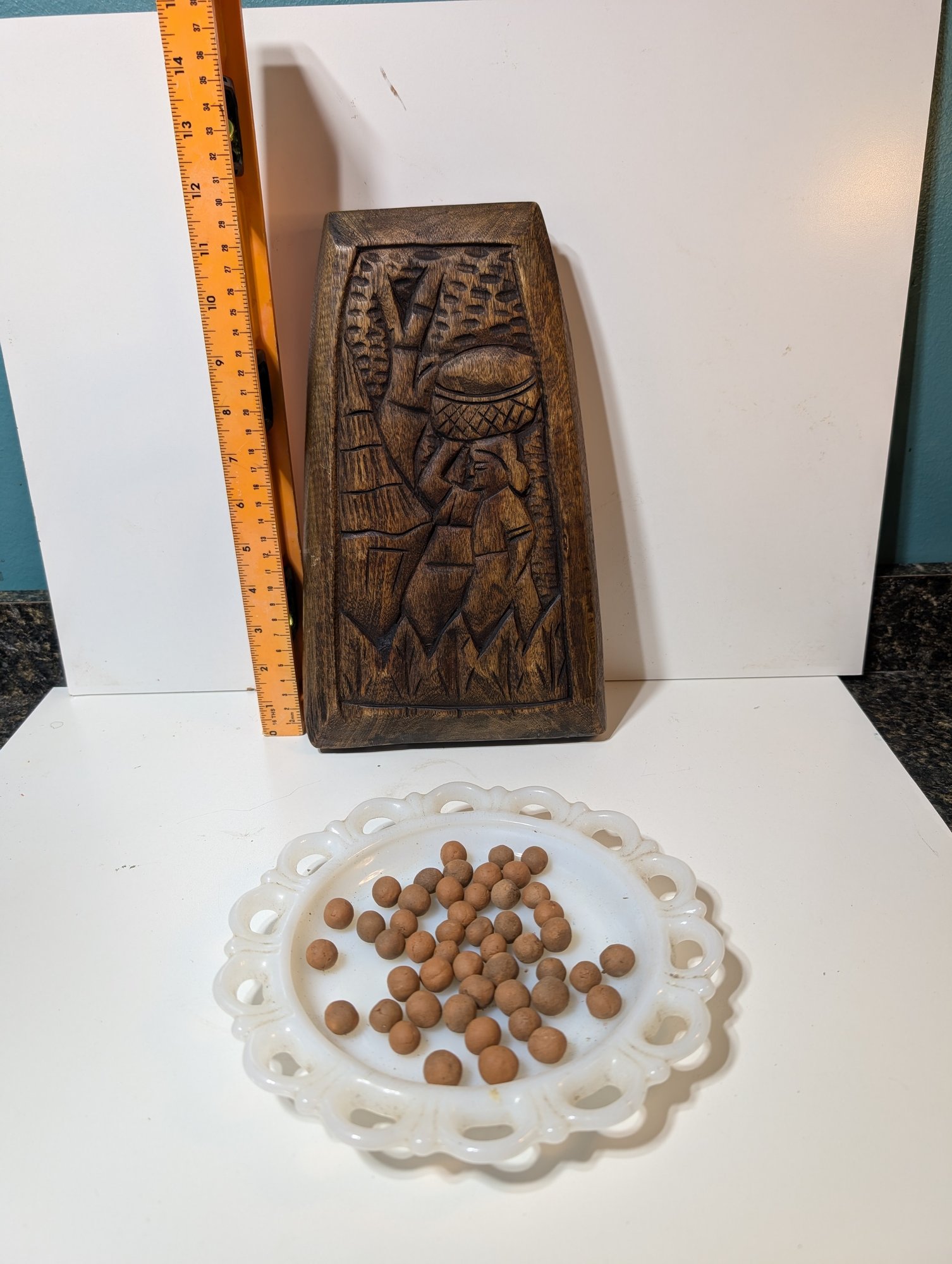 Vintage Hand-Carved African Mancala Game Board With Clay Playing Seeds - Folk Art