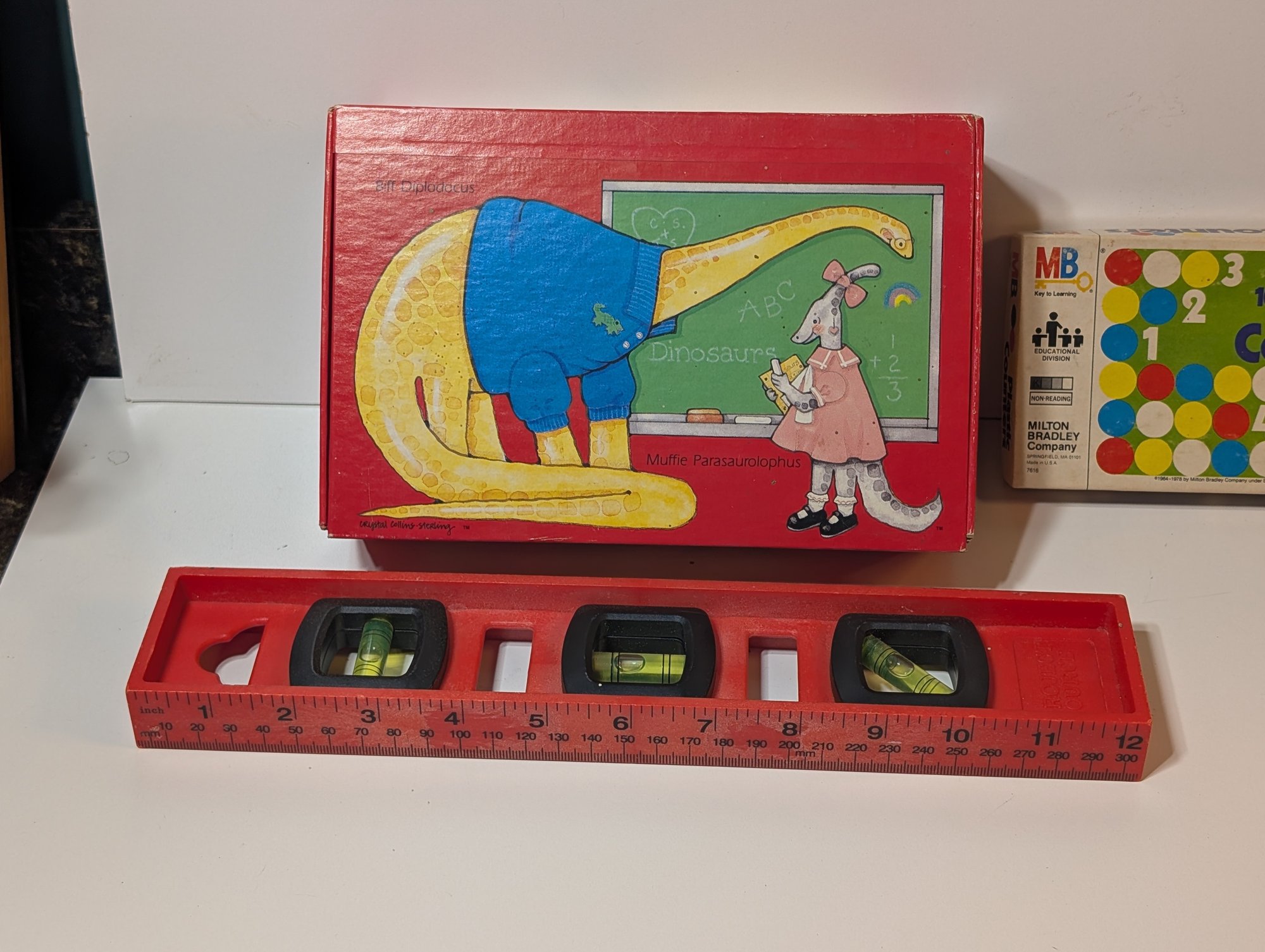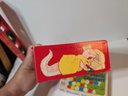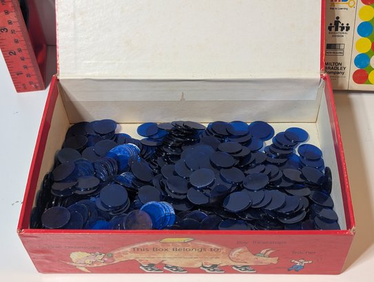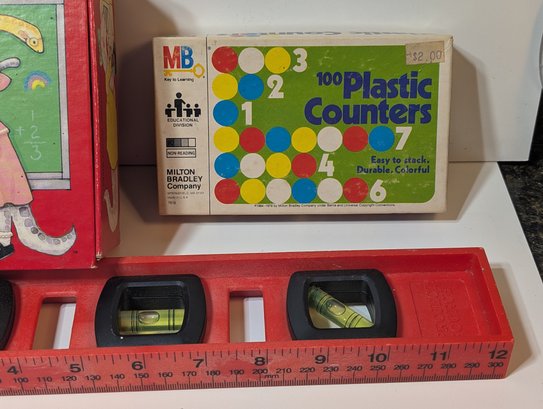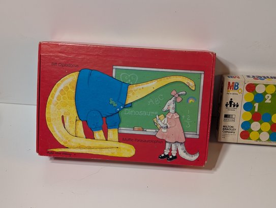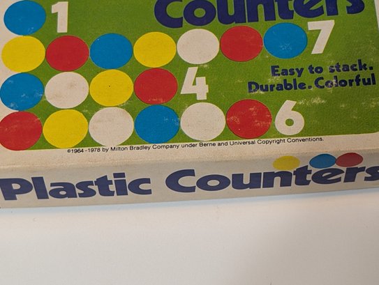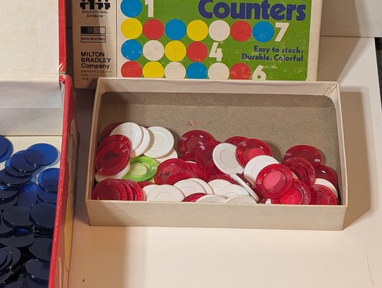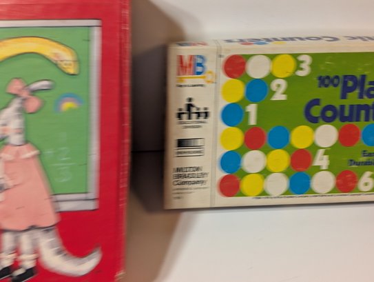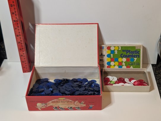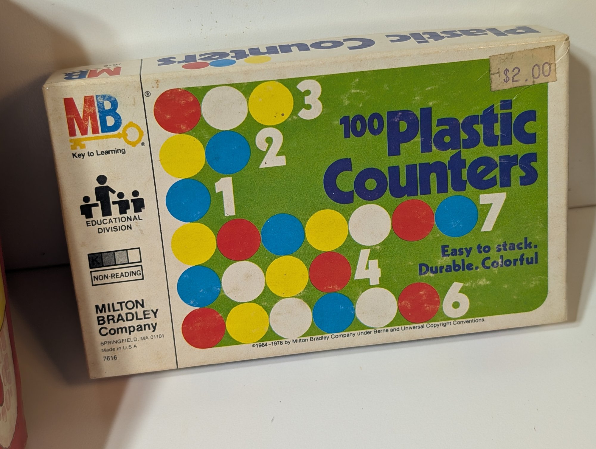 Vintage Milton Bradley 100 Plastic Counters & Crystal Collins-Sterling DinoMath Box Colectibles