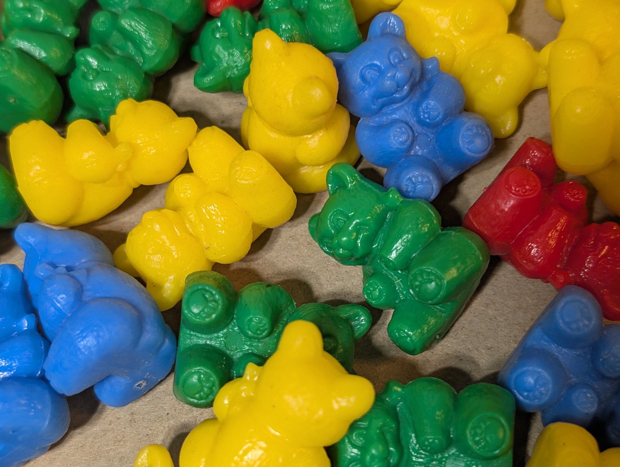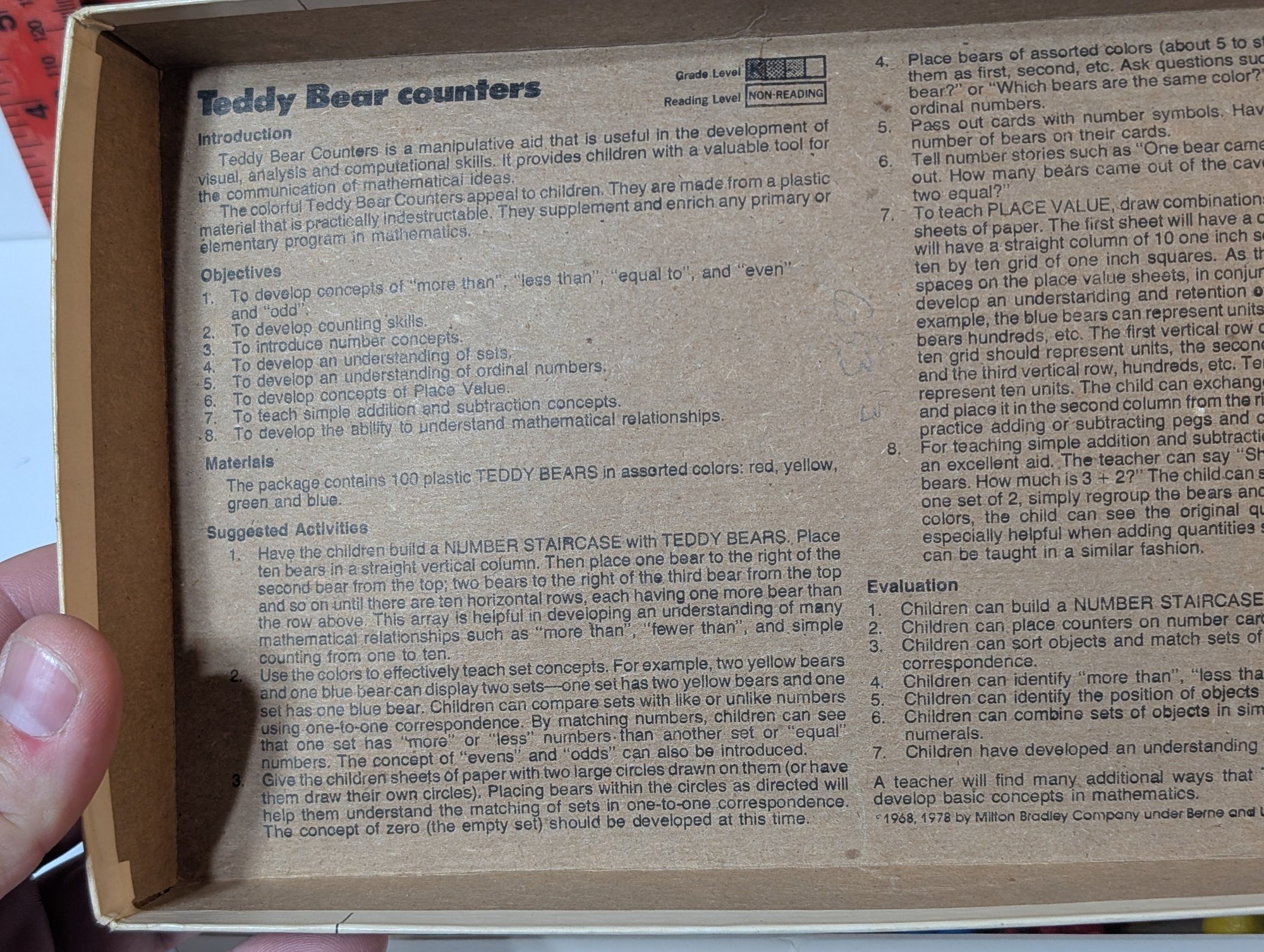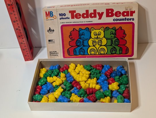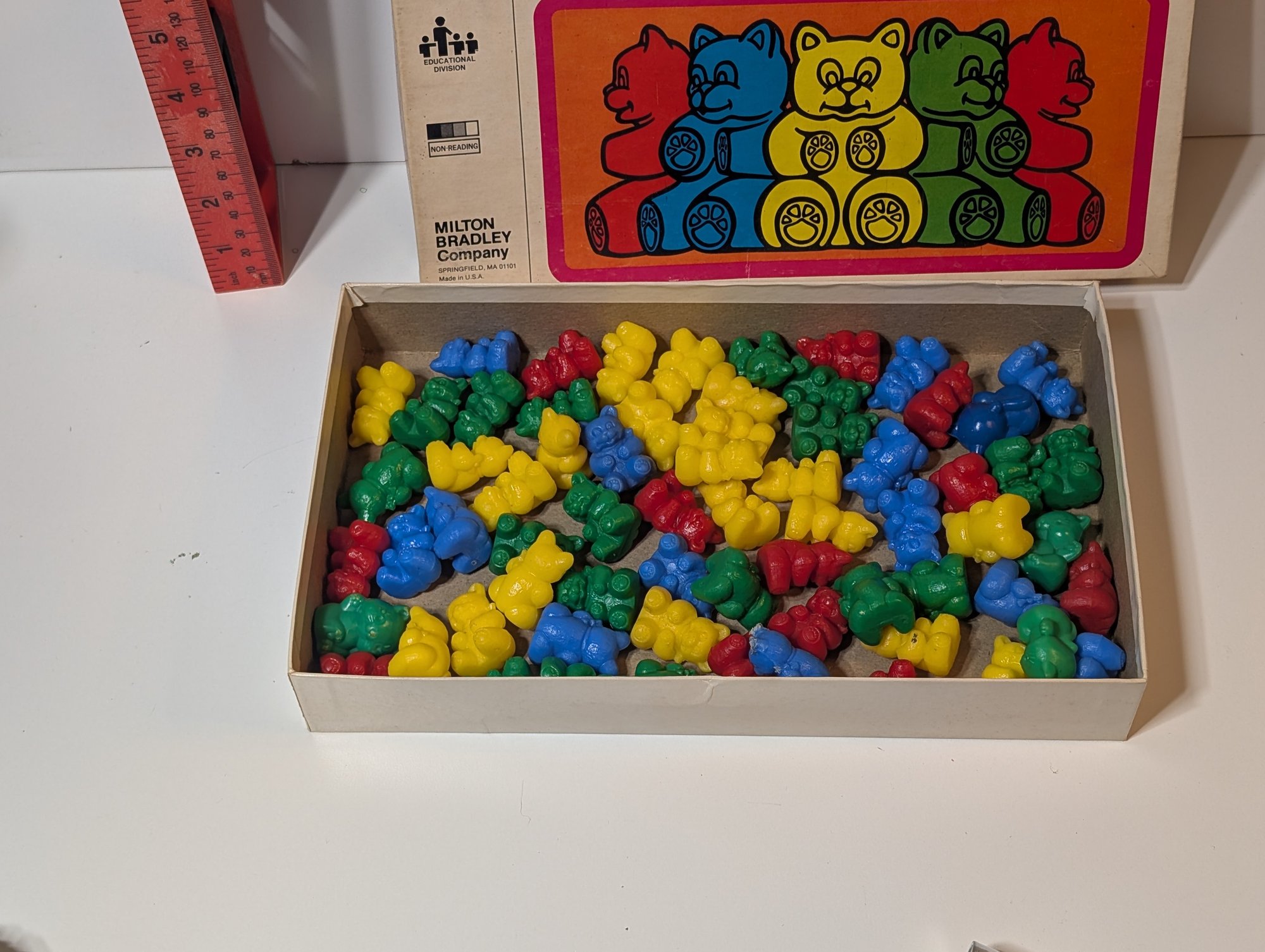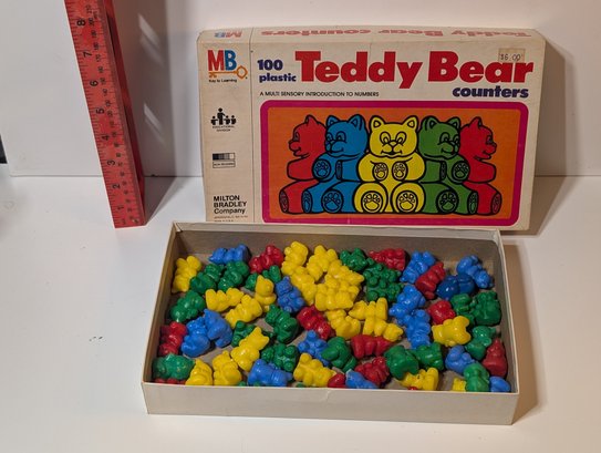Vintage Milton Bradley Teddy Bear Counters Set 100 Plastic Math 1978 Not Complete