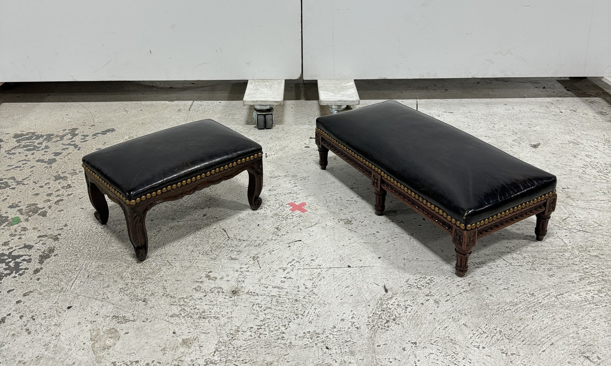 A Pair Of Vintage Leather Footrests With Nail Head Detailing.