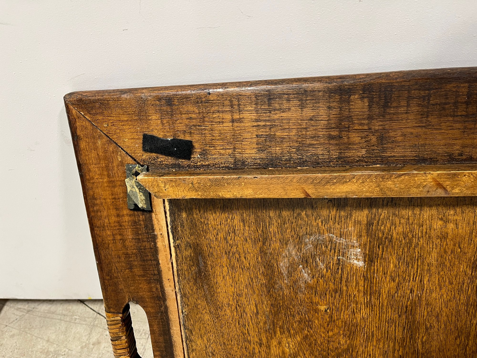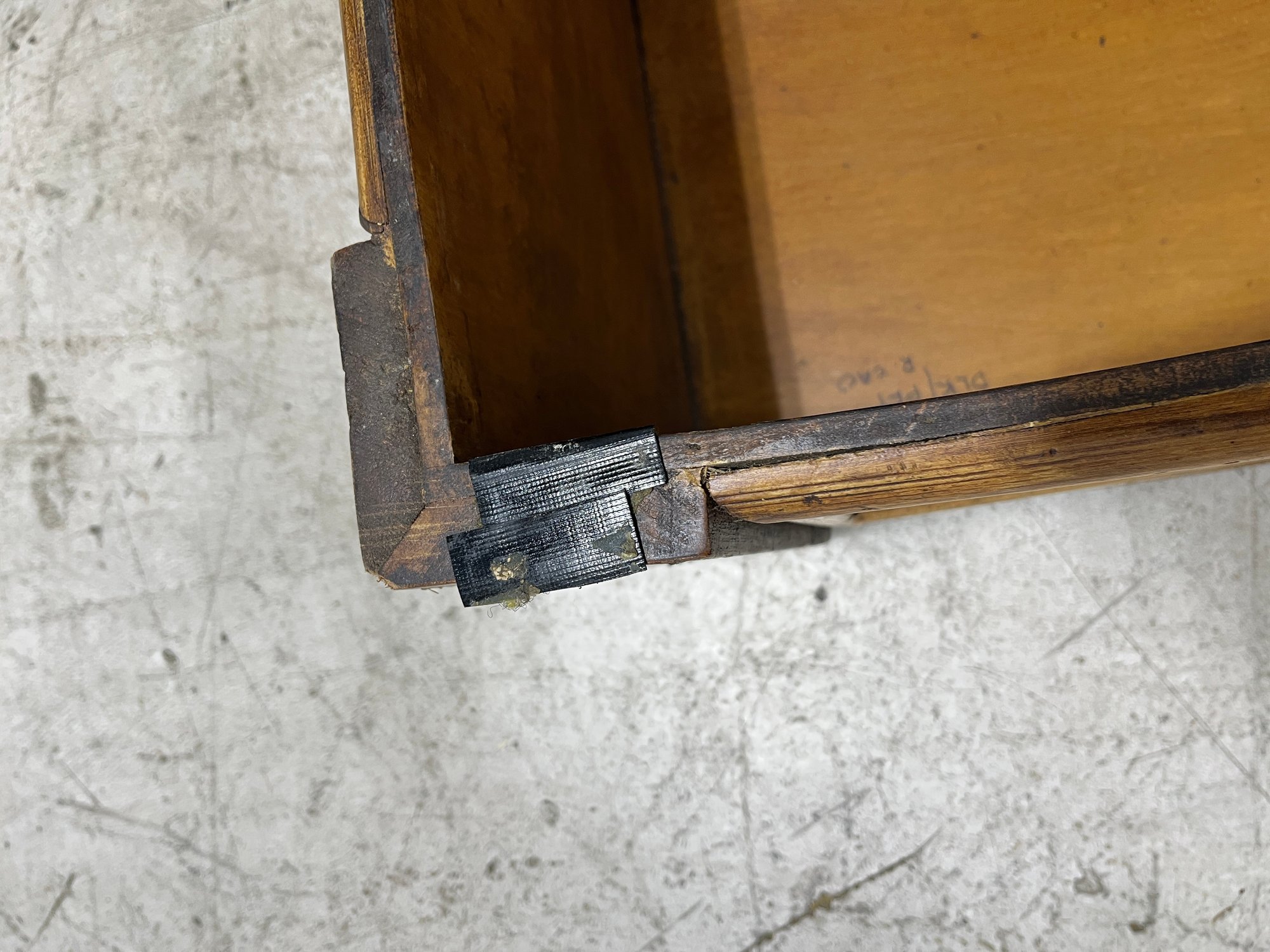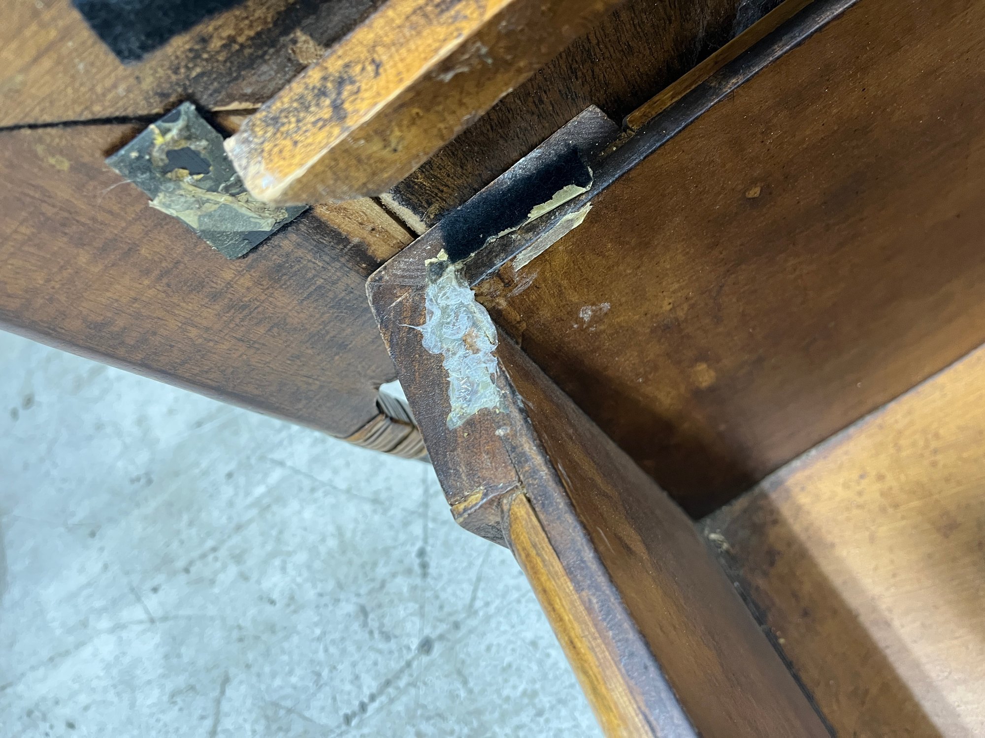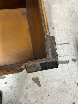 Please note, there are Velcro strips attacked to all corners of both the trunk and lid. The inside portion of the wooden lip on the lid is slightly lifting off.