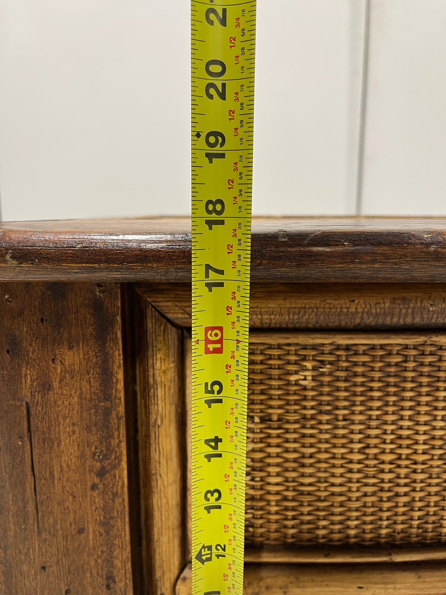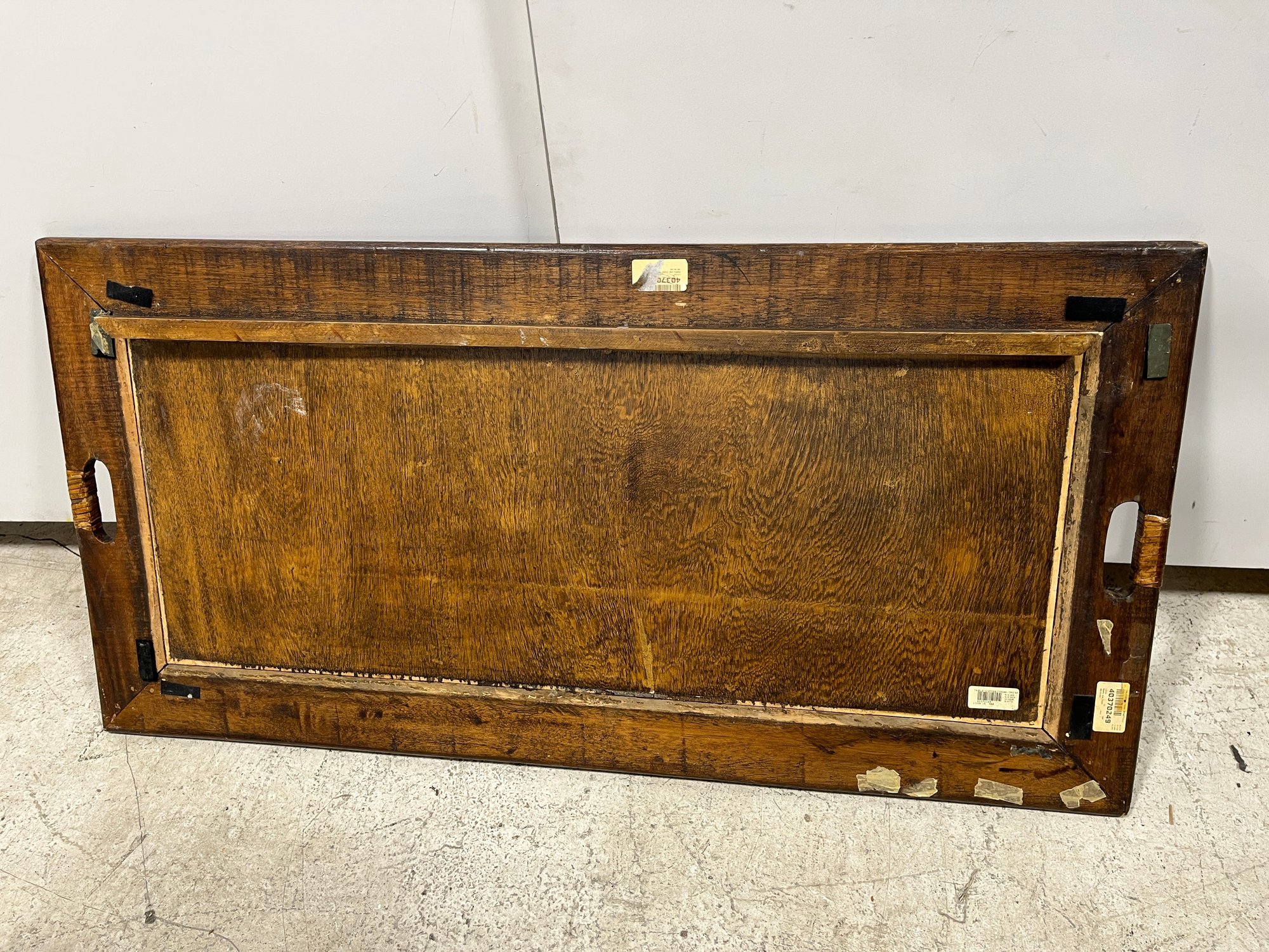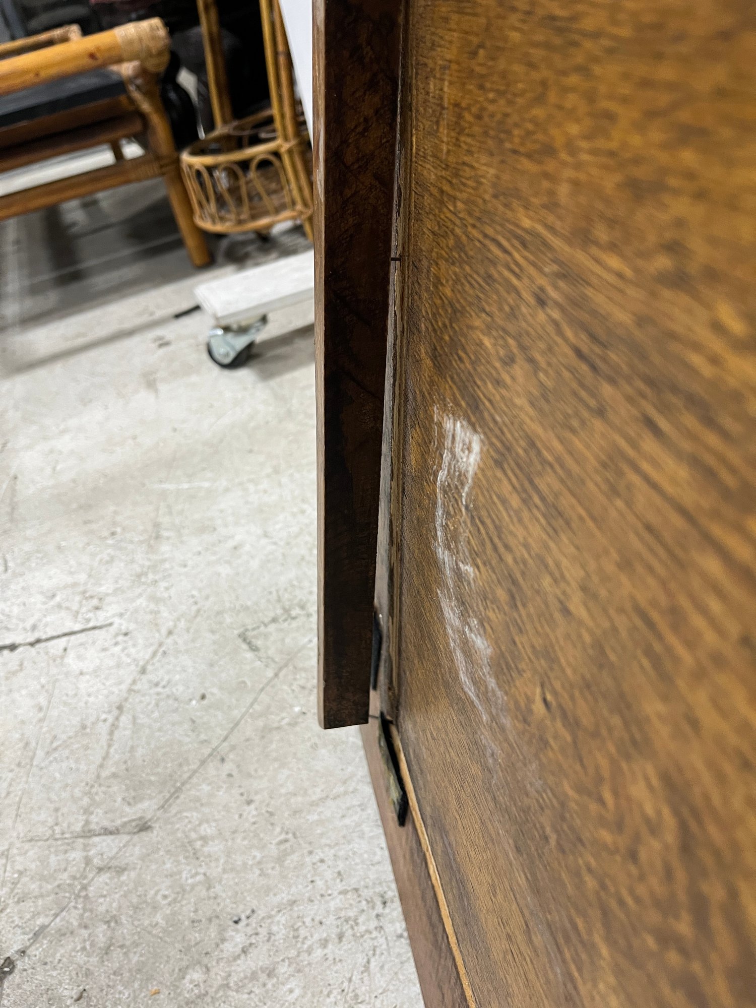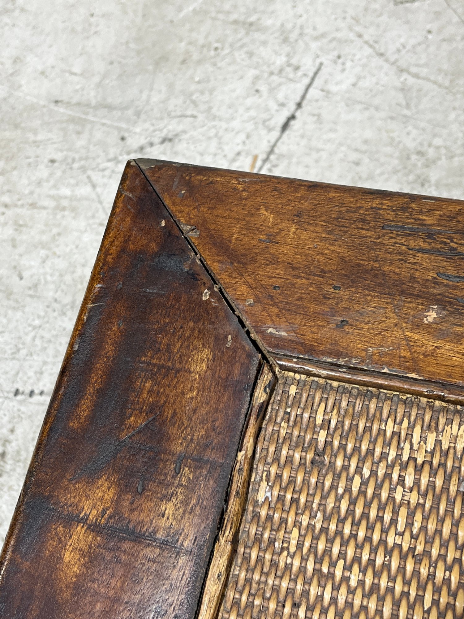 Please note, there are Velcro strips attacked to all corners of both the trunk and lid. The inside portion of the wooden lip on the lid is slightly lifting off.