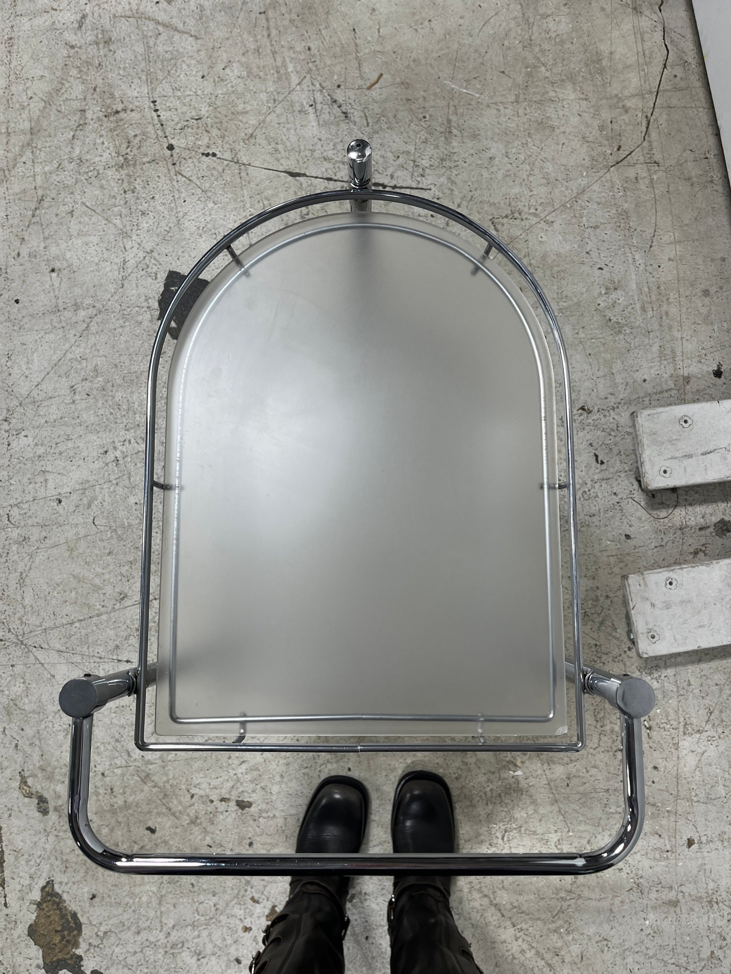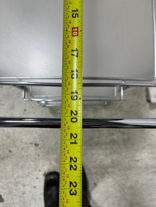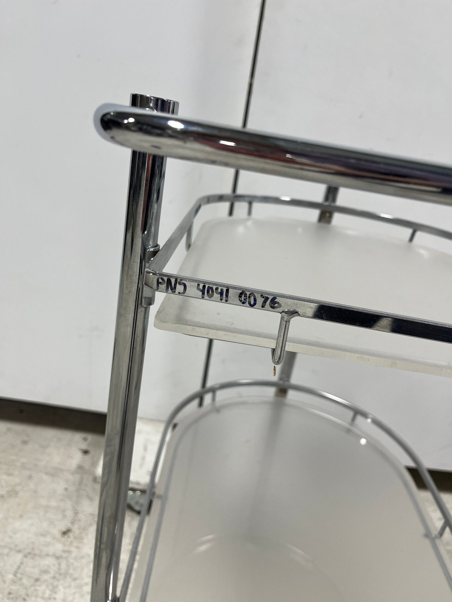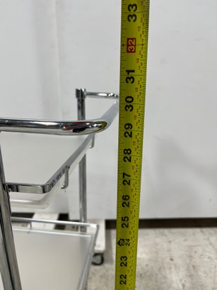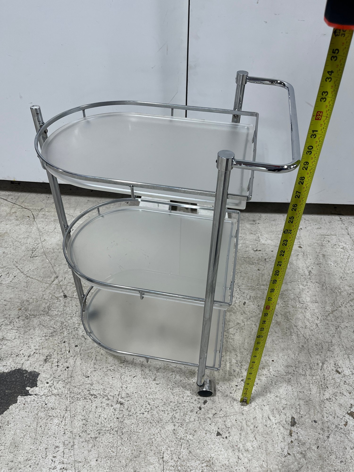 Elevate your hosting game with this sleek, Mid-Century inspired serving cart. Defined by its minimalist silhouette and industrial materials, this three-tier trolley seamlessly blends 1970s Italian modernism with contemporary utility. Each tier features a frosted plexiglass pane.