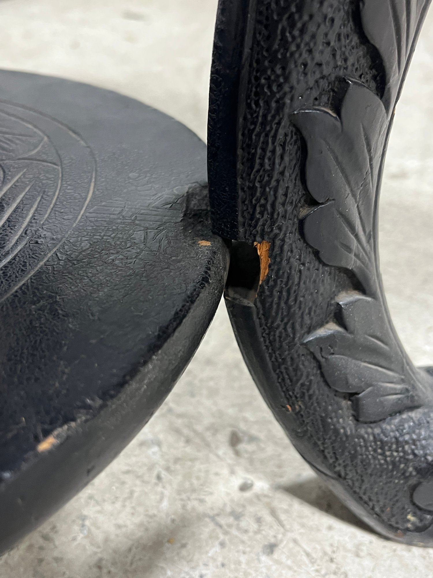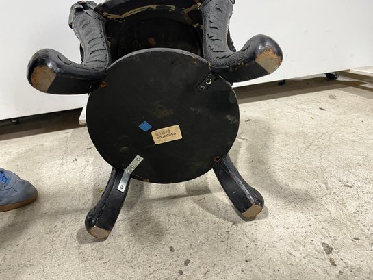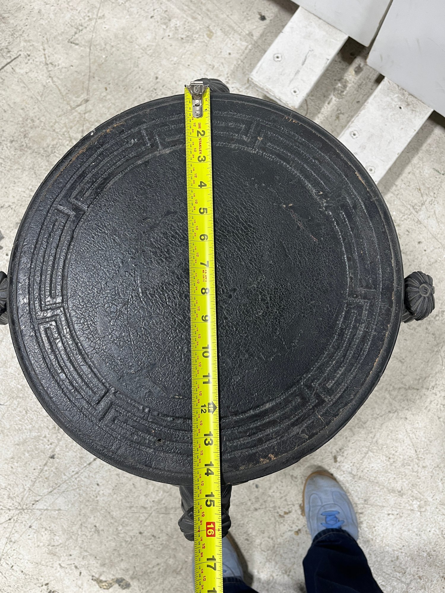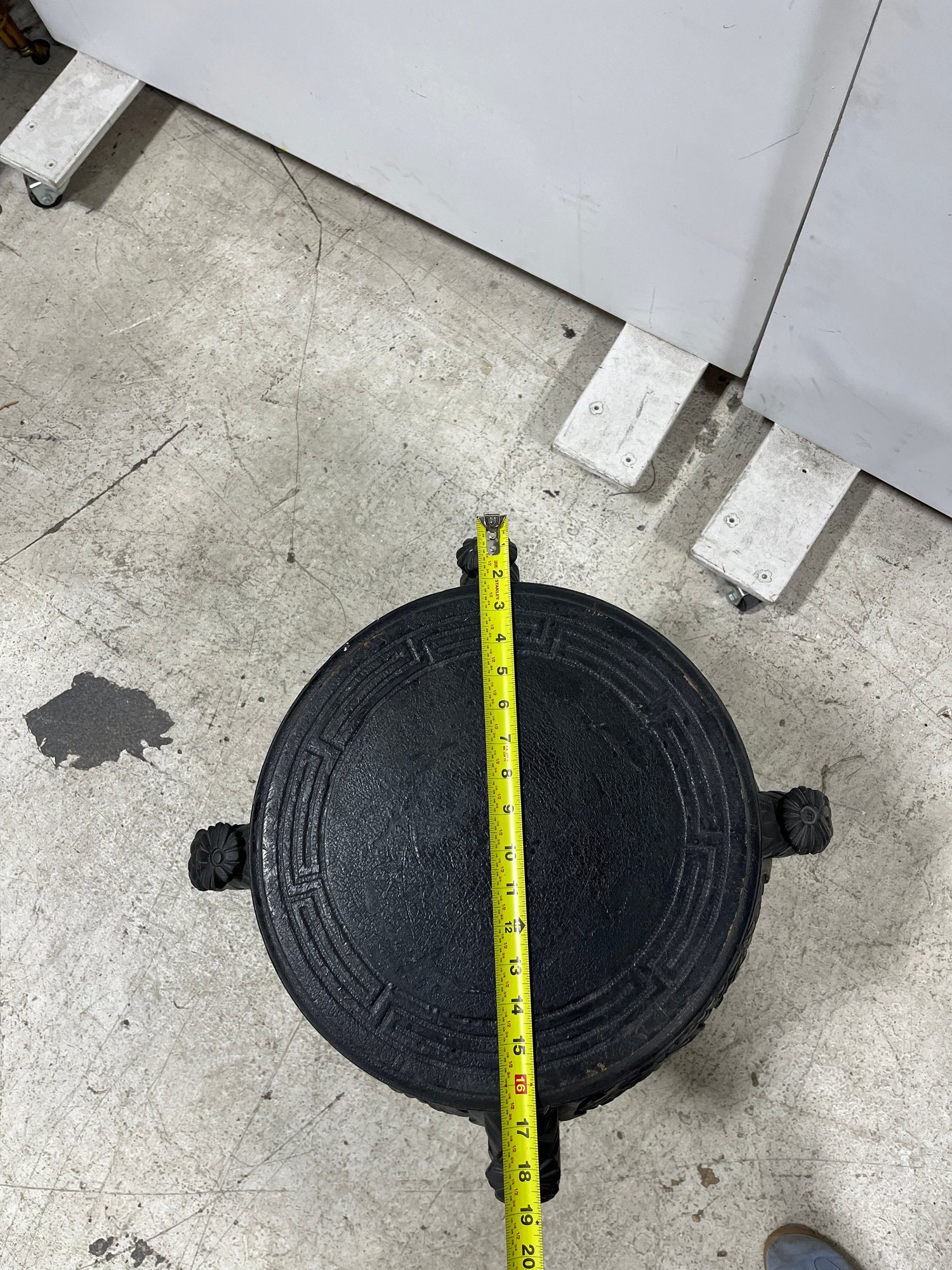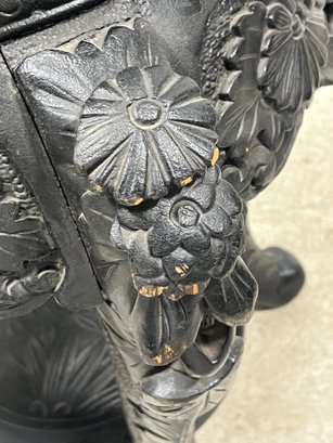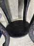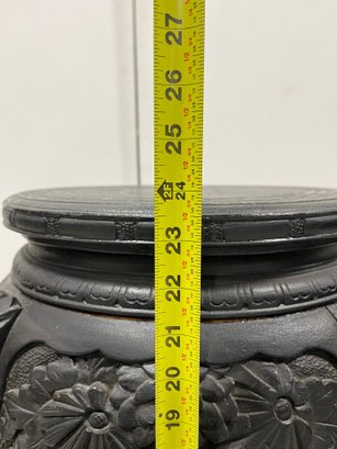 This antique-style Chinese plant stand is a striking example of ebonized wood craftsmanship, likely dating from the late 19th to early 20th century. This type of furniture, often called a jardinière stand or tabouret, was traditionally used to display fine porcelain vases or decorative plants.
