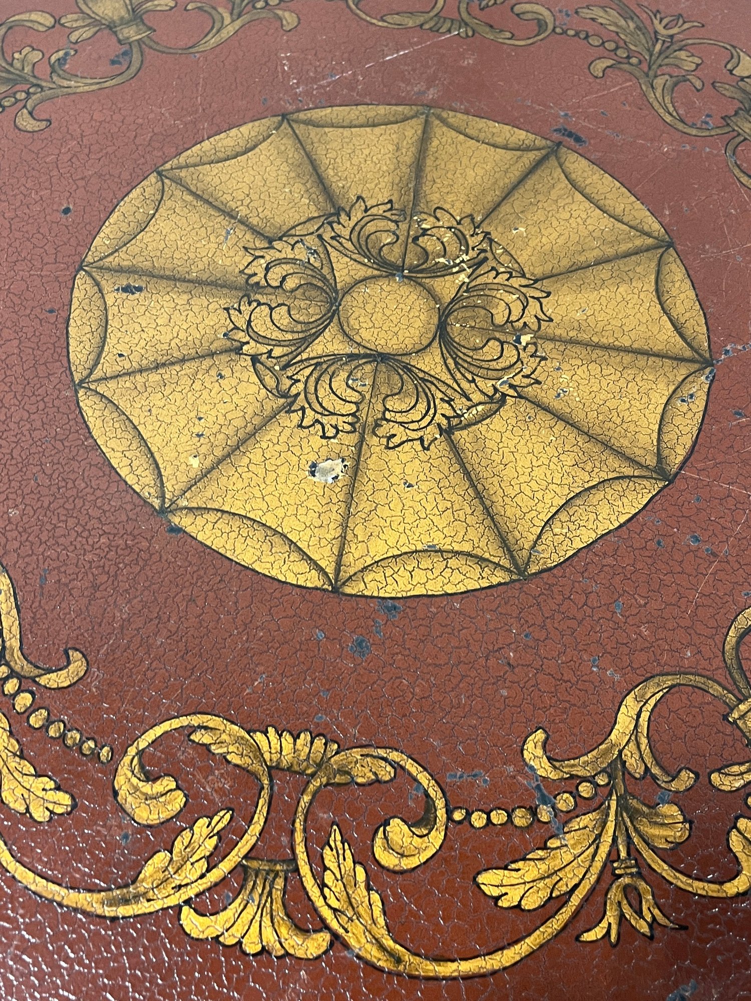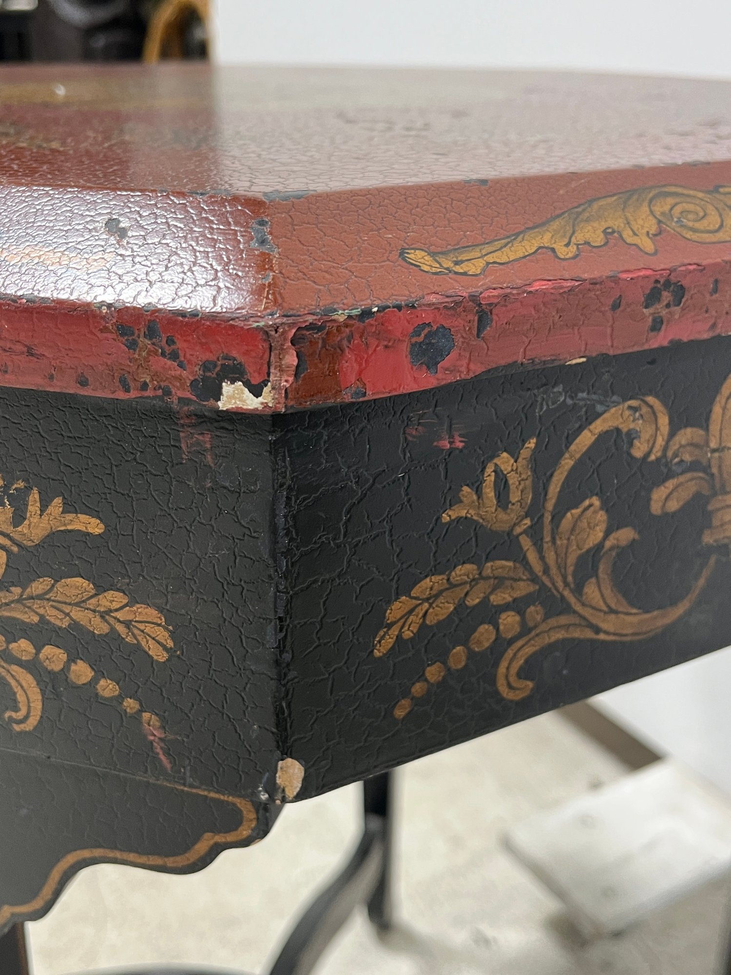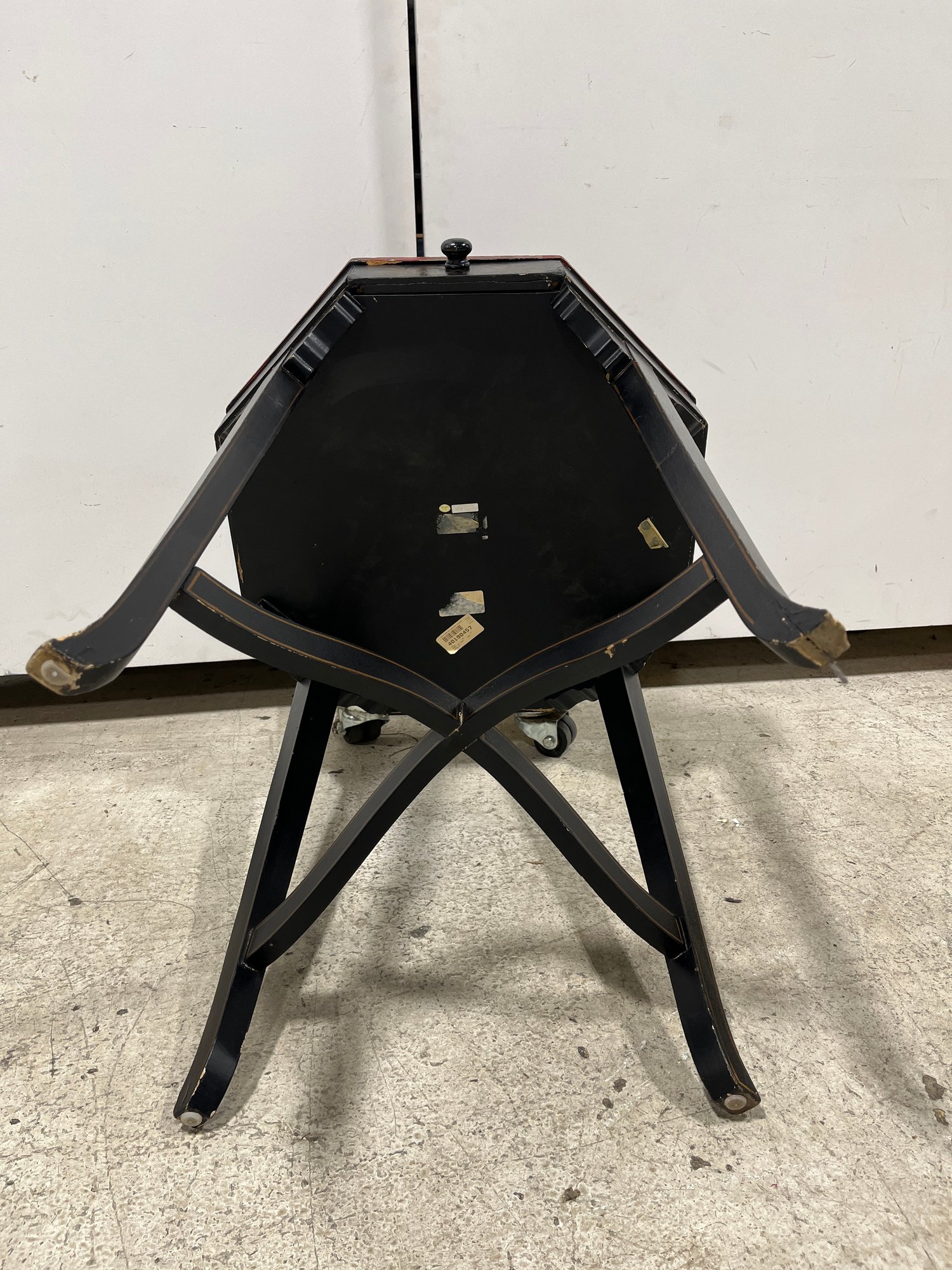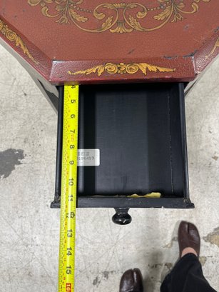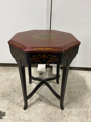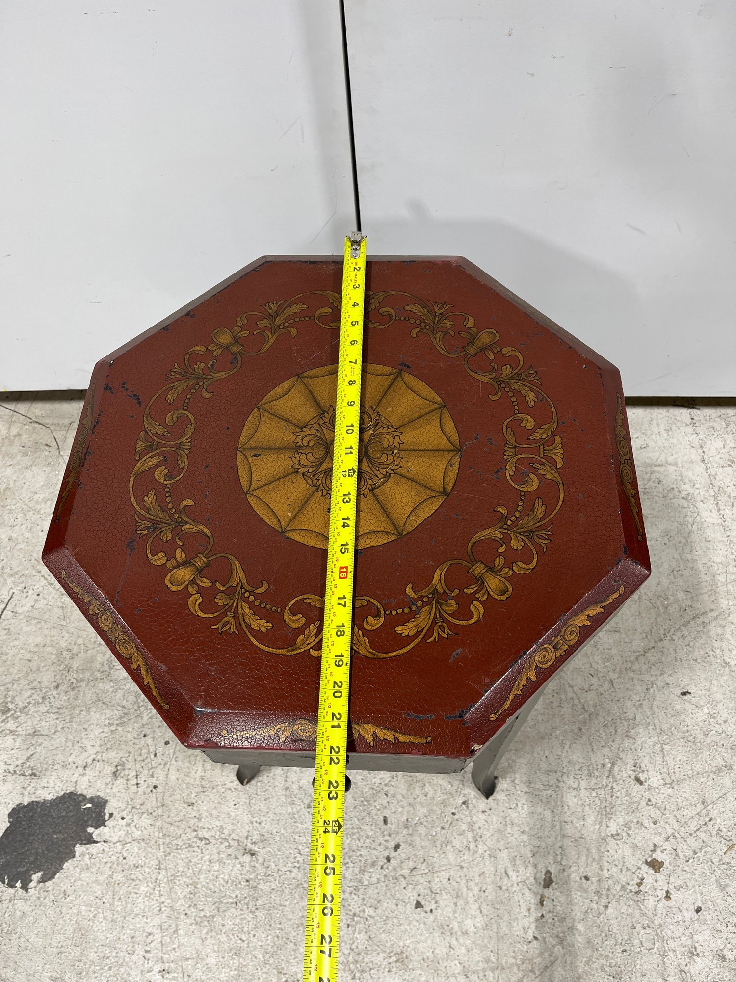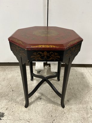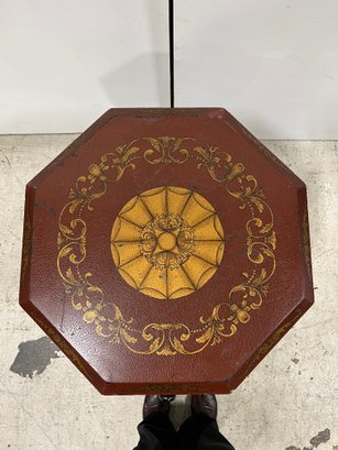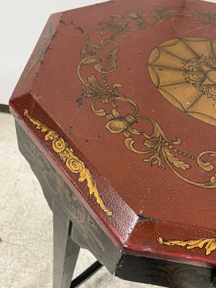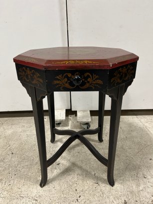 A sophisticated 19th-century-style accent table featuring a distinctive octagonal silhouette. This piece blends European form with Eastern-inspired artistry, making it a striking addition to any traditional or eclectic interior. This piece also features a center drawer.