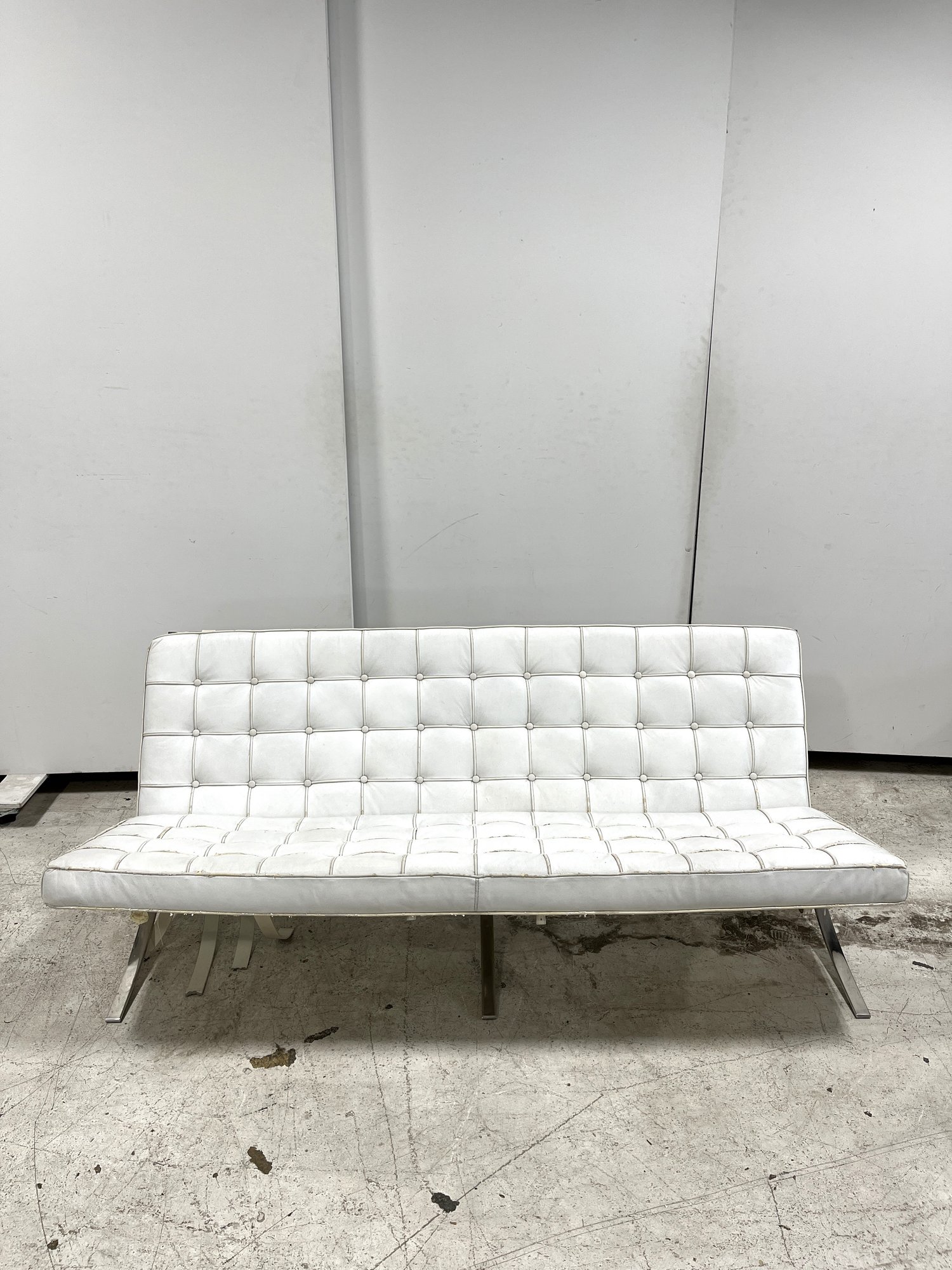 Please note - the cushions on this Barcelona sofa replica are removable. The snaps pictured allow the cushions to be secured onto the main frame.