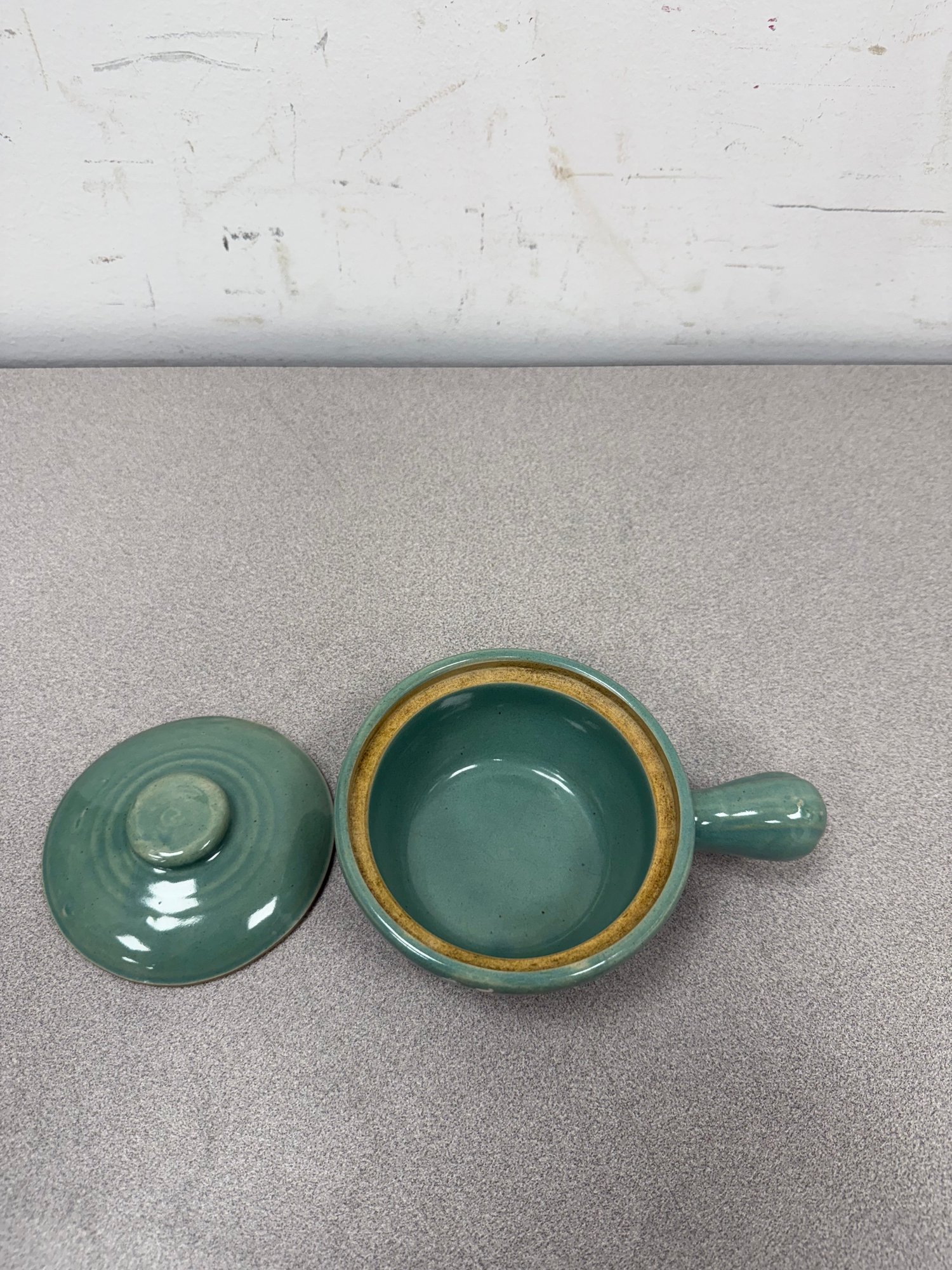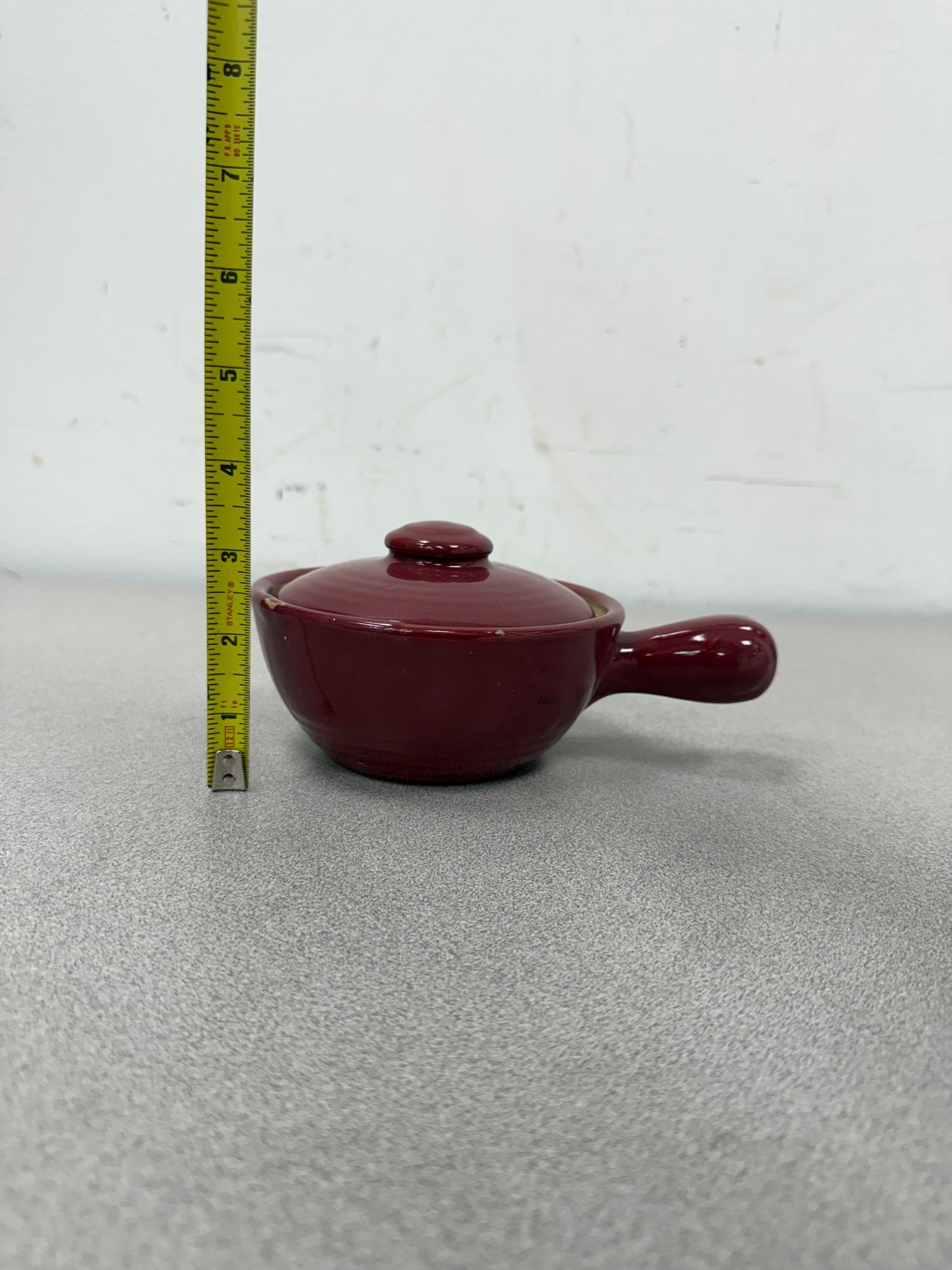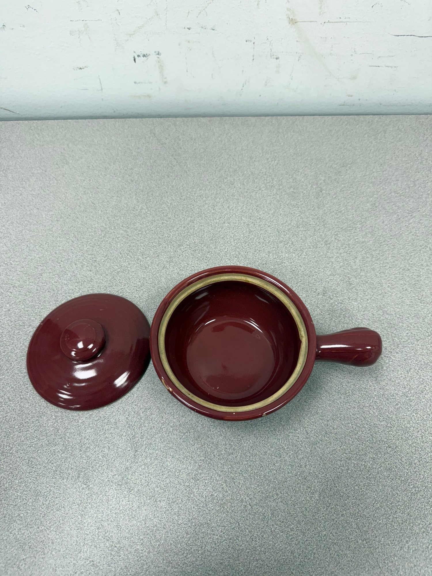 A versatile collection of vintage ceramic serving bowls and lidded French onion soup dishes, perfect for adding a touch of rustic charm to any kitchen or dining setting.