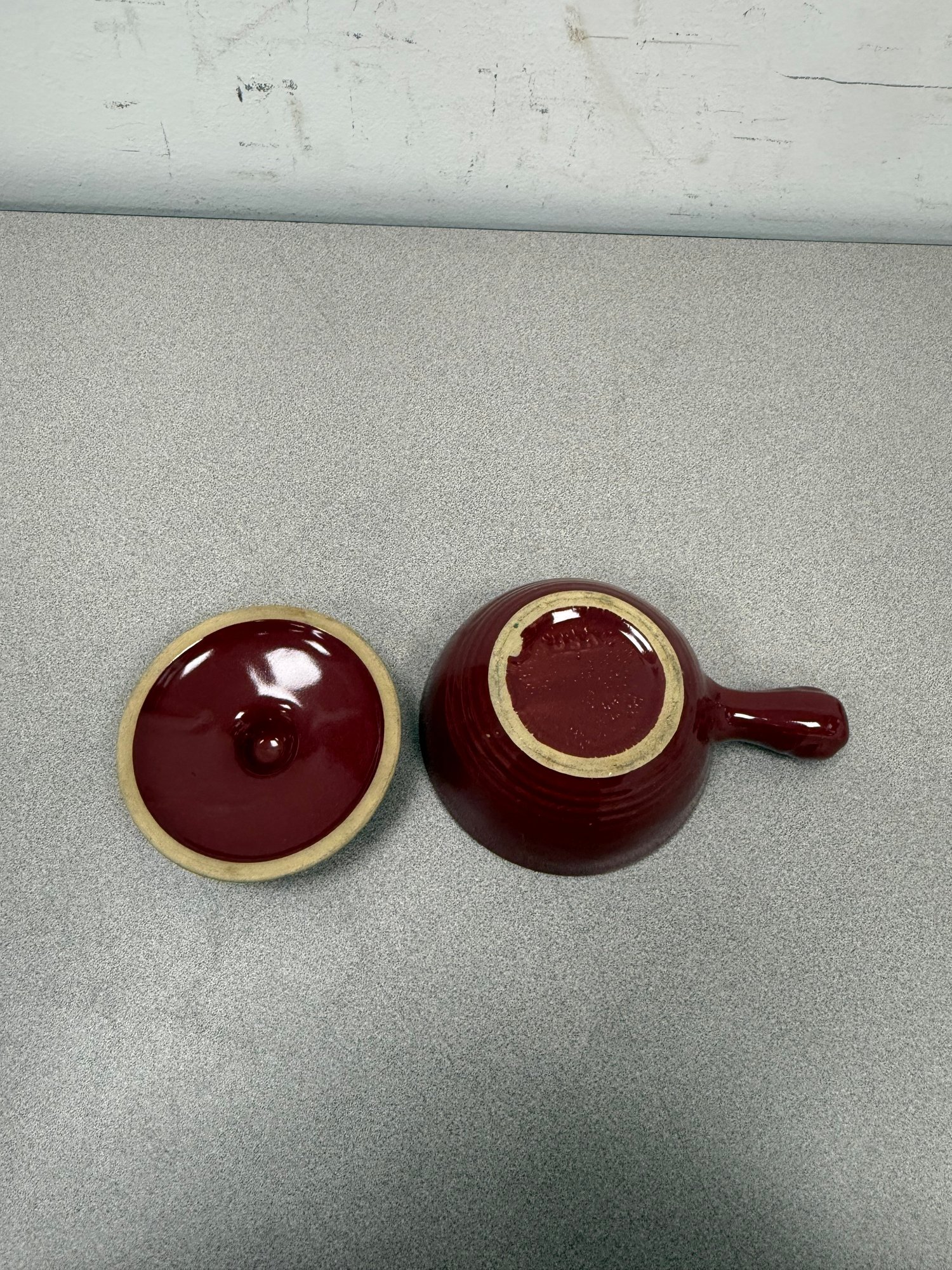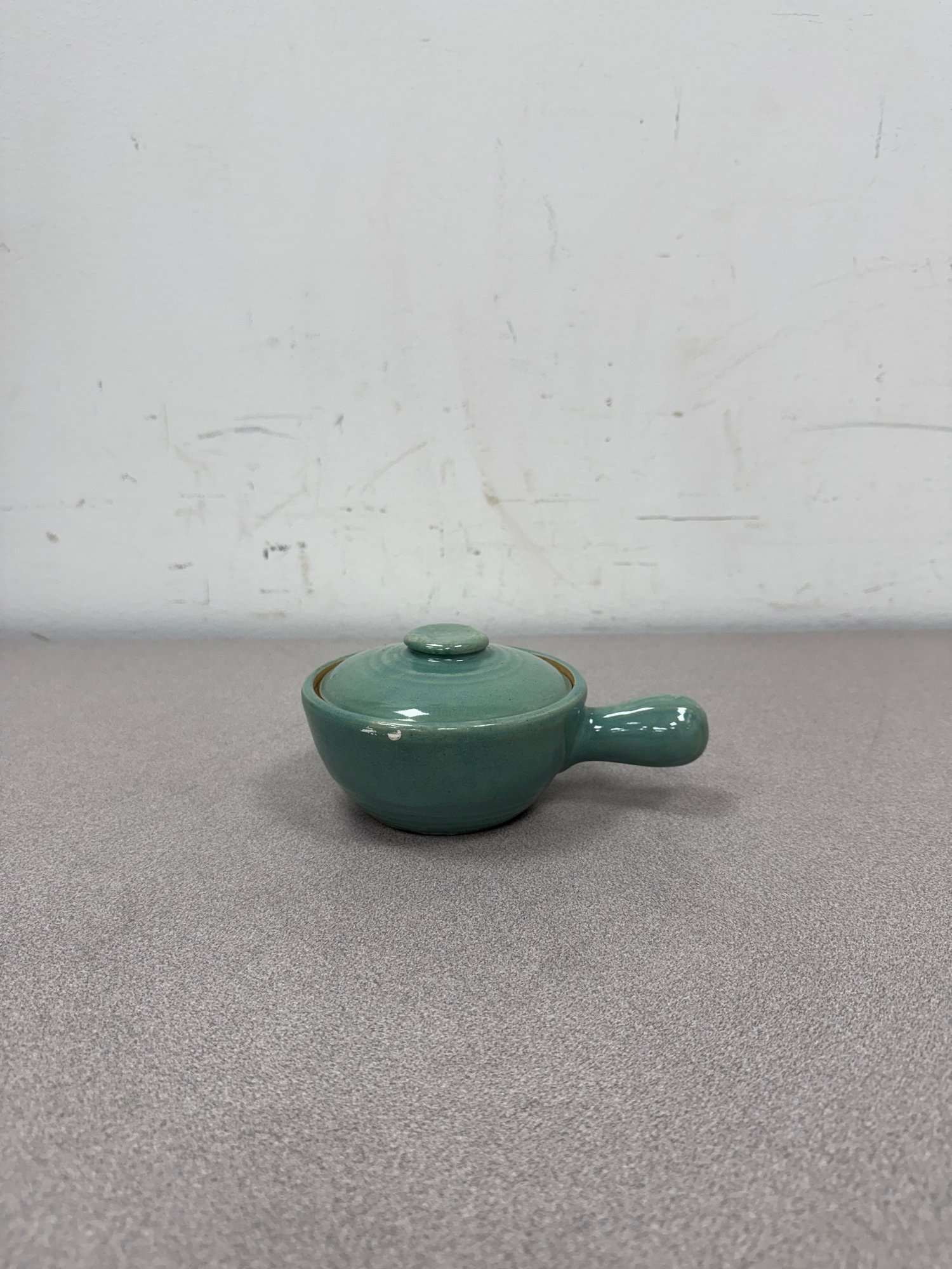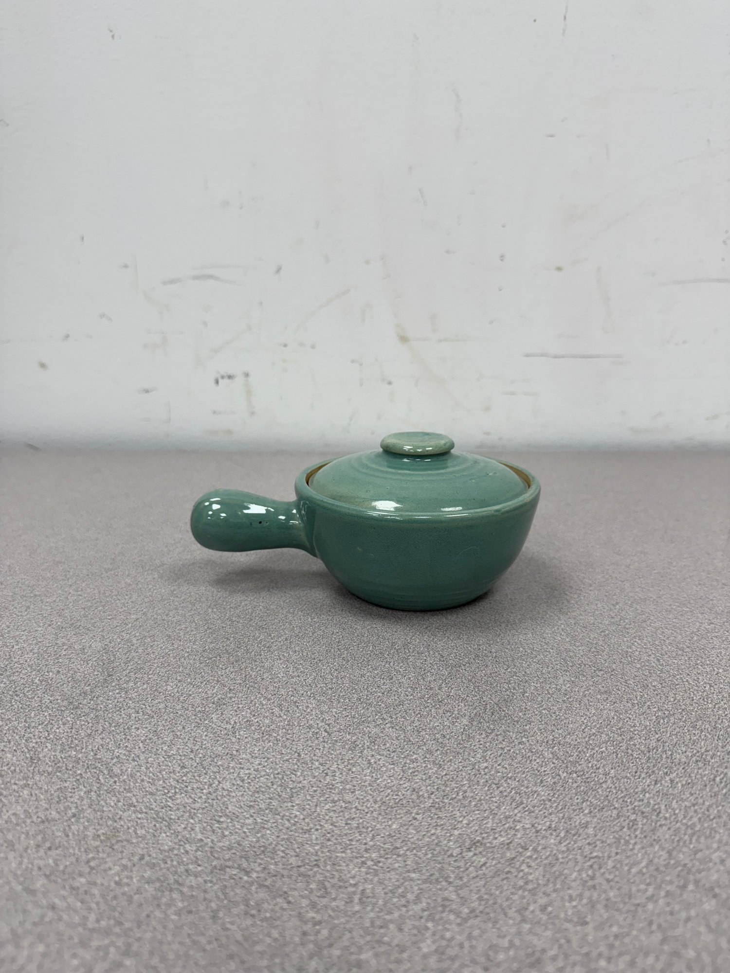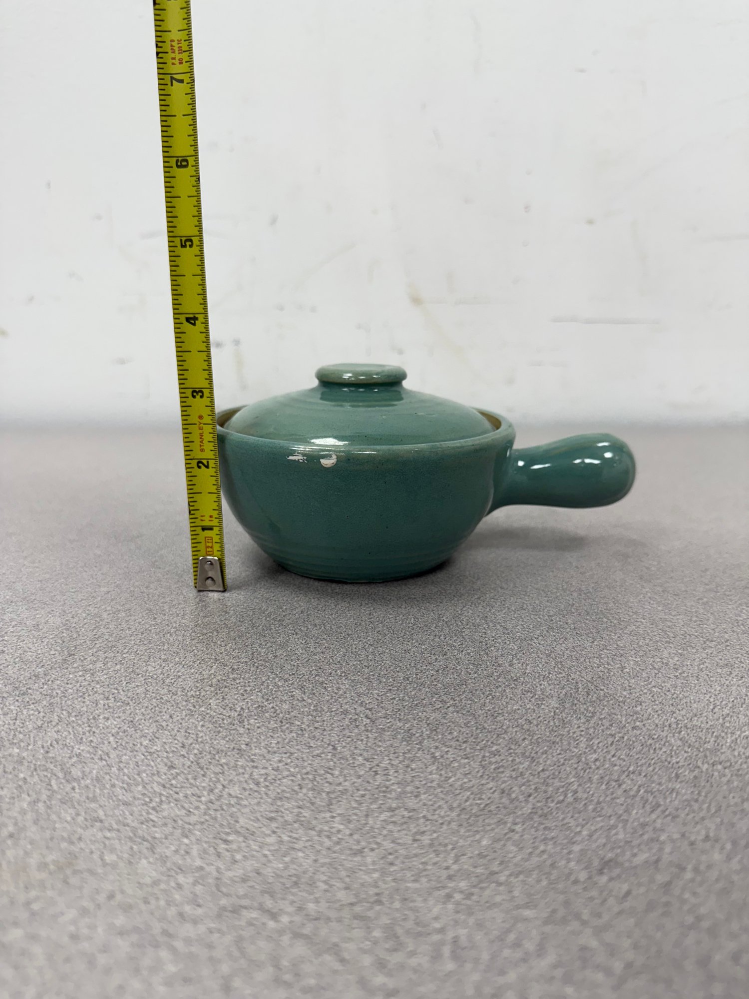 A versatile collection of vintage ceramic serving bowls and lidded French onion soup dishes, perfect for adding a touch of rustic charm to any kitchen or dining setting.