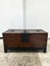 Please note - the trunk is made to only open halfway (pictured), as the door is attached and swings on the middle hinge. The other half of the opening is bolted or secured in place. This trunk can be rolled around as it is on steel ball wheels.