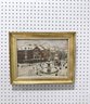 Framed Impressionist Painting Depicting Snowy Town Square (signed)