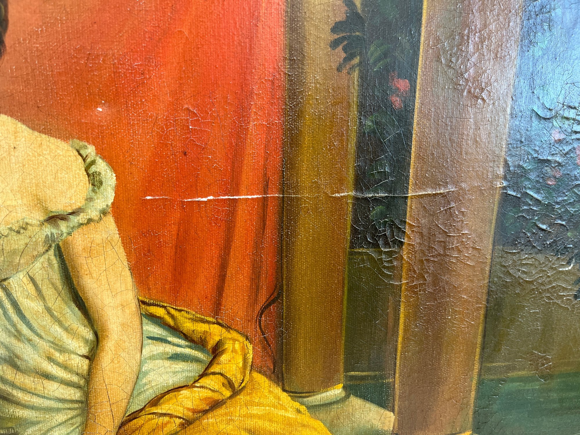 Please note, there is some slight chipping of paint in center of painting.