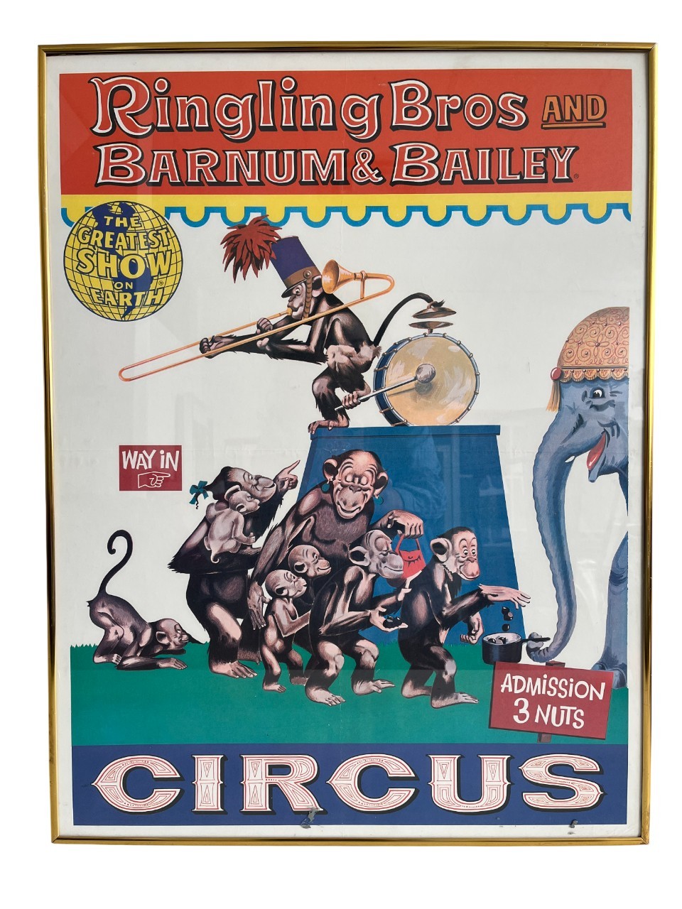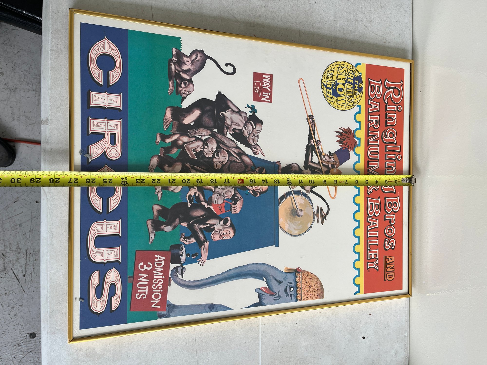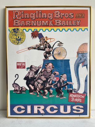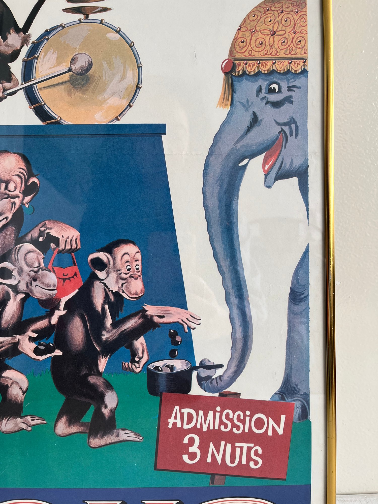 This vibrant mid-century Ringling Bros. and Barnum & Bailey poster, titled "Admission 3 Nuts," features a whimsical illustration by the renowned artist Lawson Wood. While Wood's original concept for this design dates back to 1943, this specific format was a popular promotional piece during the 1960s.