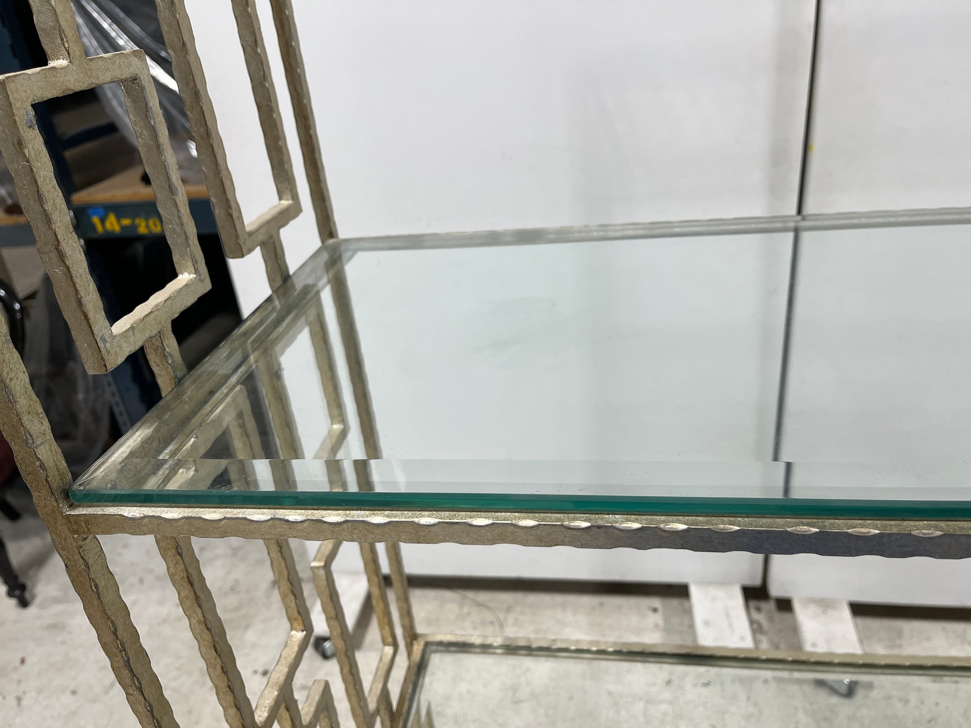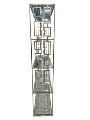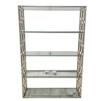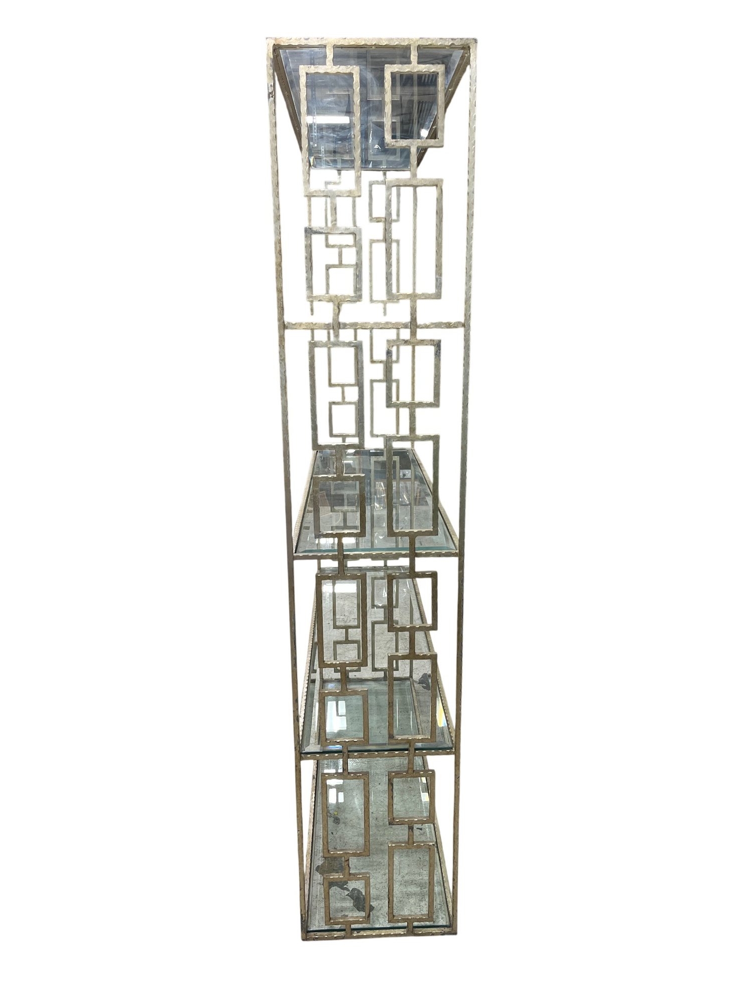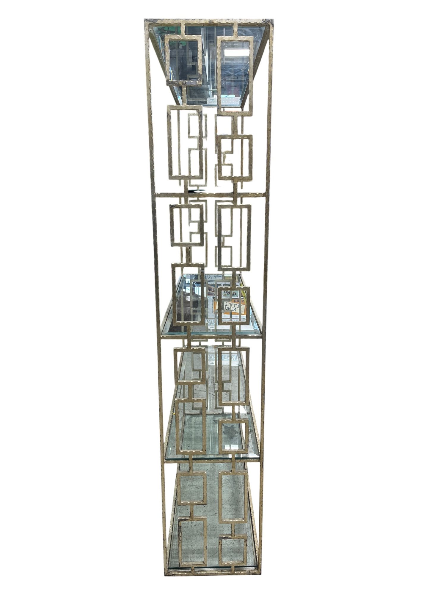 Refine your interior with this striking etagere, a masterful tribute to the Hollywood Regency era. Its open-frame silhouette and bold linework offer a high-design look that feels both vintage and contemporary.