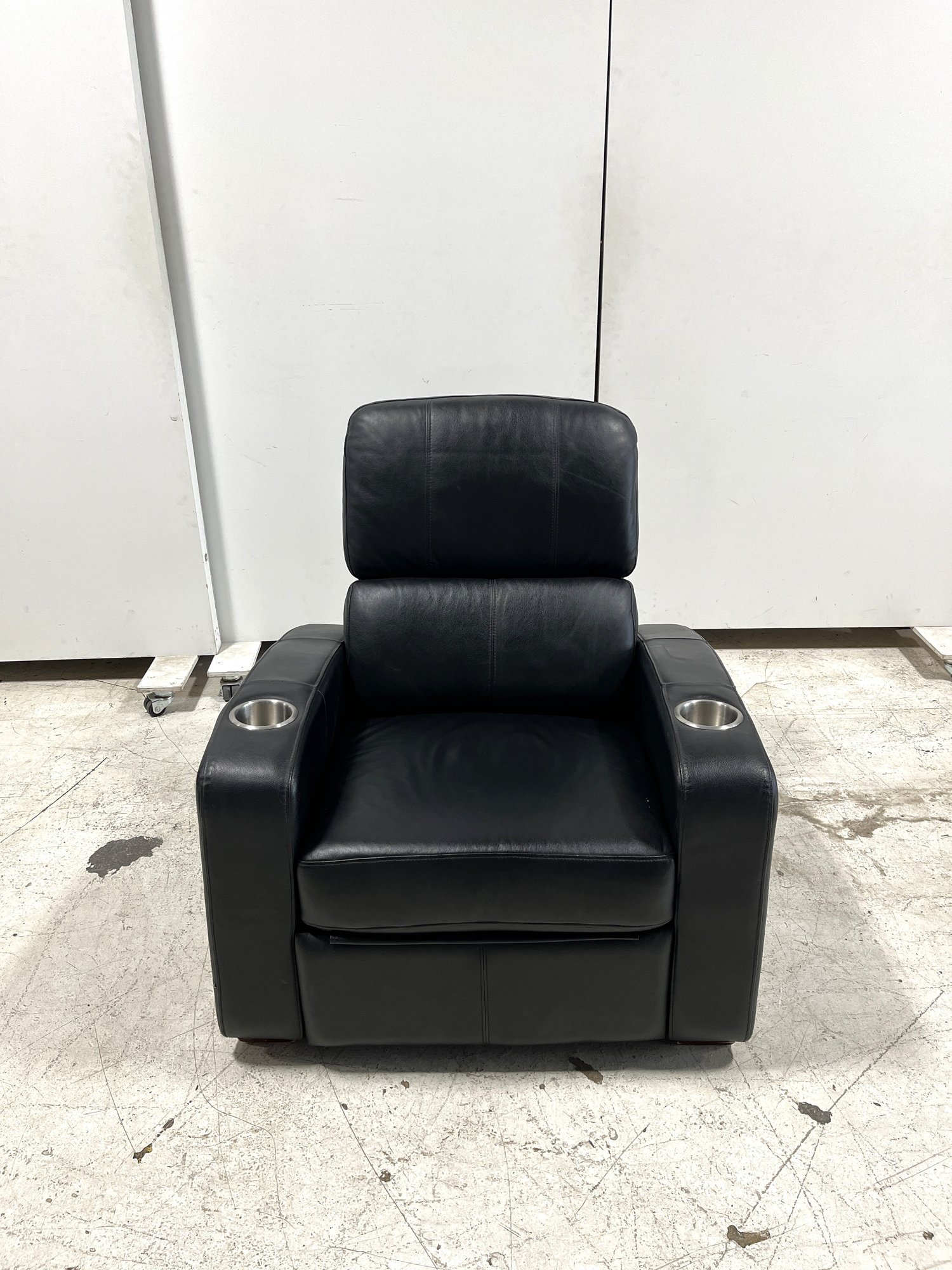 Please note - this is a manual home theater recliner. It has no power recline or automated functions. The manual lever that allows it to recline is located on the right hand side, in between the seat cushion and the armrest (pictured & circled in blue). The aluminum cup holders are removable and easy to clean.