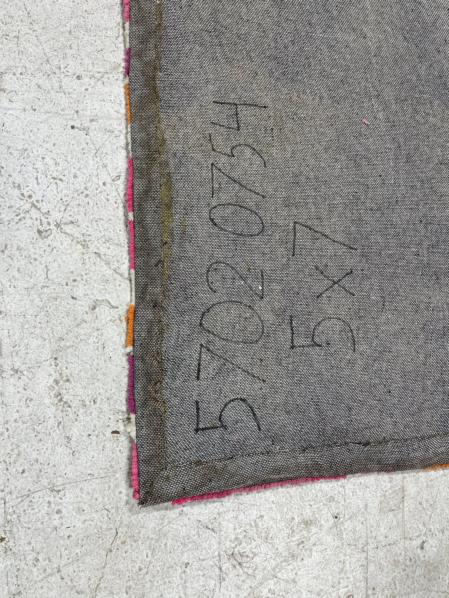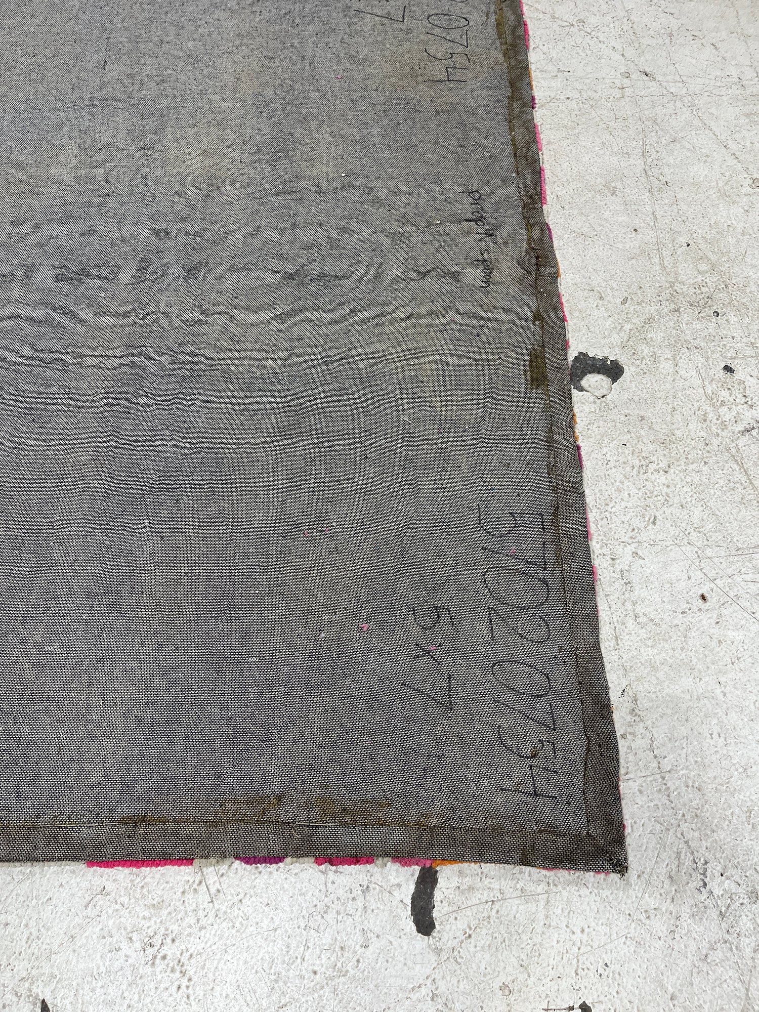 Please note, there is a dark stain that runs along the middle of the rug. This may come out after cleaning though not guaranteed.