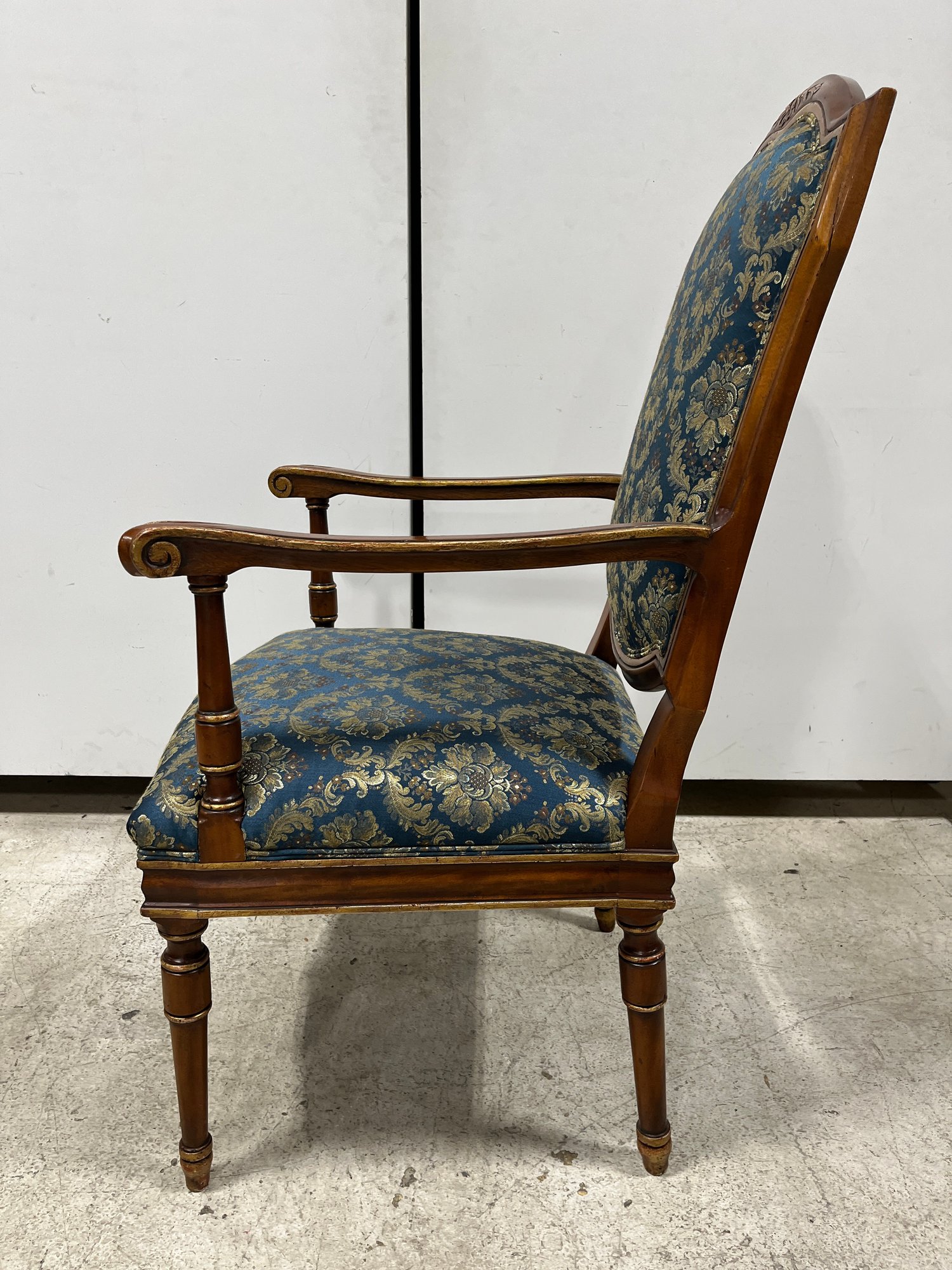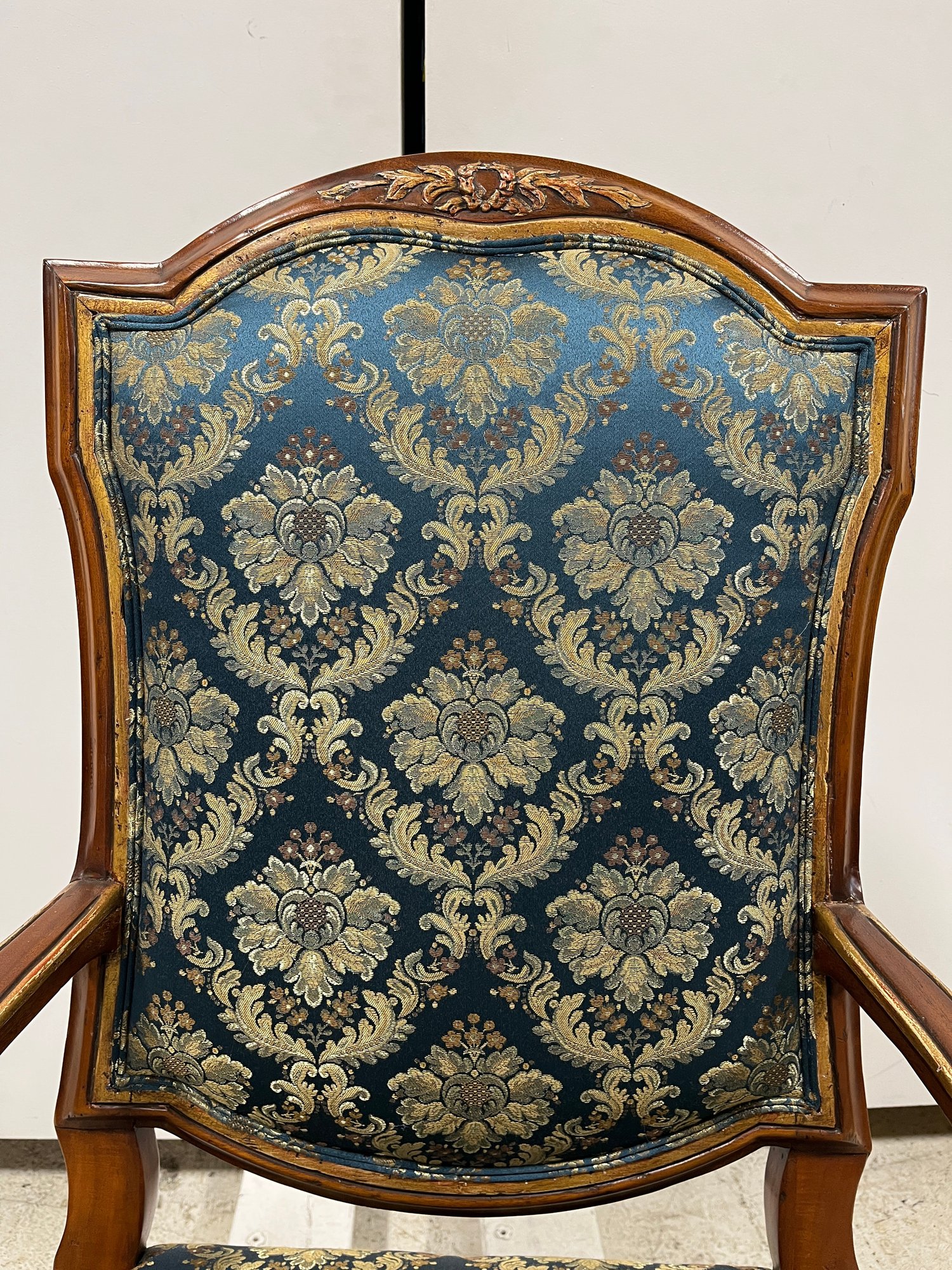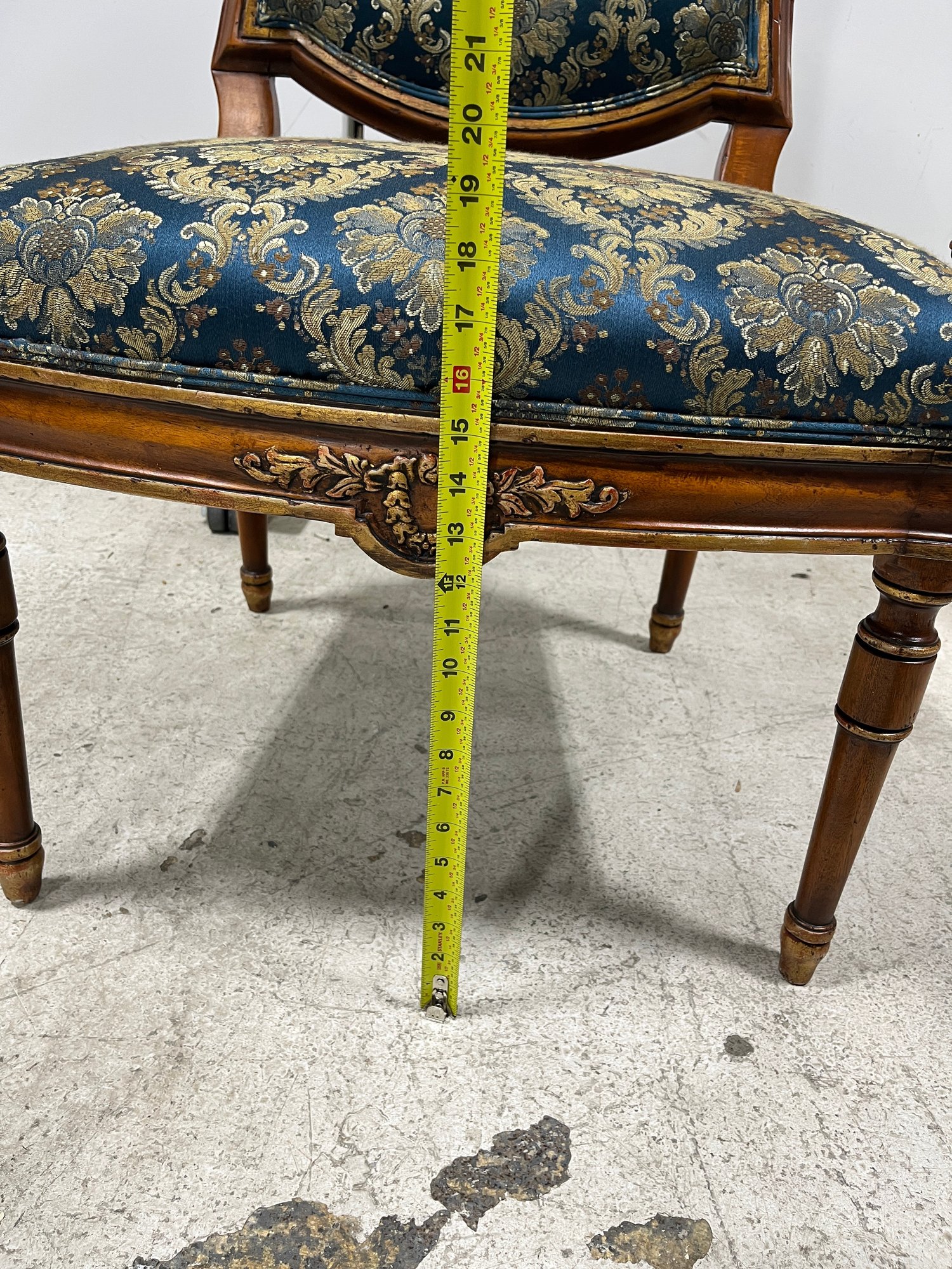 Bring the refined elegance of 18th-century France into your home with this exquisite set of four Louis XVI-style armchairs. Perfectly balanced between neoclassical discipline and luxurious comfort, these chairs serve as both functional seating and stately decorative accents.