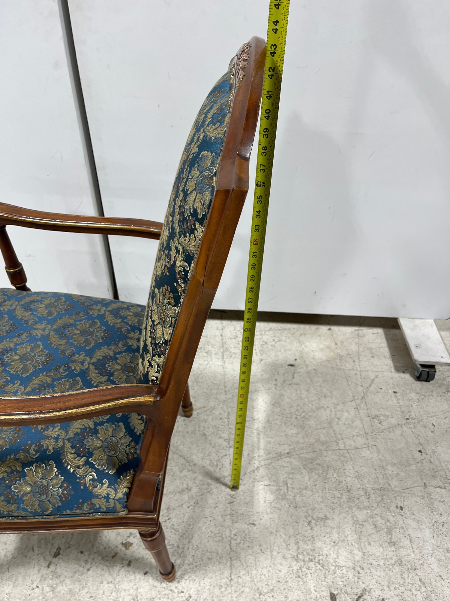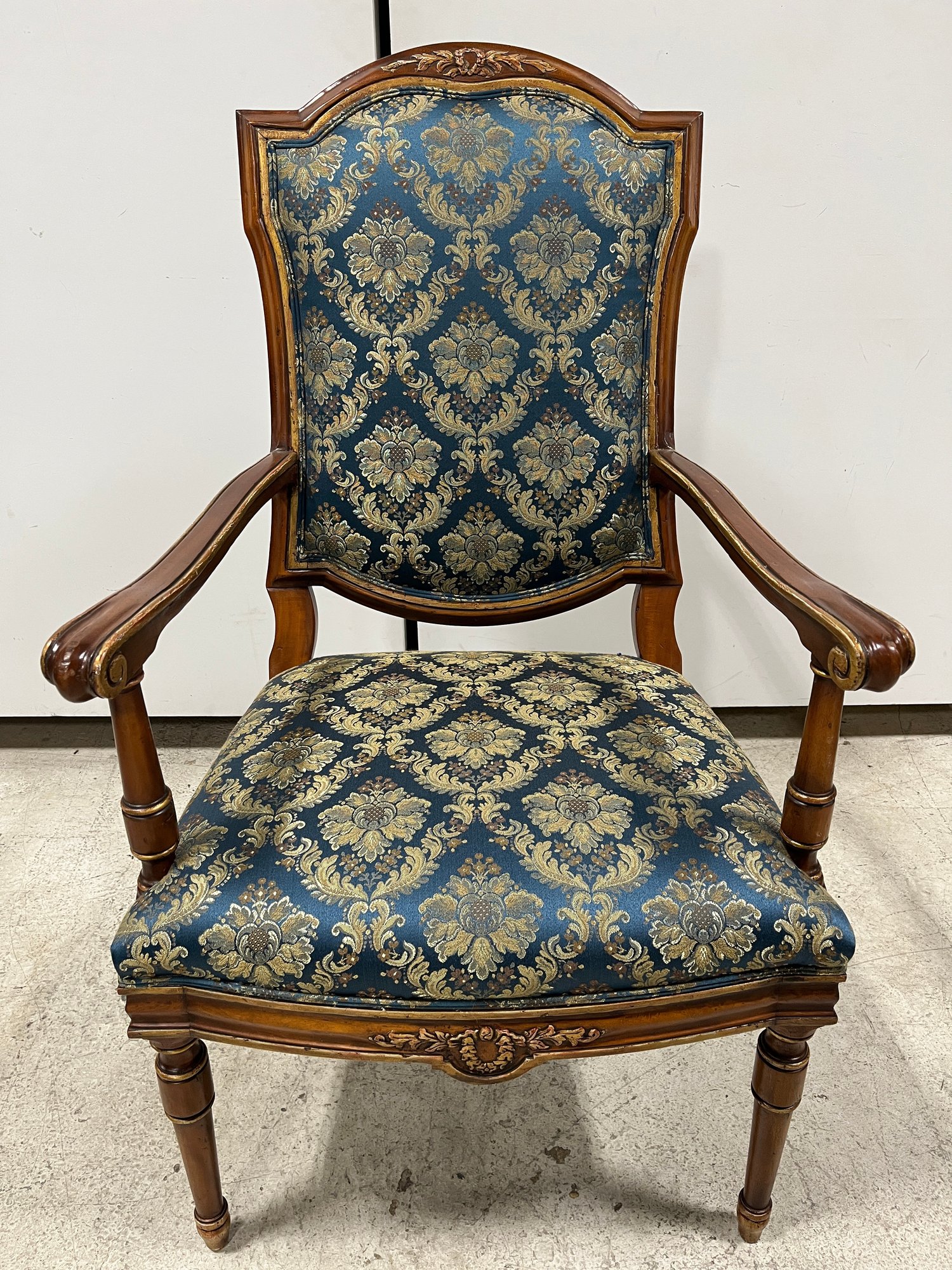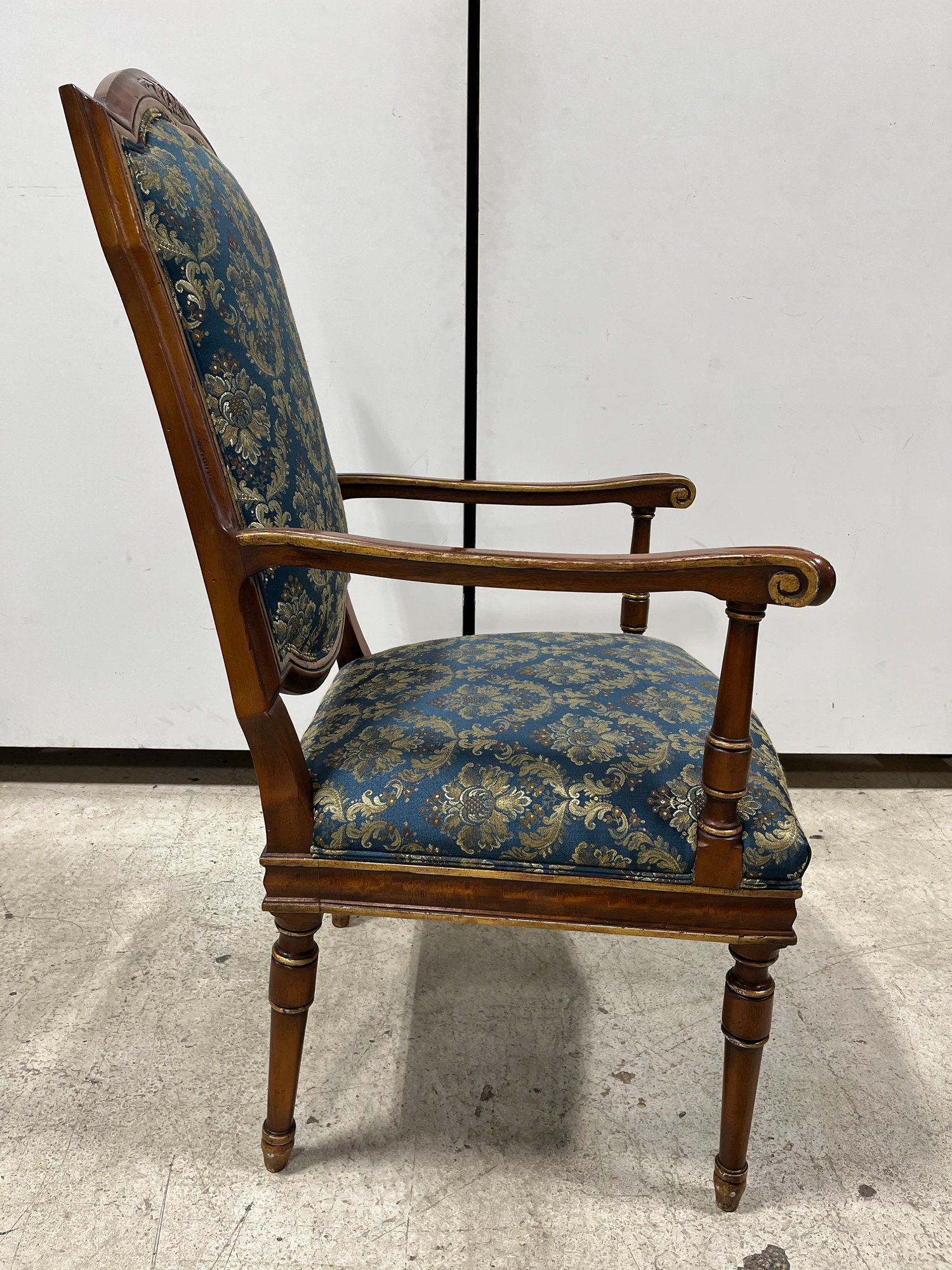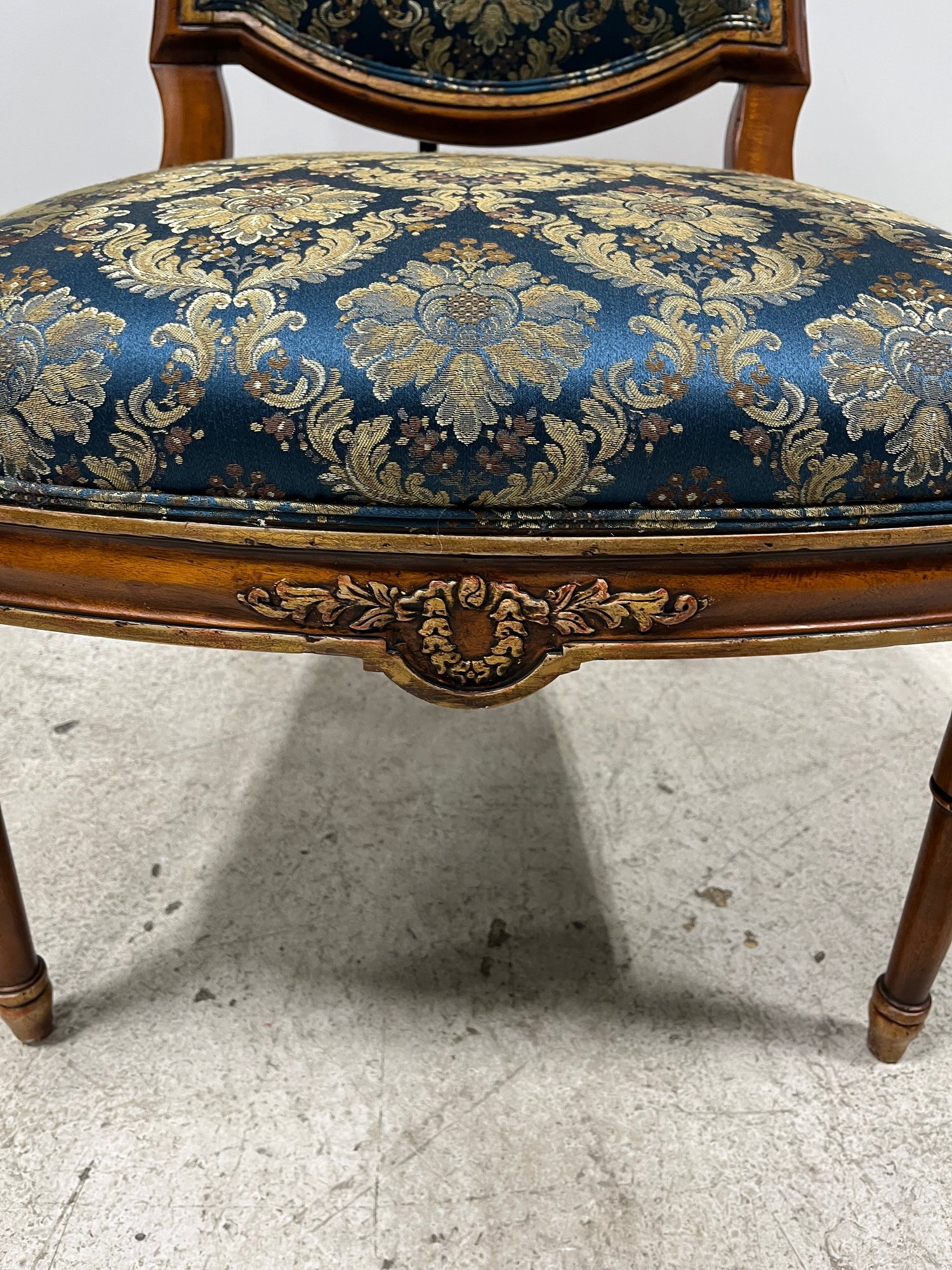 Bring the refined elegance of 18th-century France into your home with this exquisite set of four Louis XVI-style armchairs. Perfectly balanced between neoclassical discipline and luxurious comfort, these chairs serve as both functional seating and stately decorative accents.