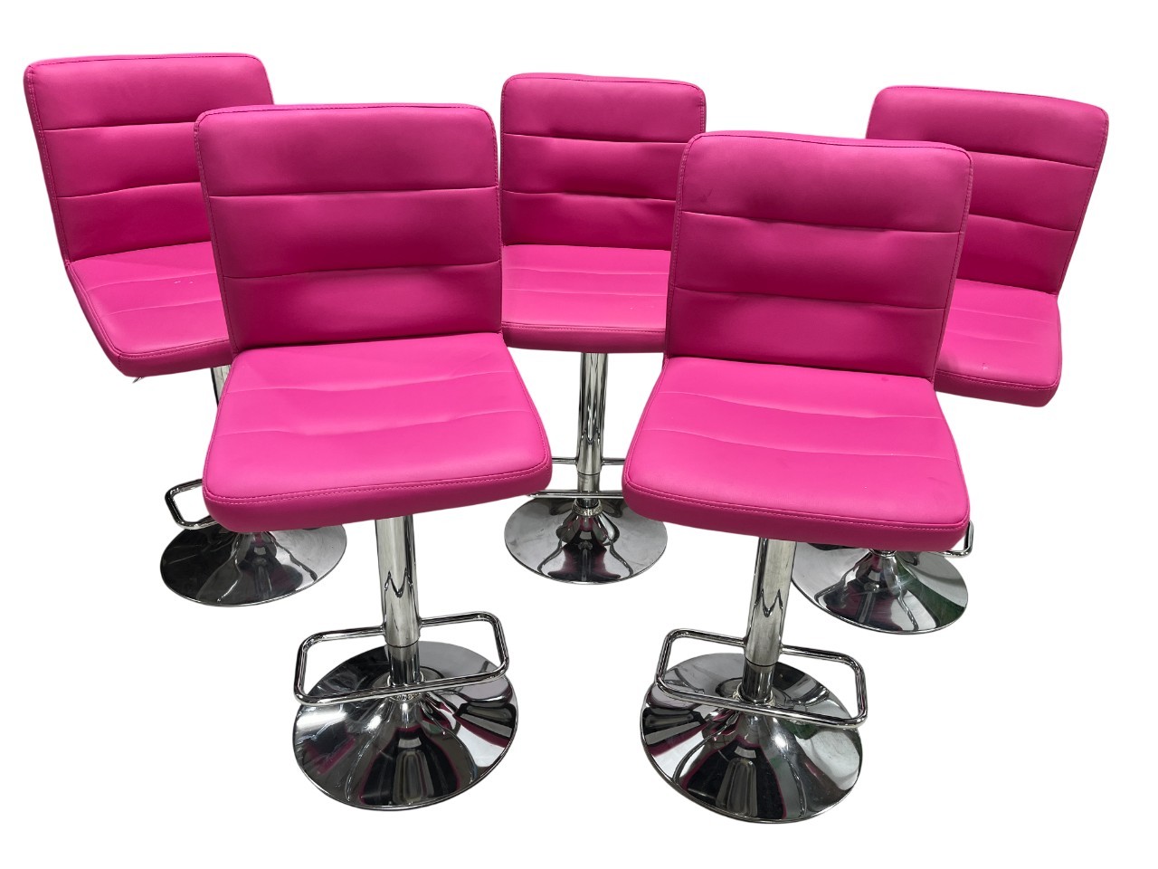Elevate your kitchen island, home bar, or counter with this sleek and vibrant set of adjustable bar stools, combining contemporary style with superior comfort and functionality. The height of these stool are adjustable; their maximum height is ~47", and minimum is ~38.5".