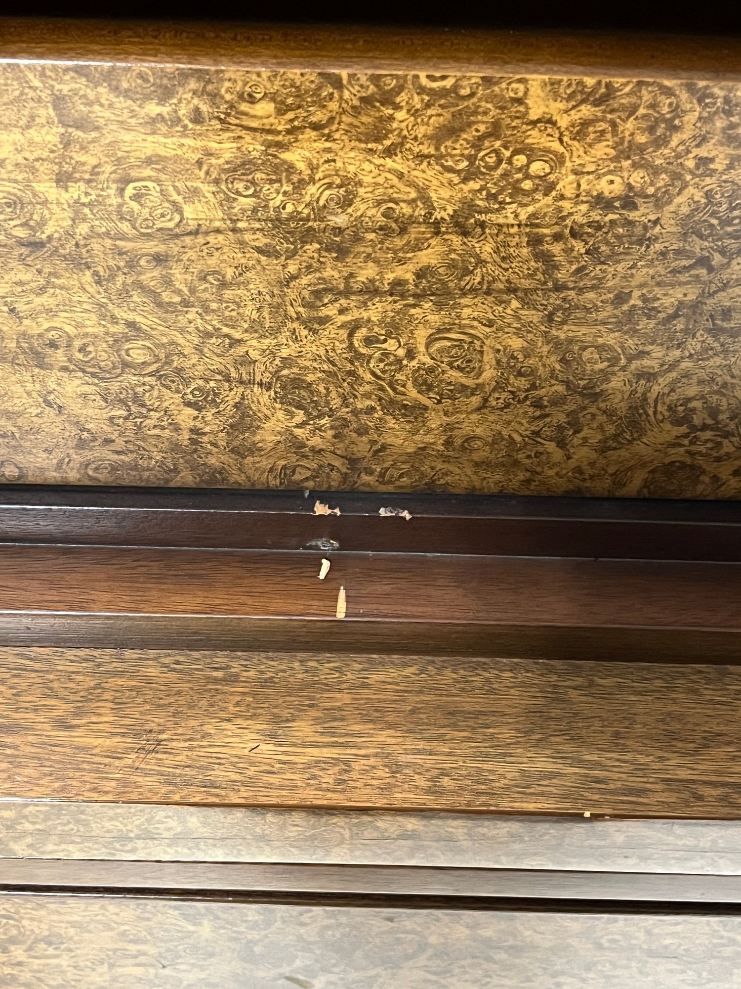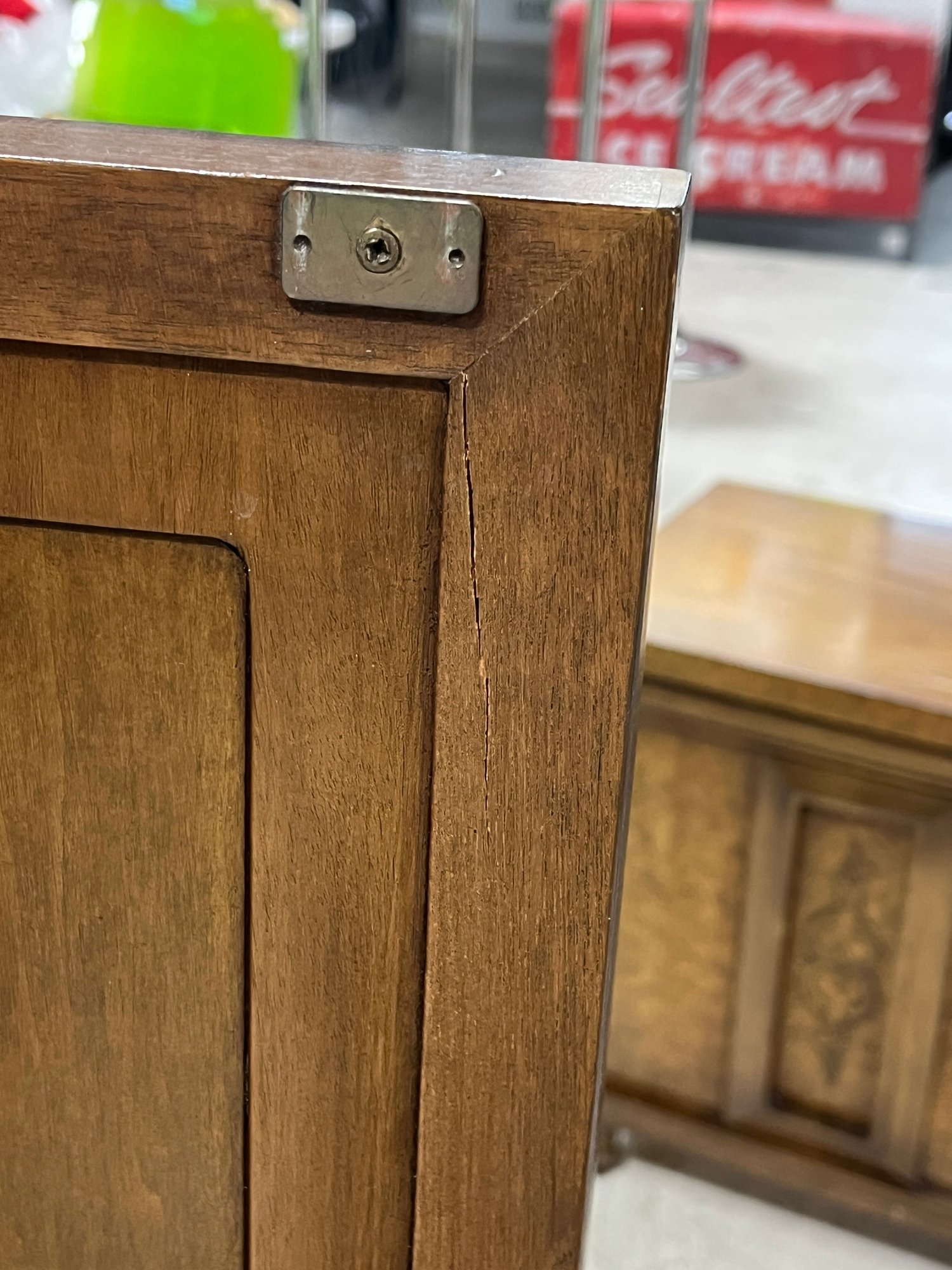Please note, the nightstand that opens to the left is in need of repair as it does not click shut all the way.