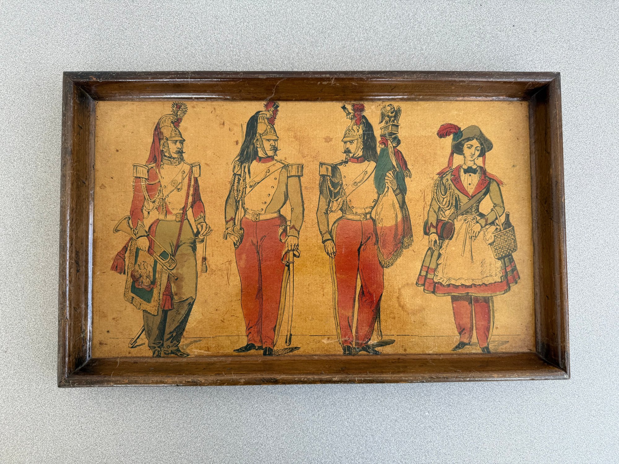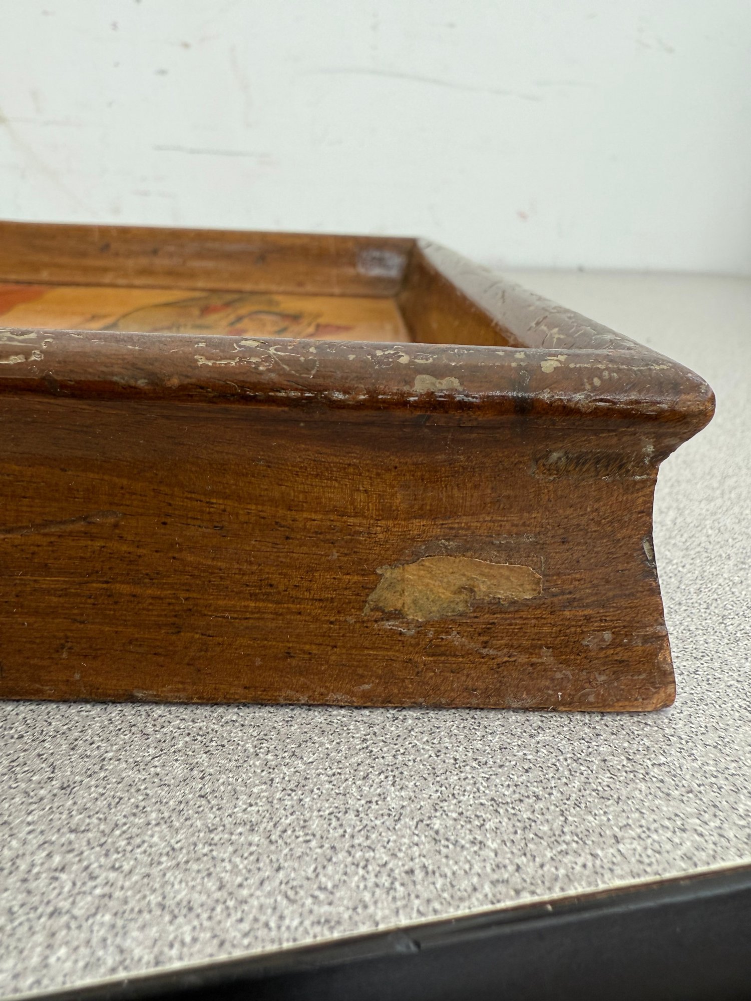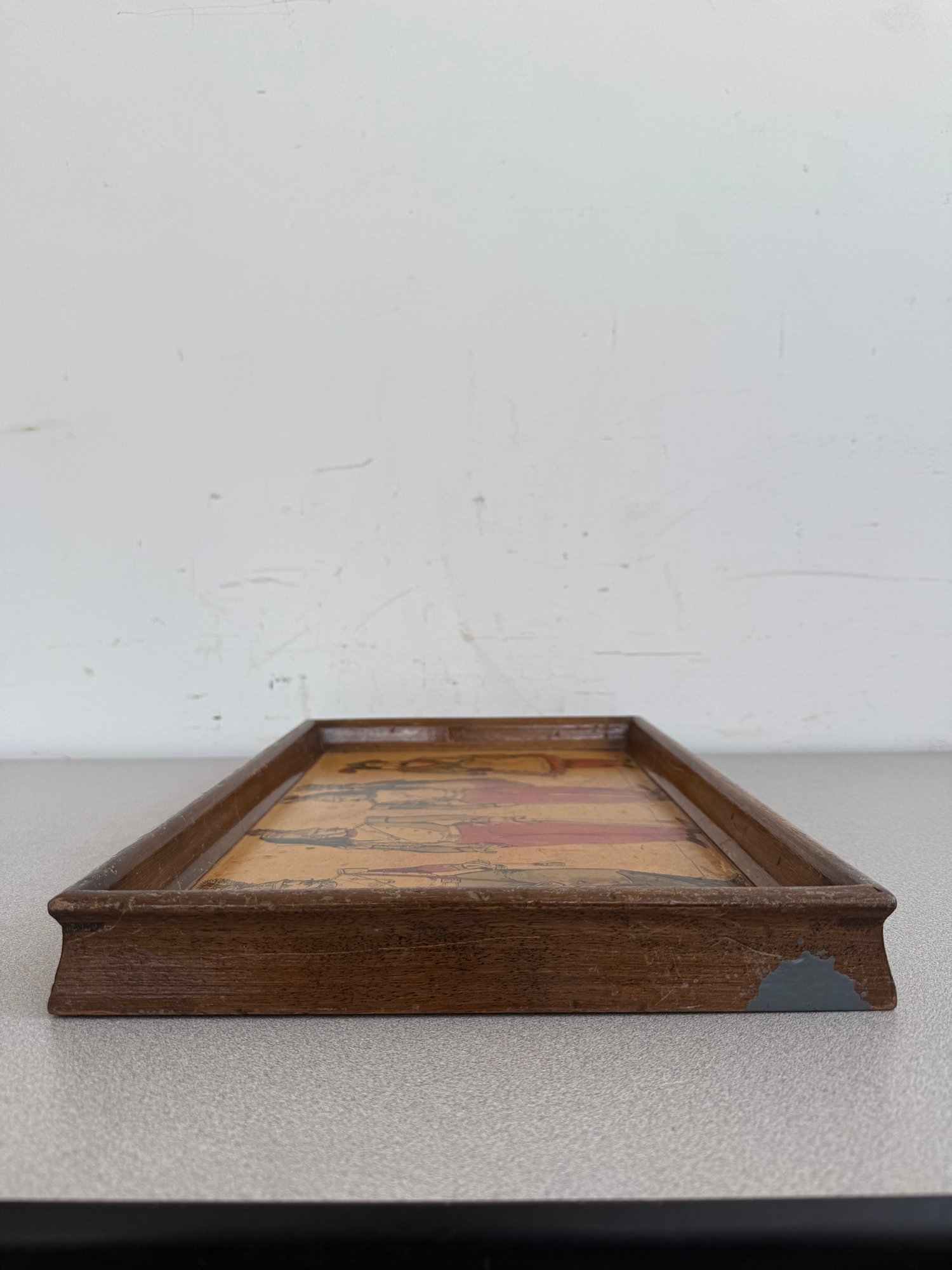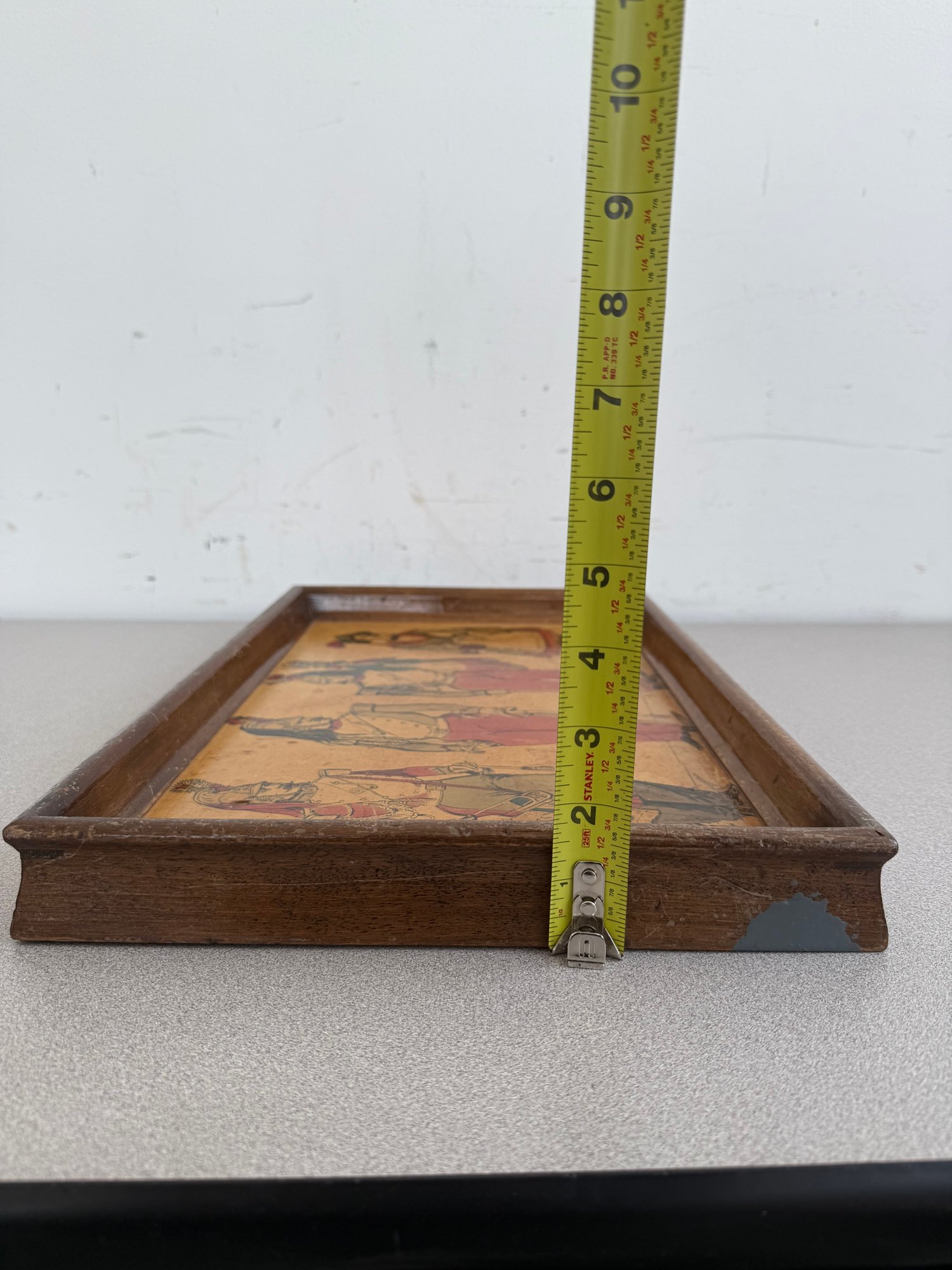 This lot features two distinct decorative trays, offering a blend of historical aesthetic and modern design, suitable for display or practical use.