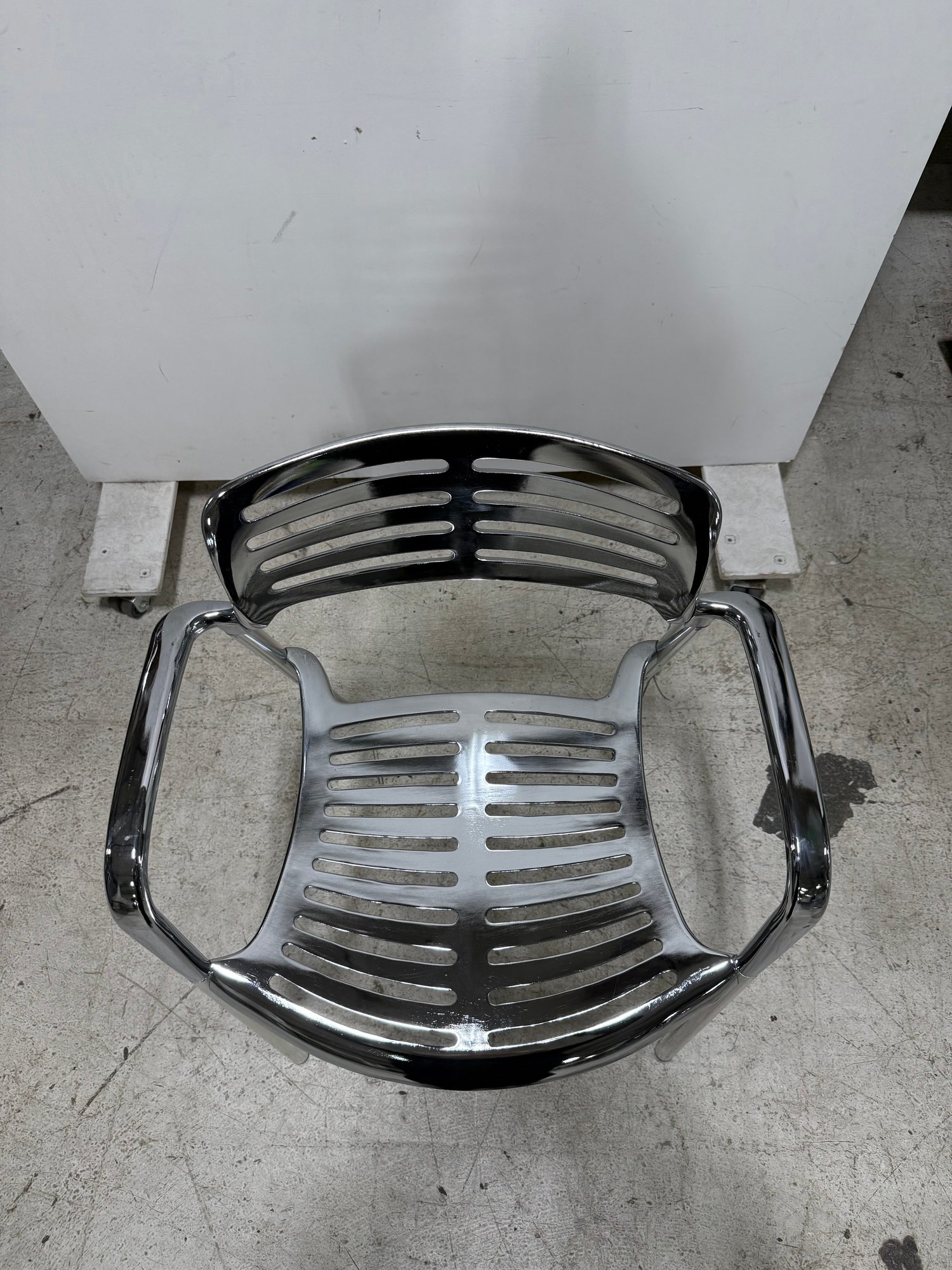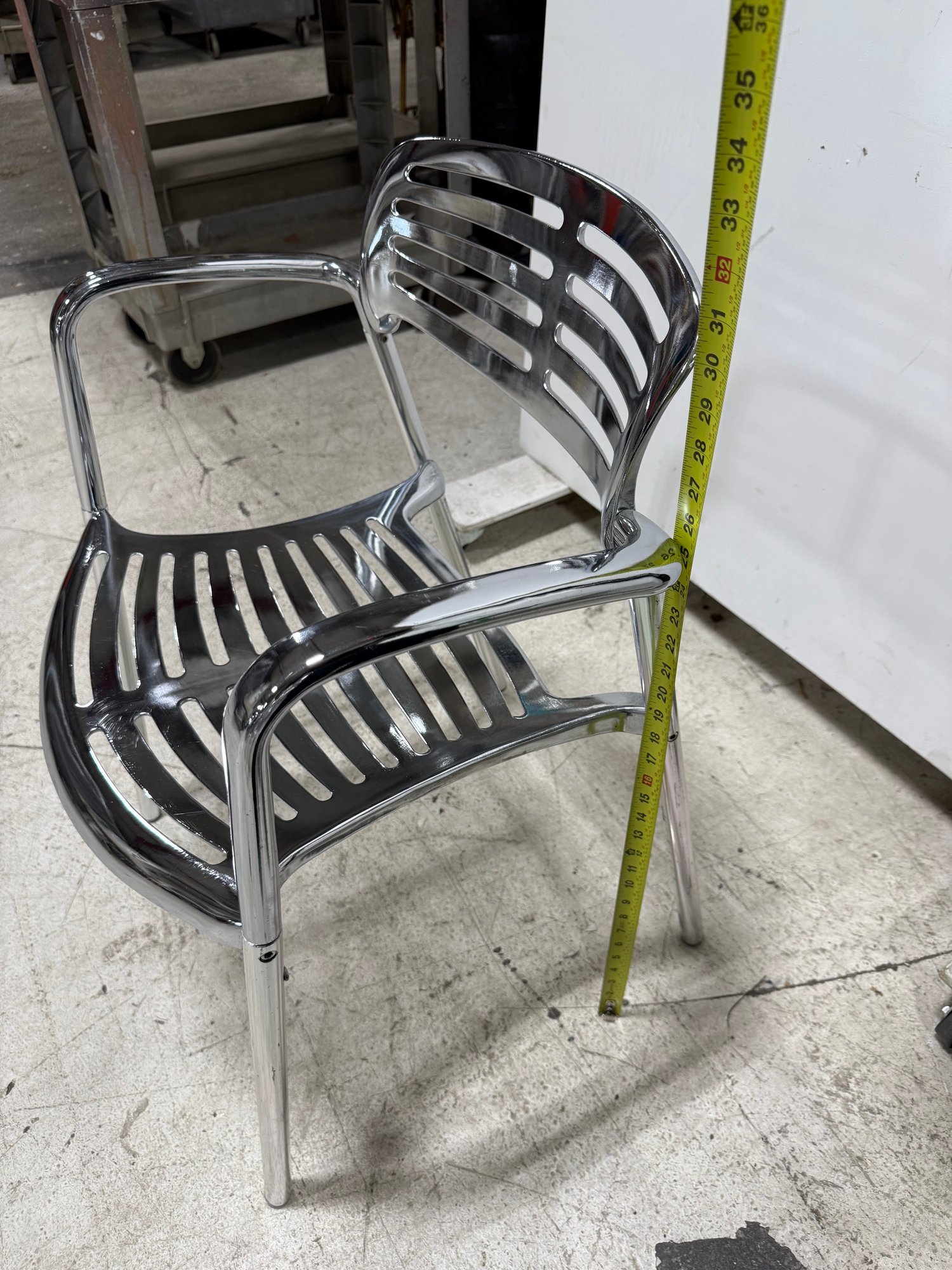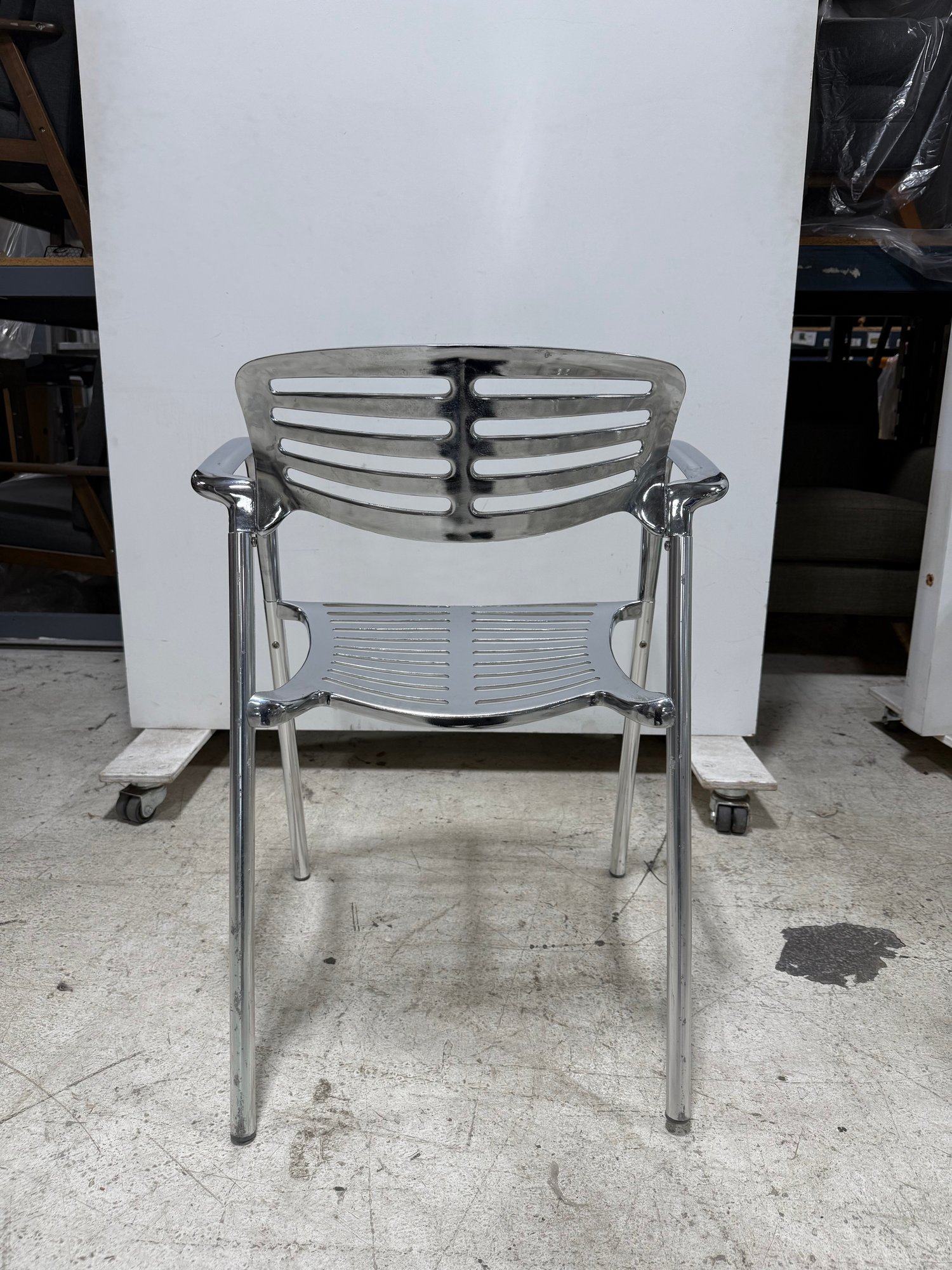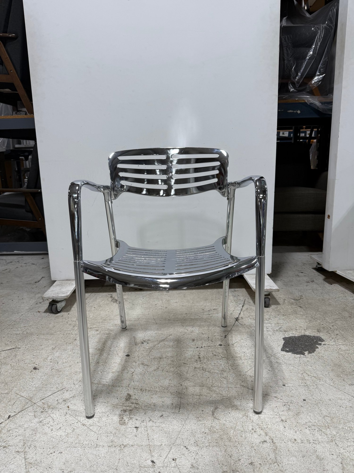 An icon of modern design, the Toledo chair is a reinterpretation of the classic cafe terrace chair, blending timeless aesthetics with robust, modern materials. It is recognized globally and featured in permanent museum collections. This reproduction boasts a fluid combination of sculptural elegance and organic lines.