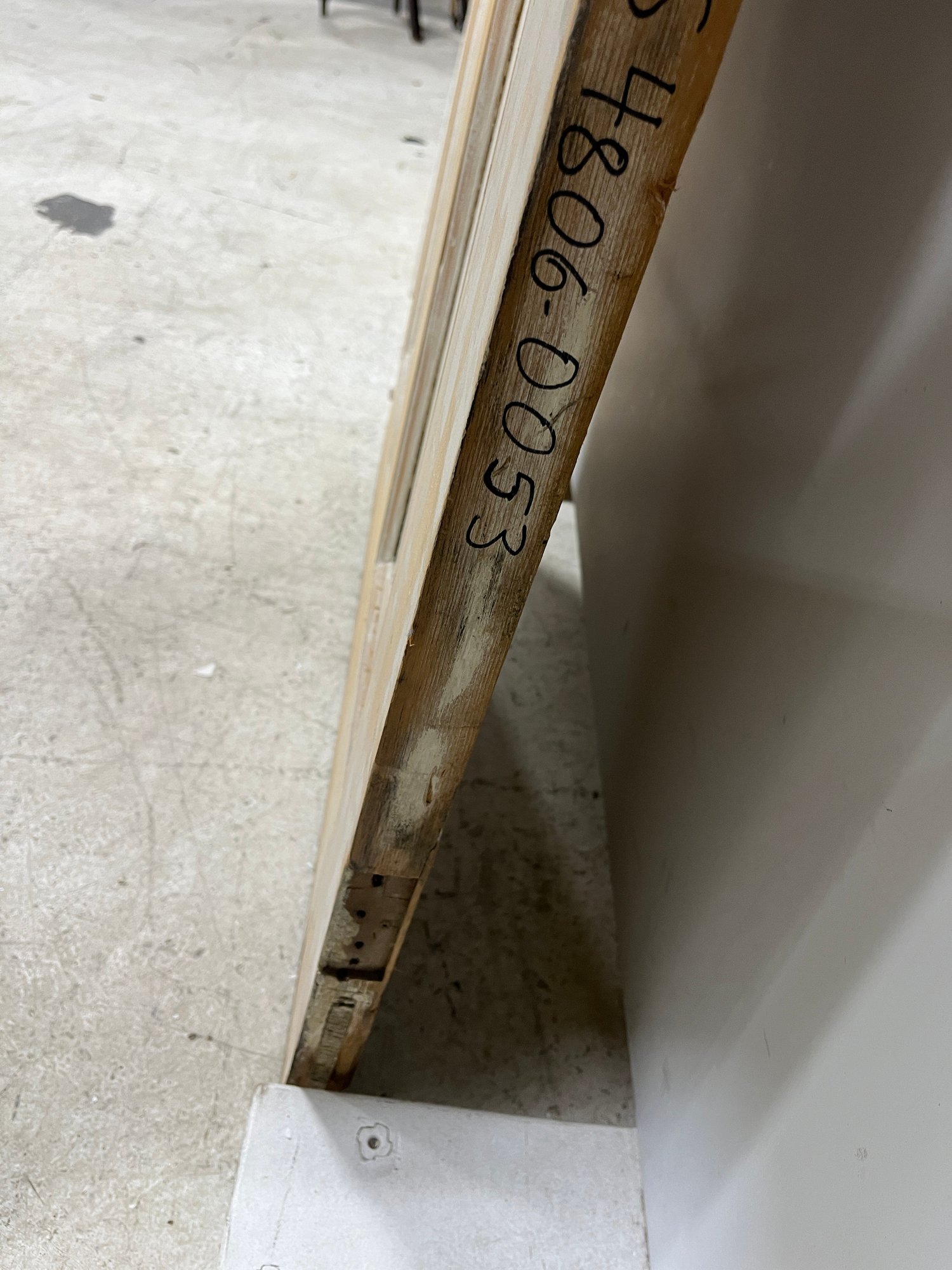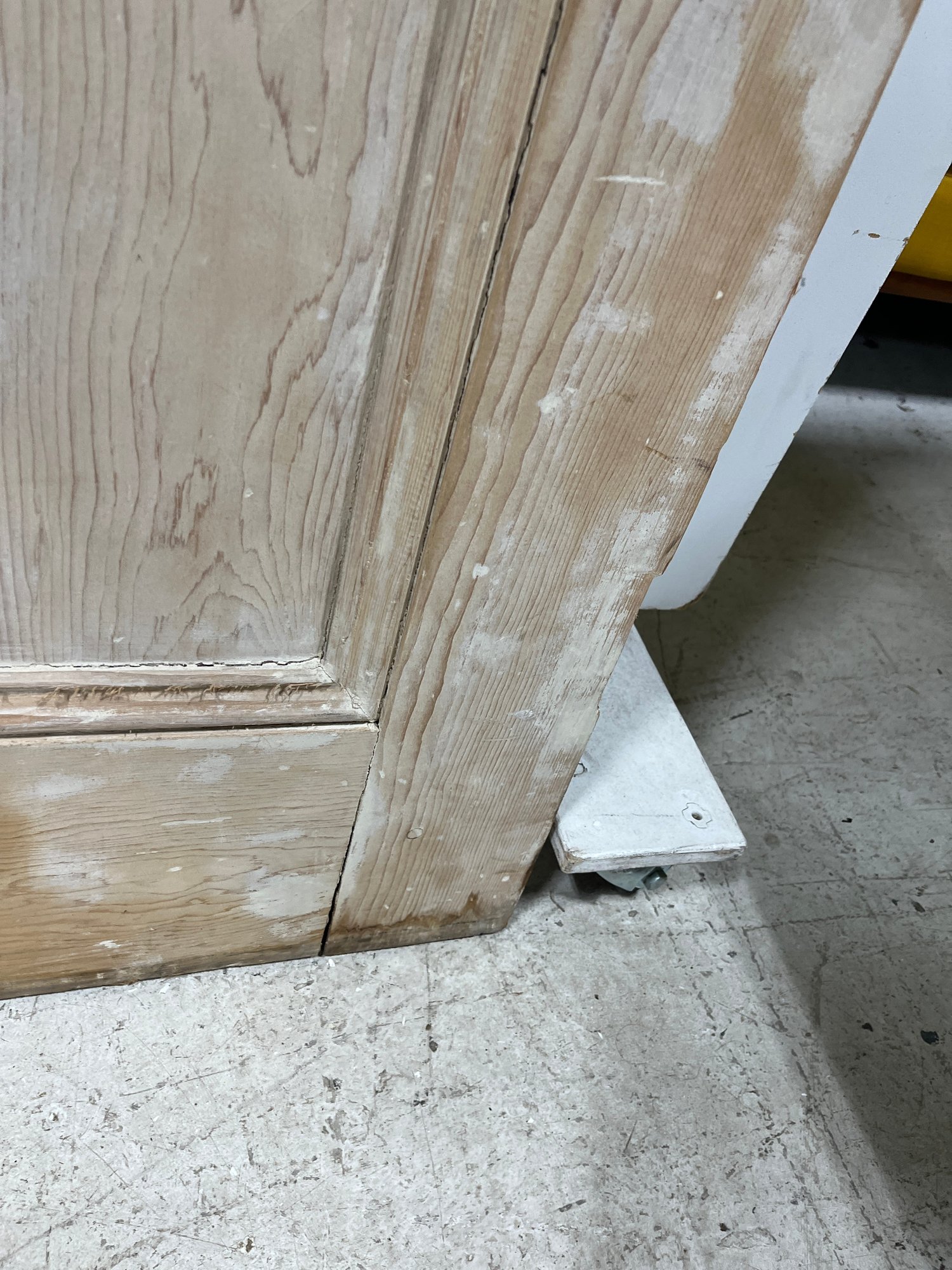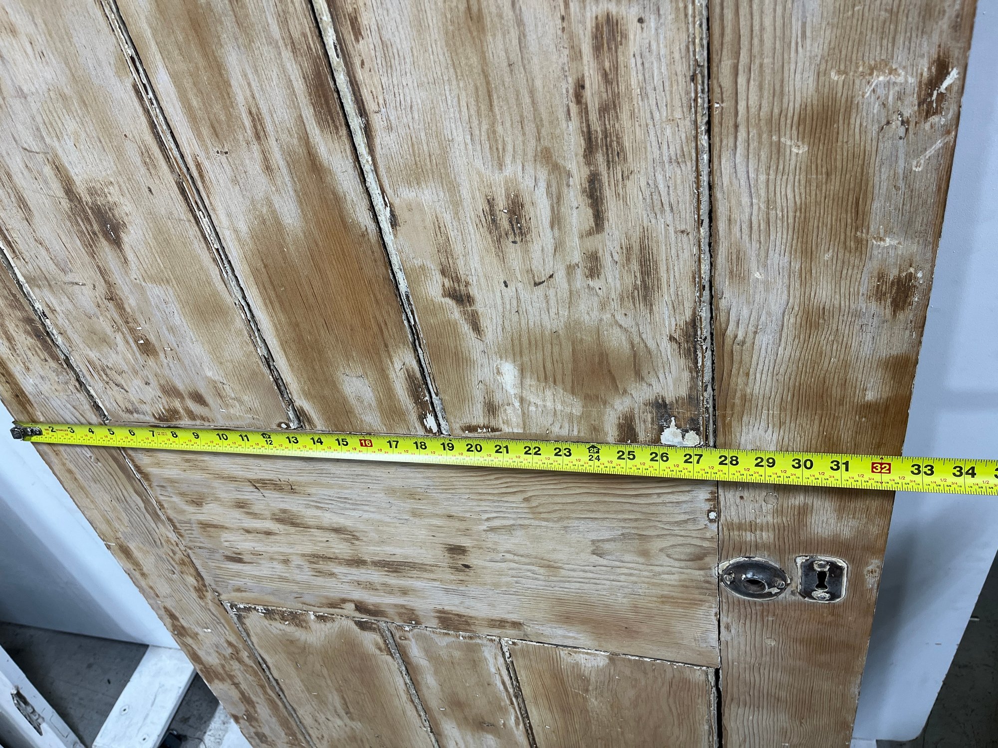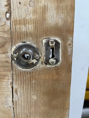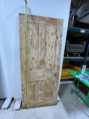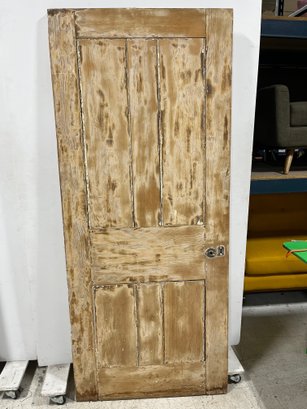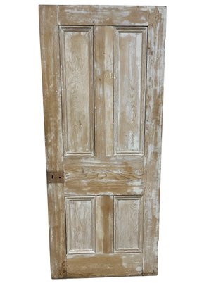 A standard interior passage door featuring a 4-panel design. This door does not feature any hinges and may have been used as a sliding barn door.