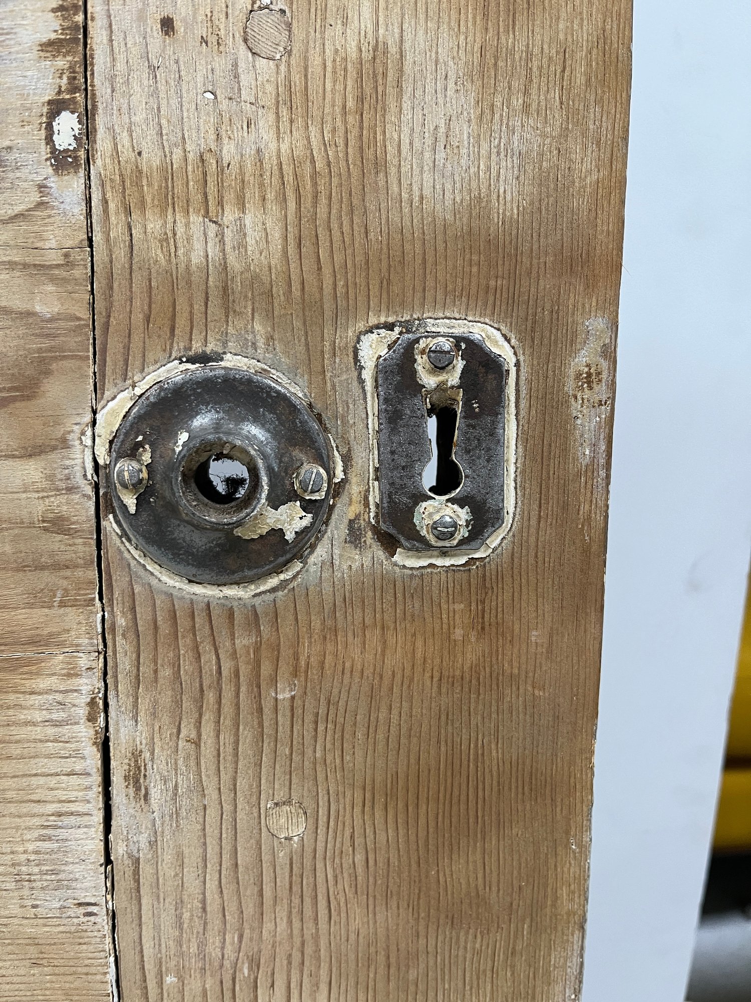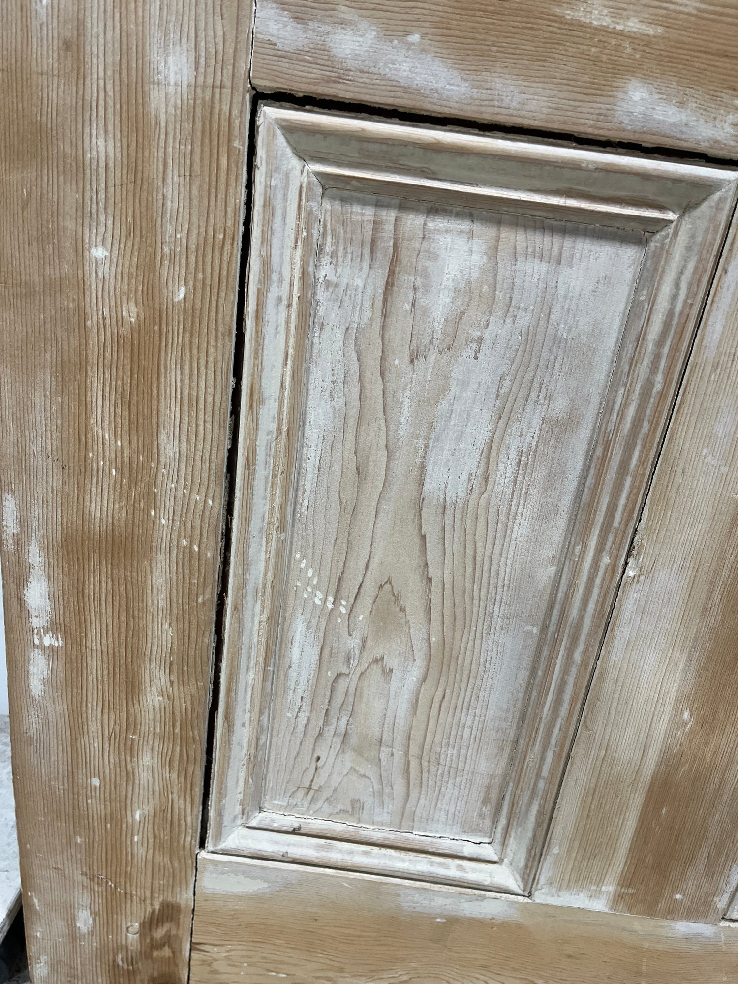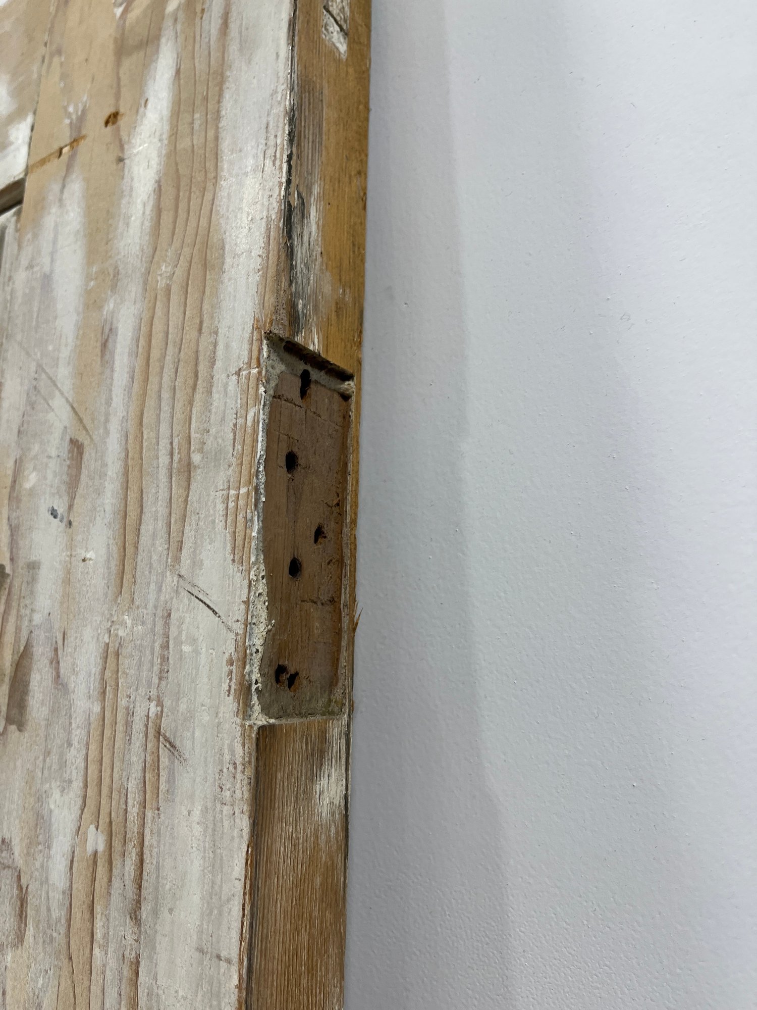 A standard interior passage door featuring a 4-panel design. This door does not feature any hinges and may have been used as a sliding barn door.
