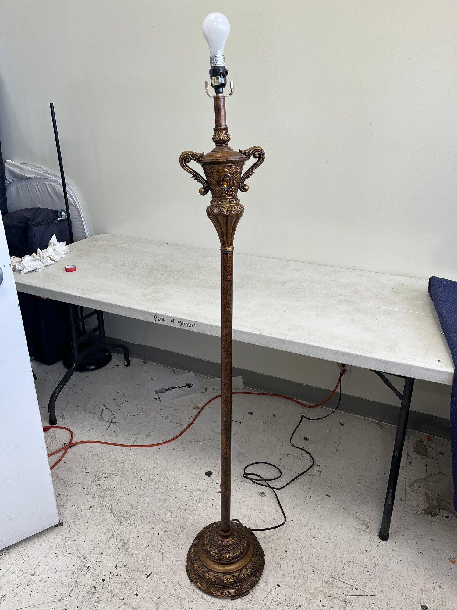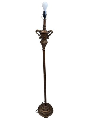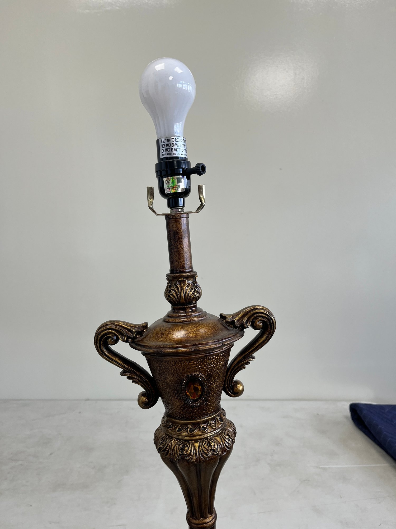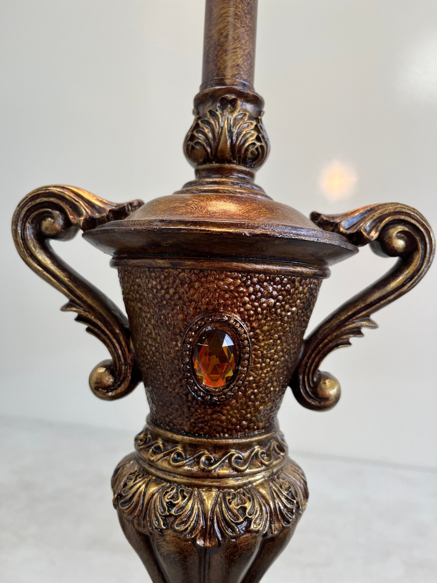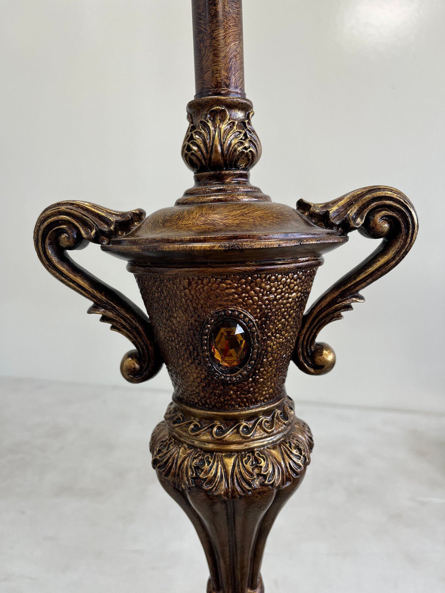 A commanding piece of neoclassical design, this floor lamp blends the grandeur of Hollywood Regency style with the refined silhouettes of an ancient Roman urn.